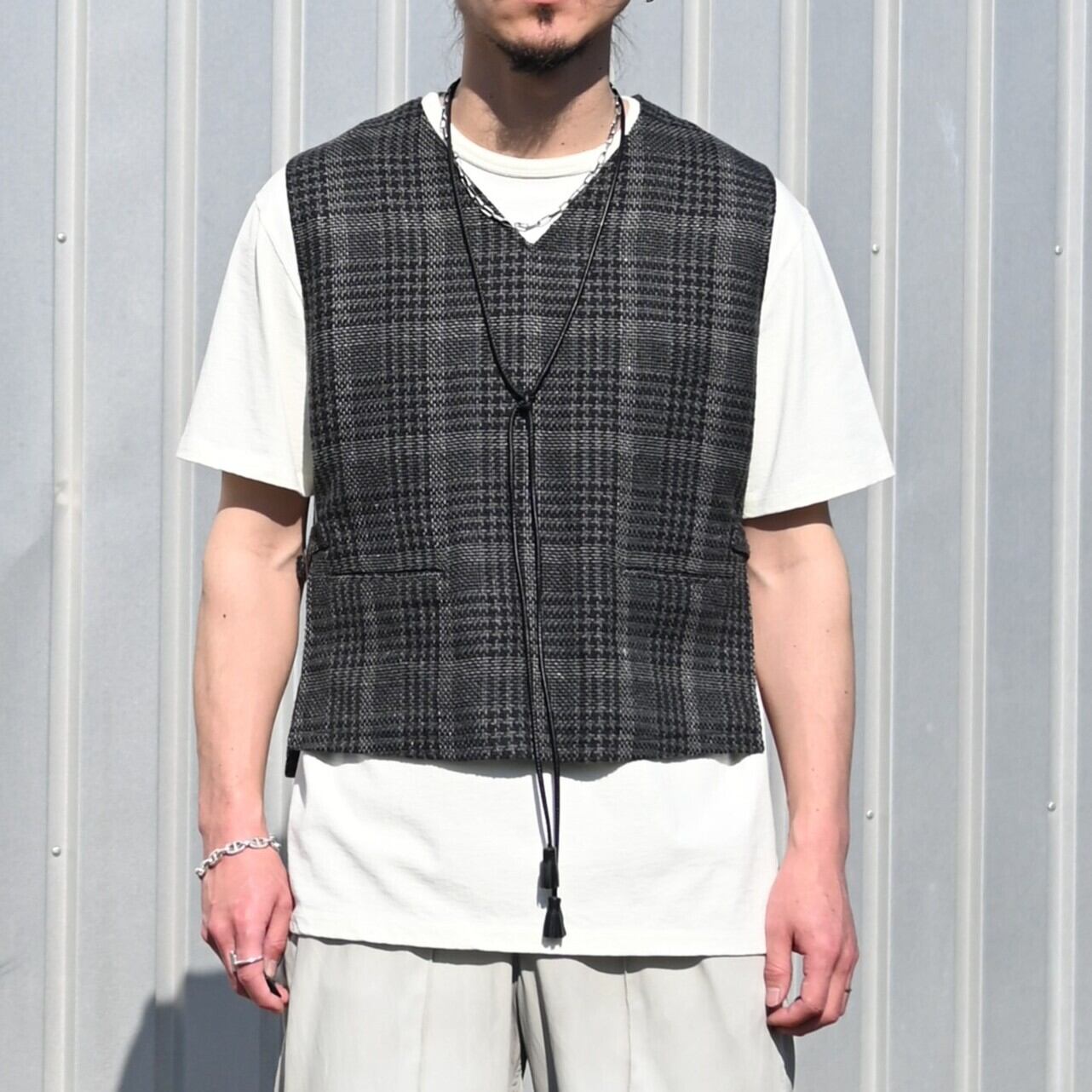 リネンと紬糸を交撚した別注糸を使用したオリジナルVネックベスト