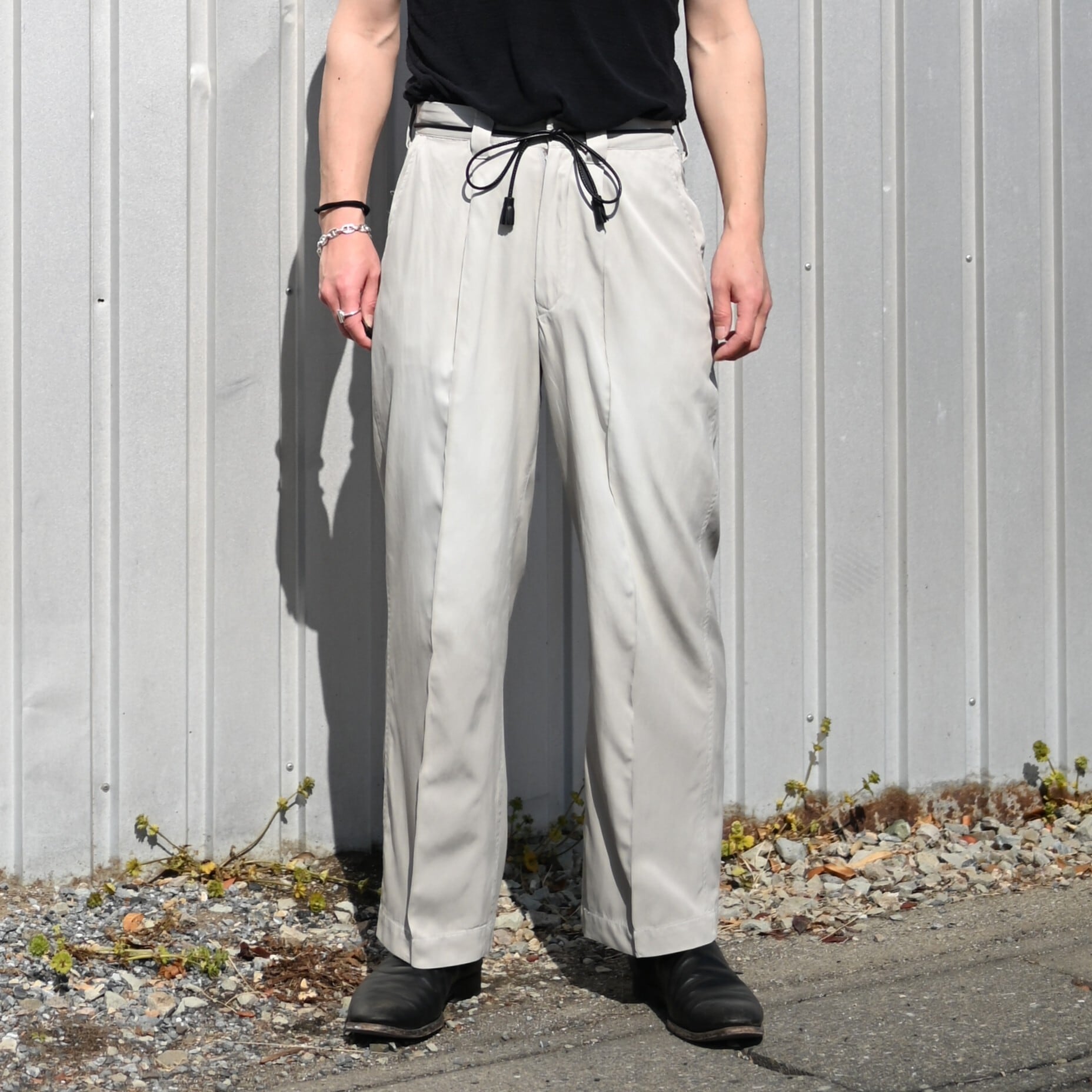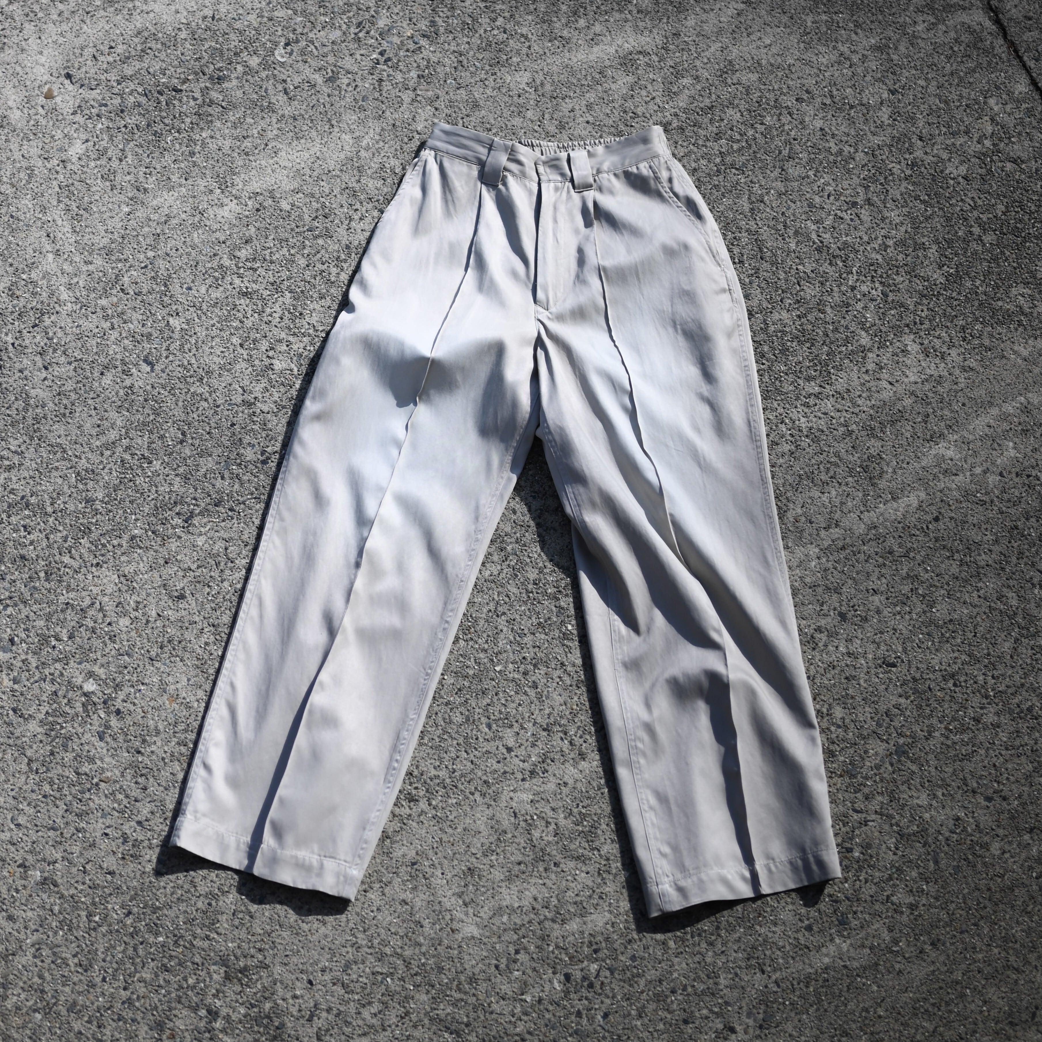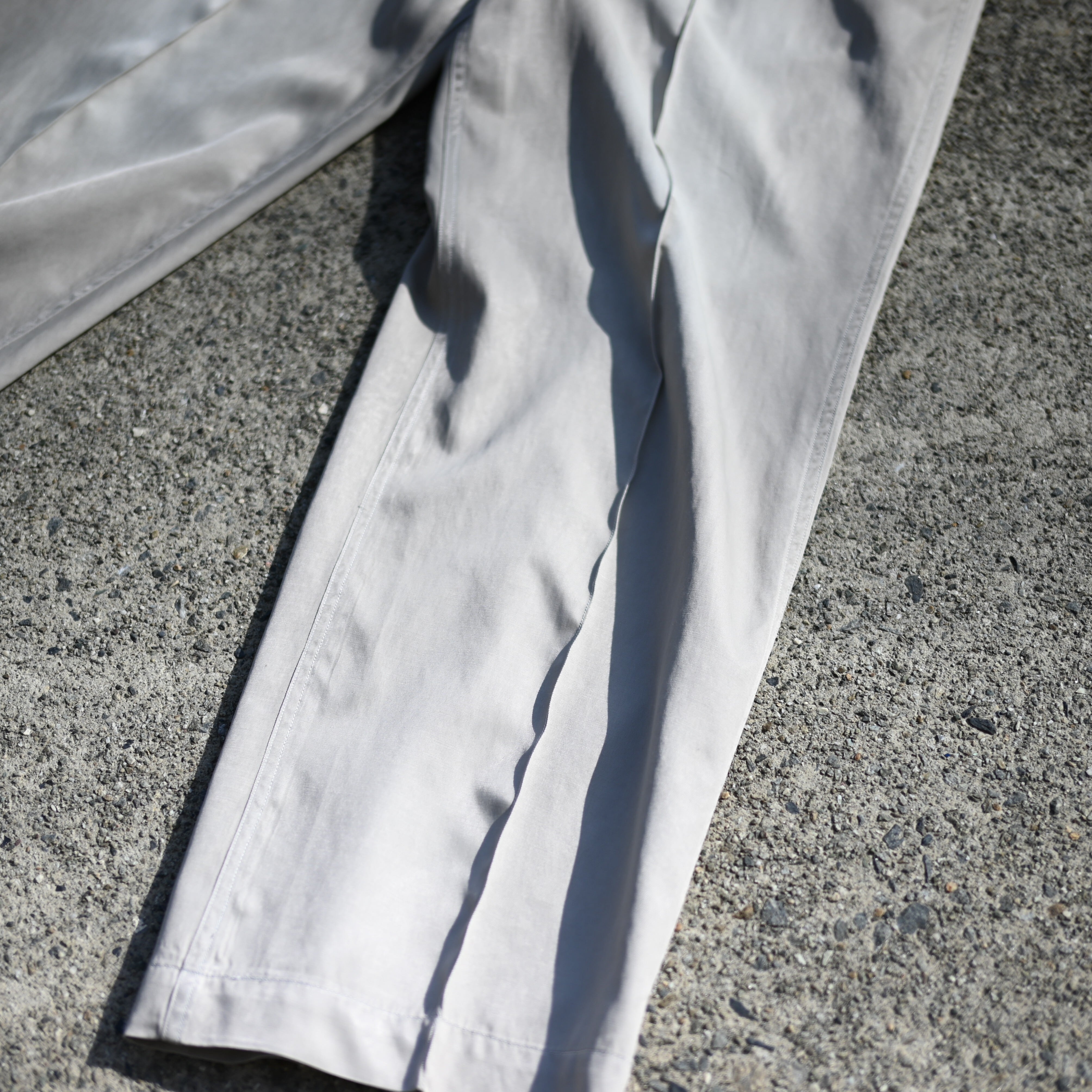 • These slacks showcase outstanding craftsmanship, with a color-fade treatment that beautifully recreates the look of natural aging. It’s rare to find slacks with this kind of atmosphere. The cotton-rayon fabric also gives a refreshing and comfortable feel.