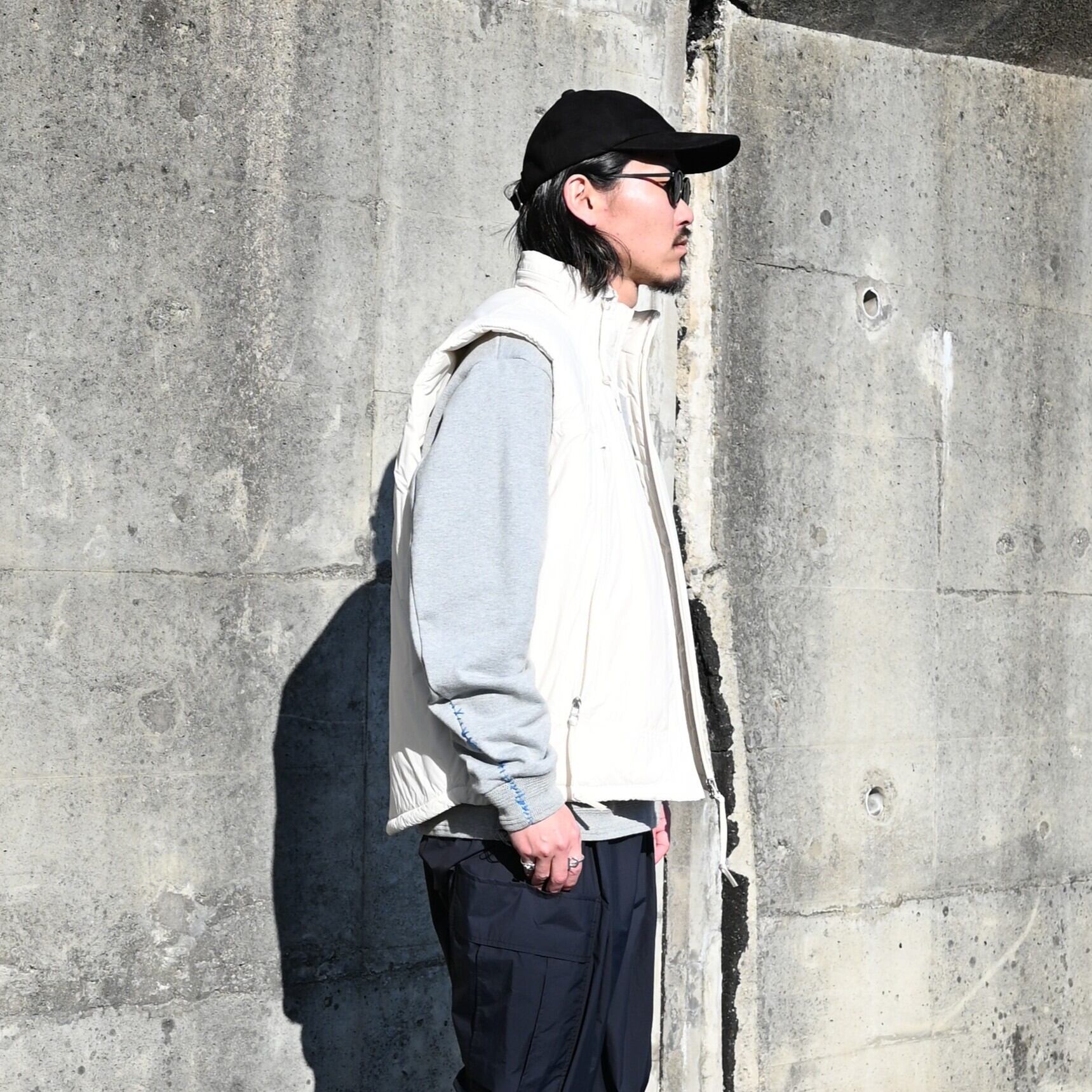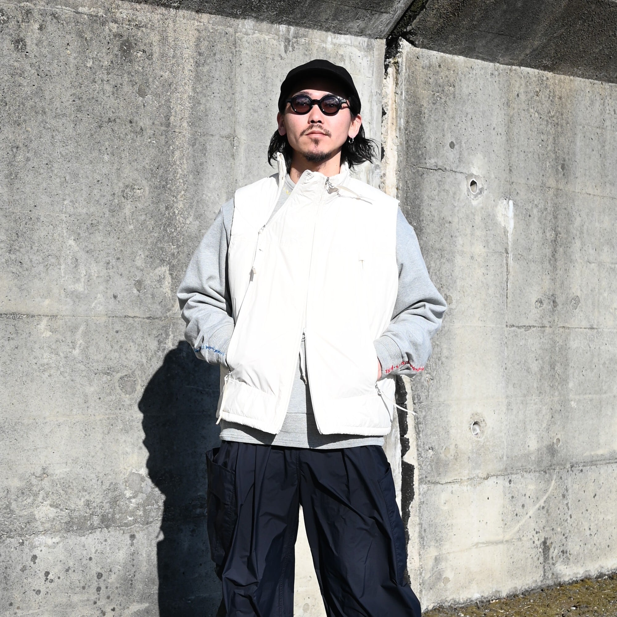 product twelve(プロダクトトゥウェルブ)のPrimaloft Puffer Vestをメインにコーディネート。