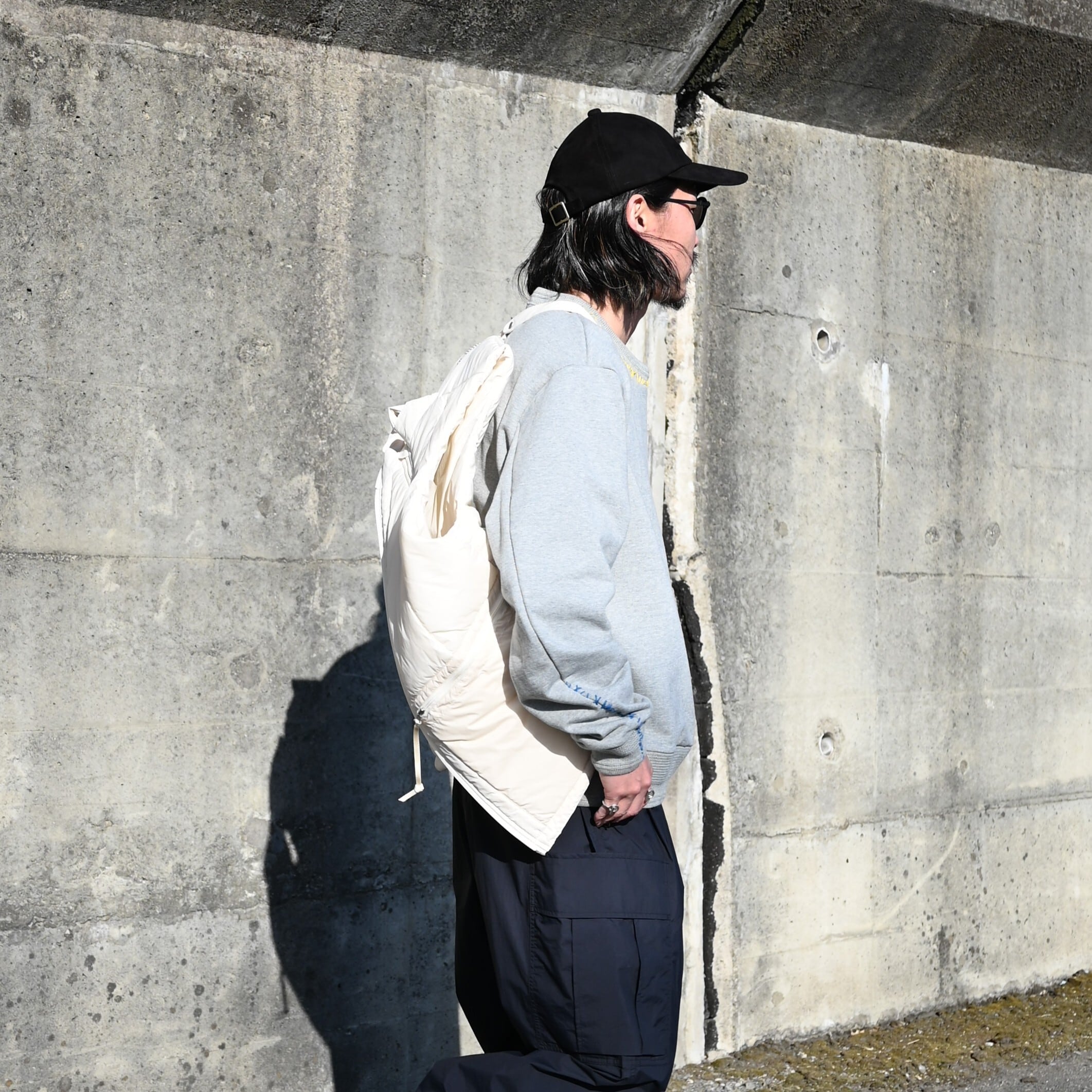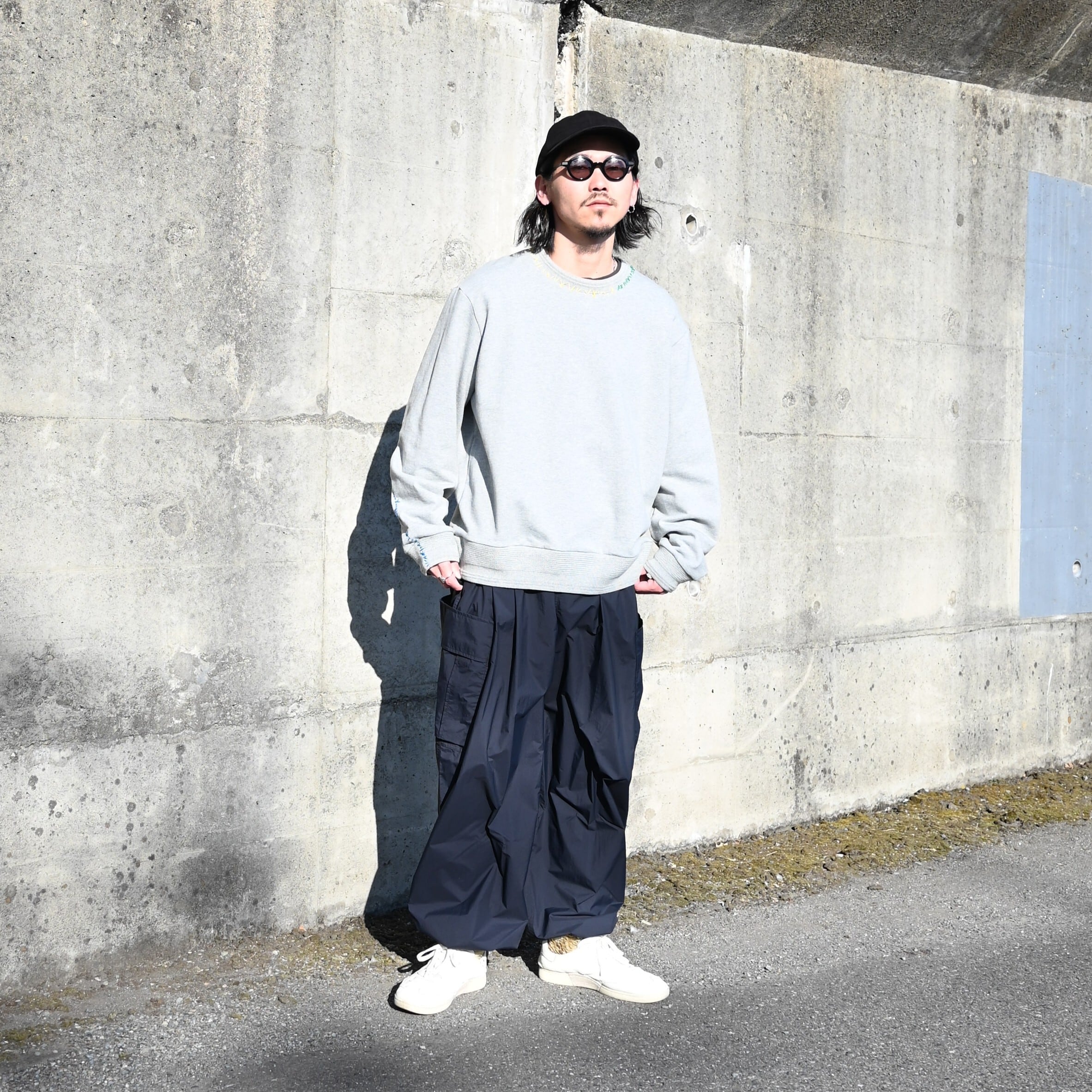 インナーにKUON(クオン)GANKO別注 Sashiko Sweatshirtを合わせパンツは同じくプロダクトトゥウェルブのPT12 Utility Pantsを合わせました。シューズはFOOT INDUSTRY(フットインダストリー)のGAT MINIMALを着用して足元に軽さをプラスしました。
