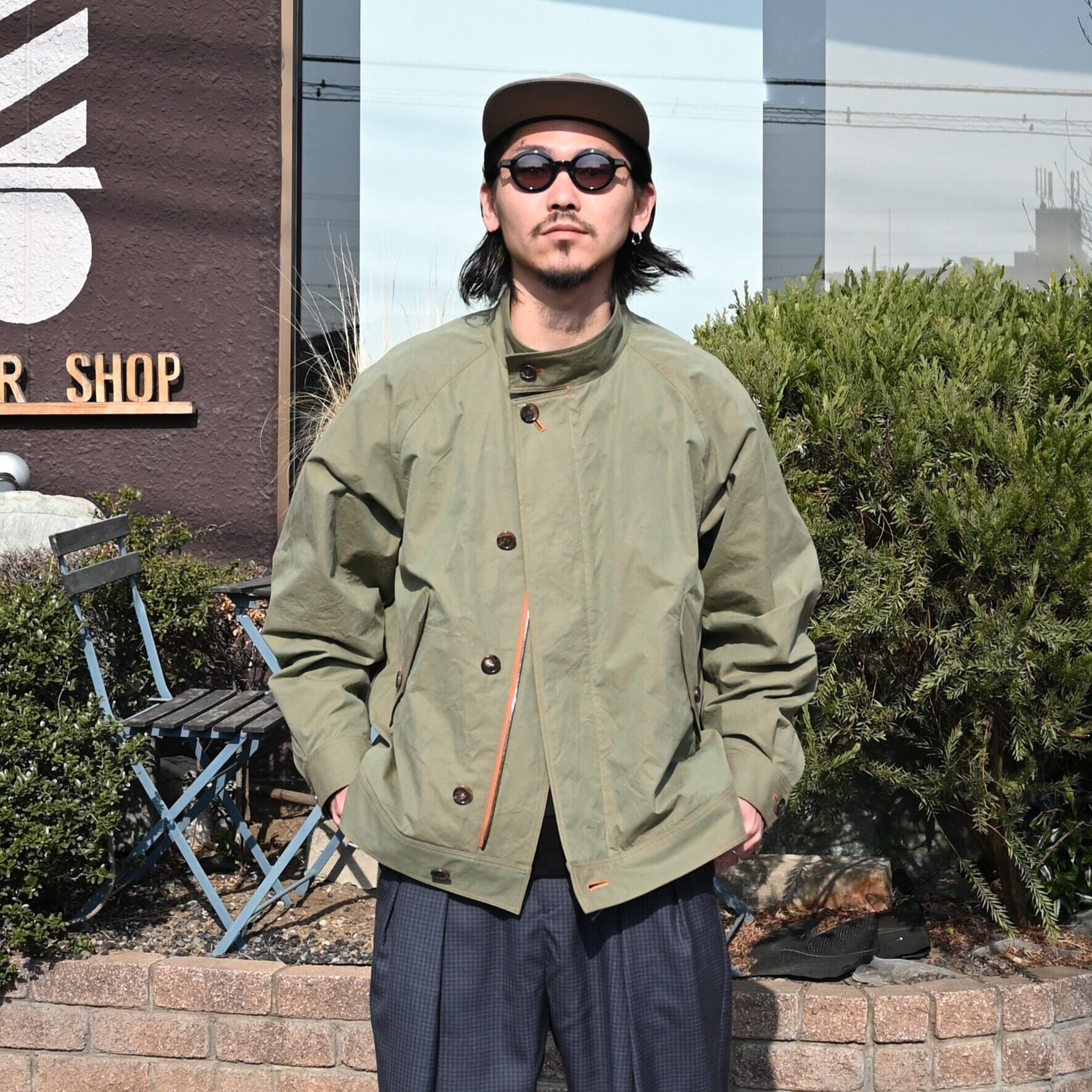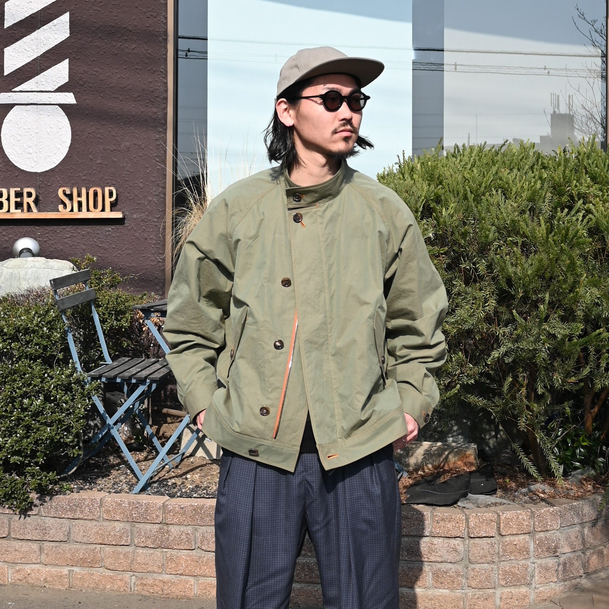山内(ヤマウチ)の超高密度シールドコットンクロス・セミダブルジップジャケットをメインにインナーにはKUON(クオン)襤褸スウェットを合わせました。