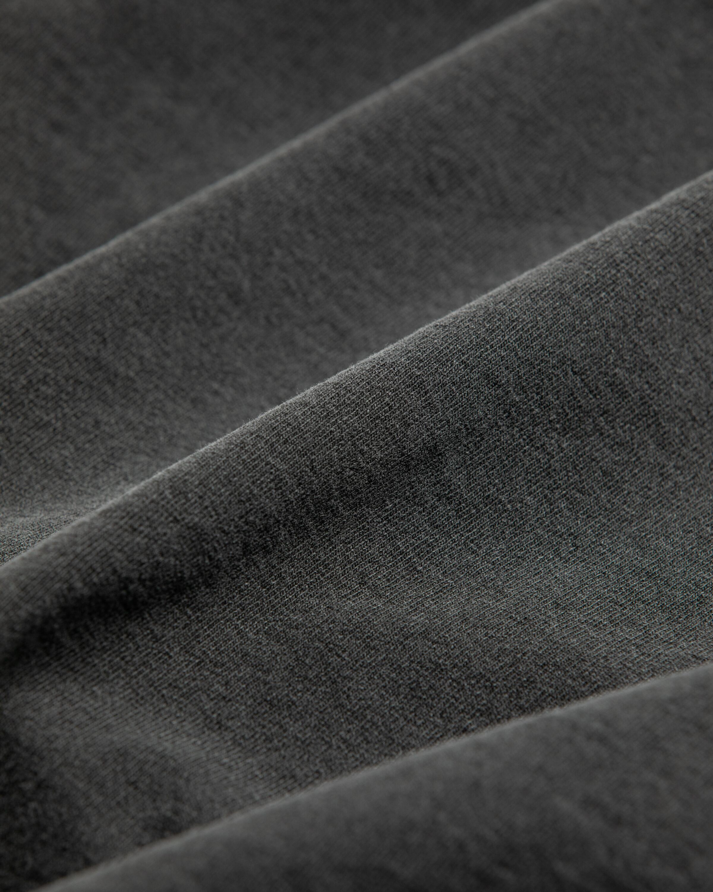 Features a dry-touch texture achieved by pigment-dyeing fabric made with open-end yarn.
