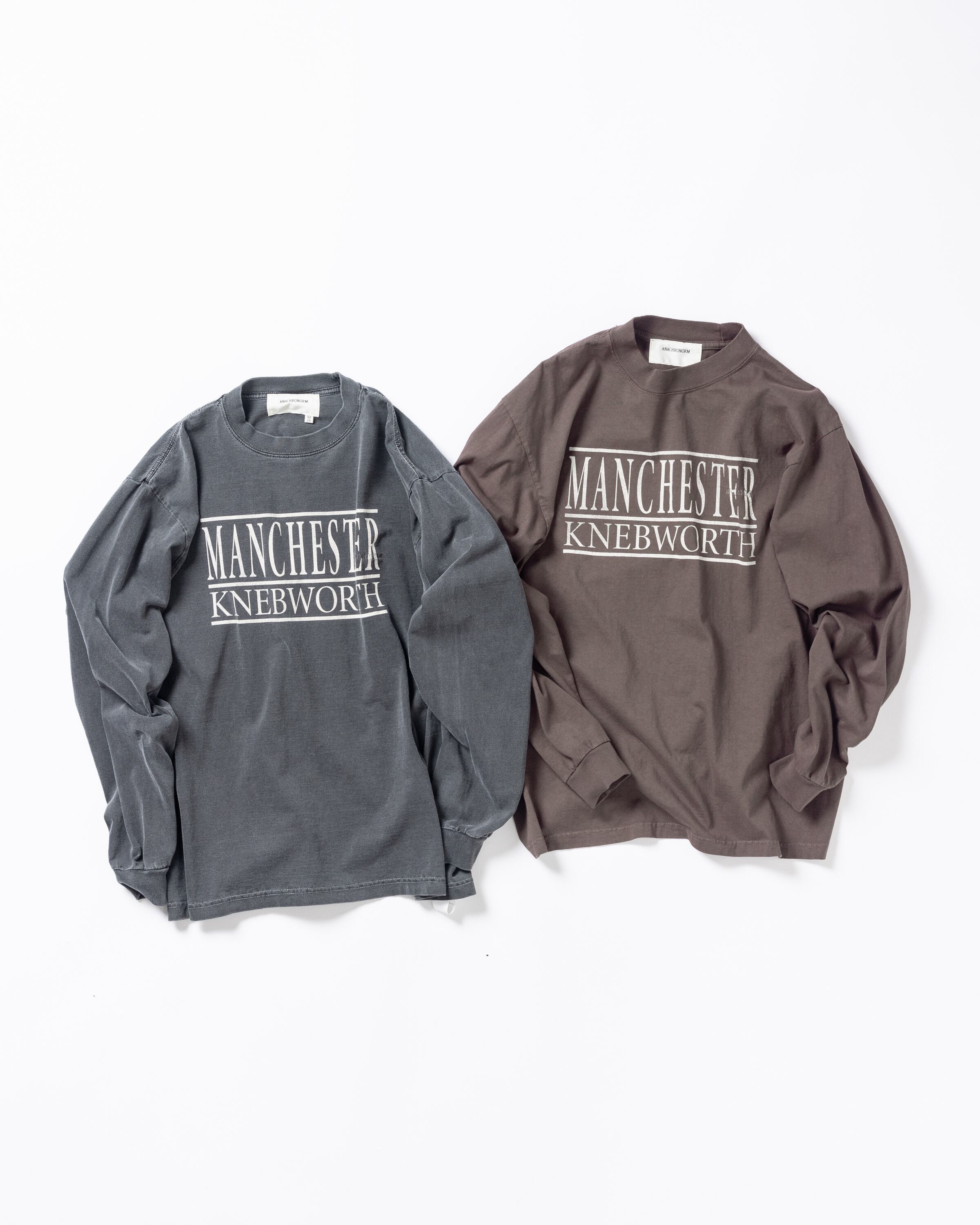 "マンチェスター" "ネブワース"カルチャーの発信源の地をスーベニア風にプリントデザインしたロンTです。