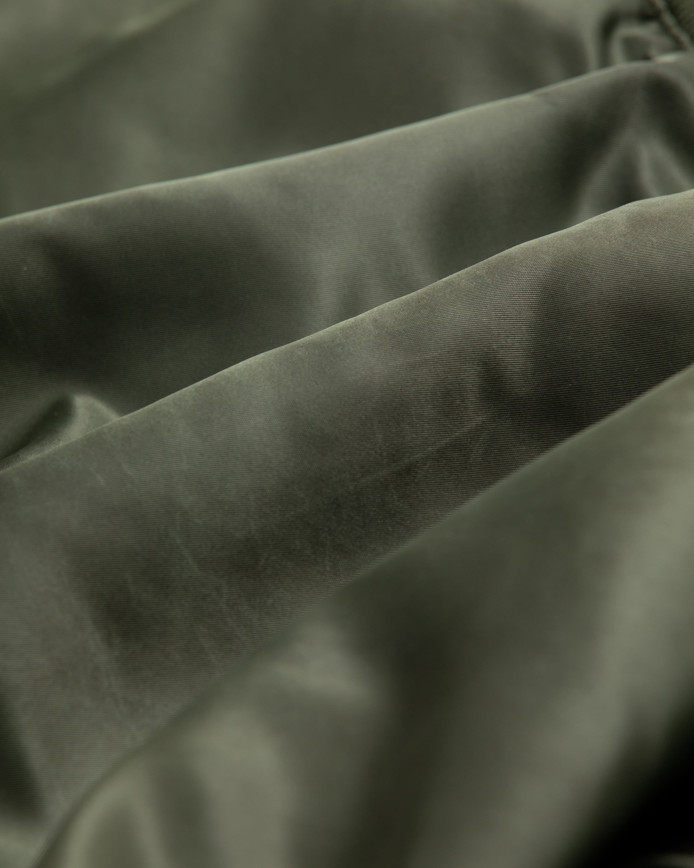 肉厚感のあるミリタリーテイストのツイル素材です。打ち込み本数、肌触りなどビンテージMA-1に近しいのが特徴です。
