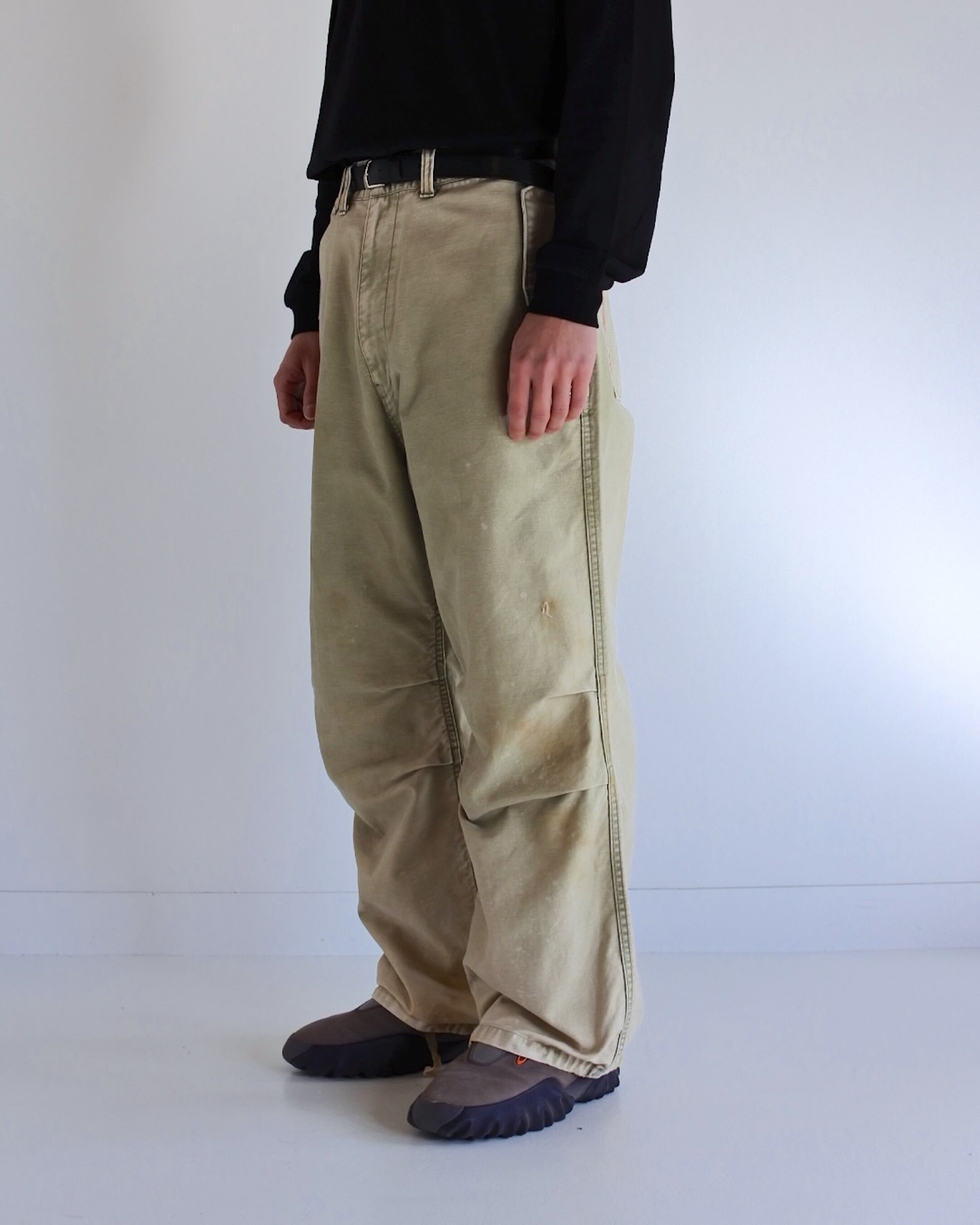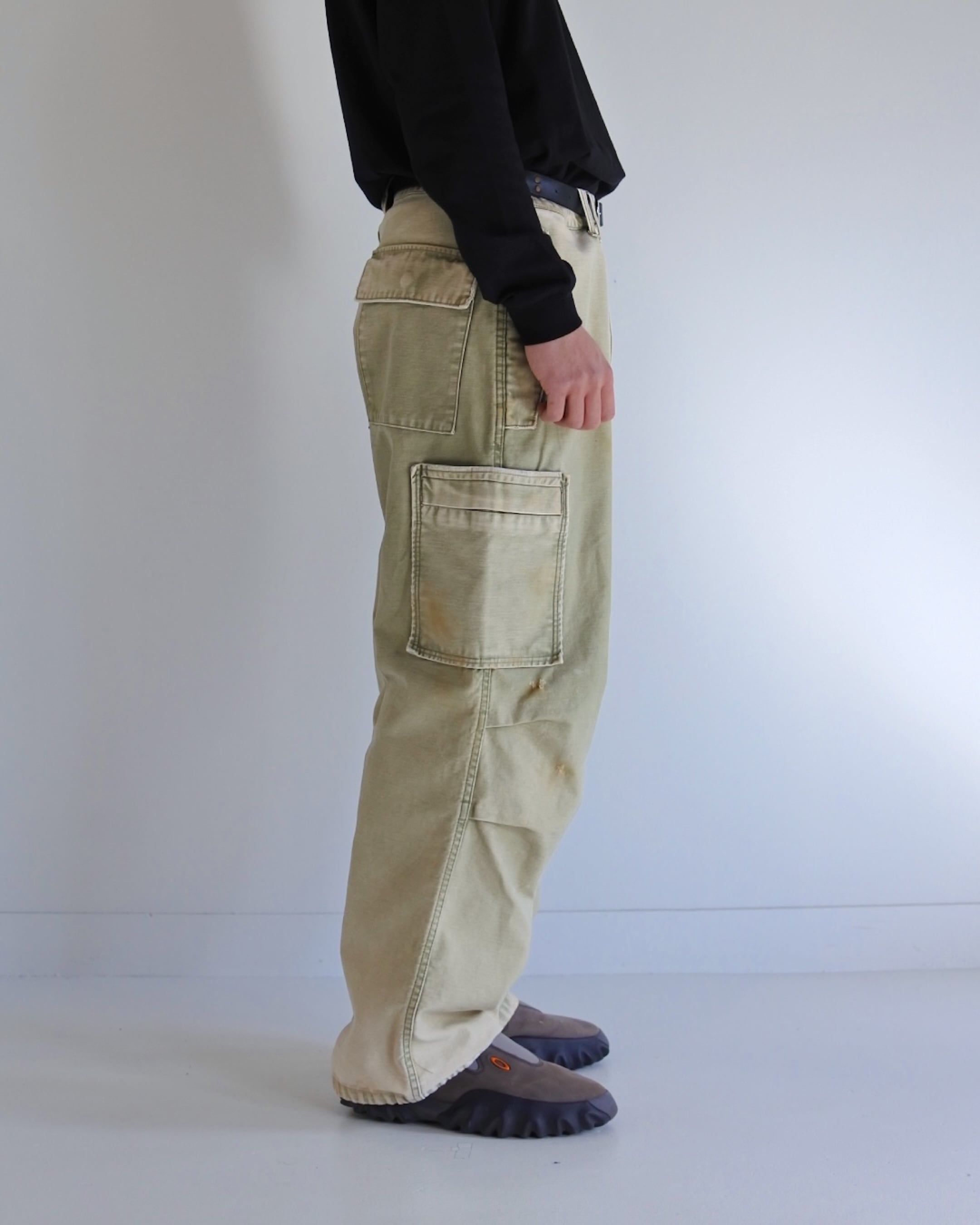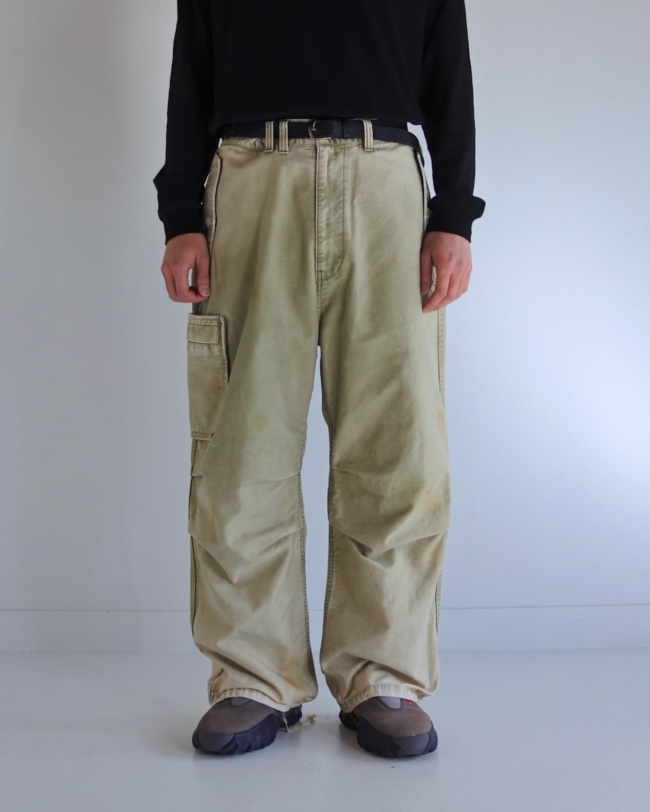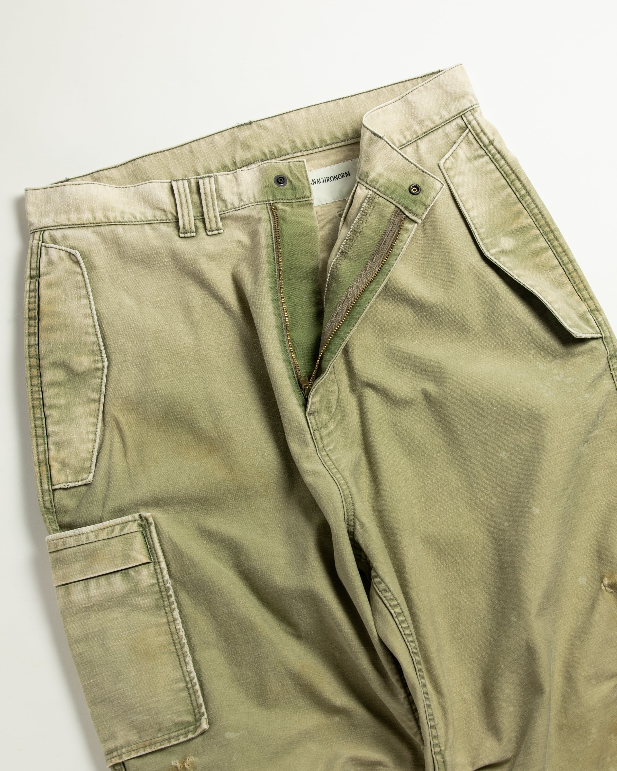【イベント限定アイテム2月1日20時まで販売】ANACHRONORM / BACK SATIN AGING MILITARY FLAP PANTS