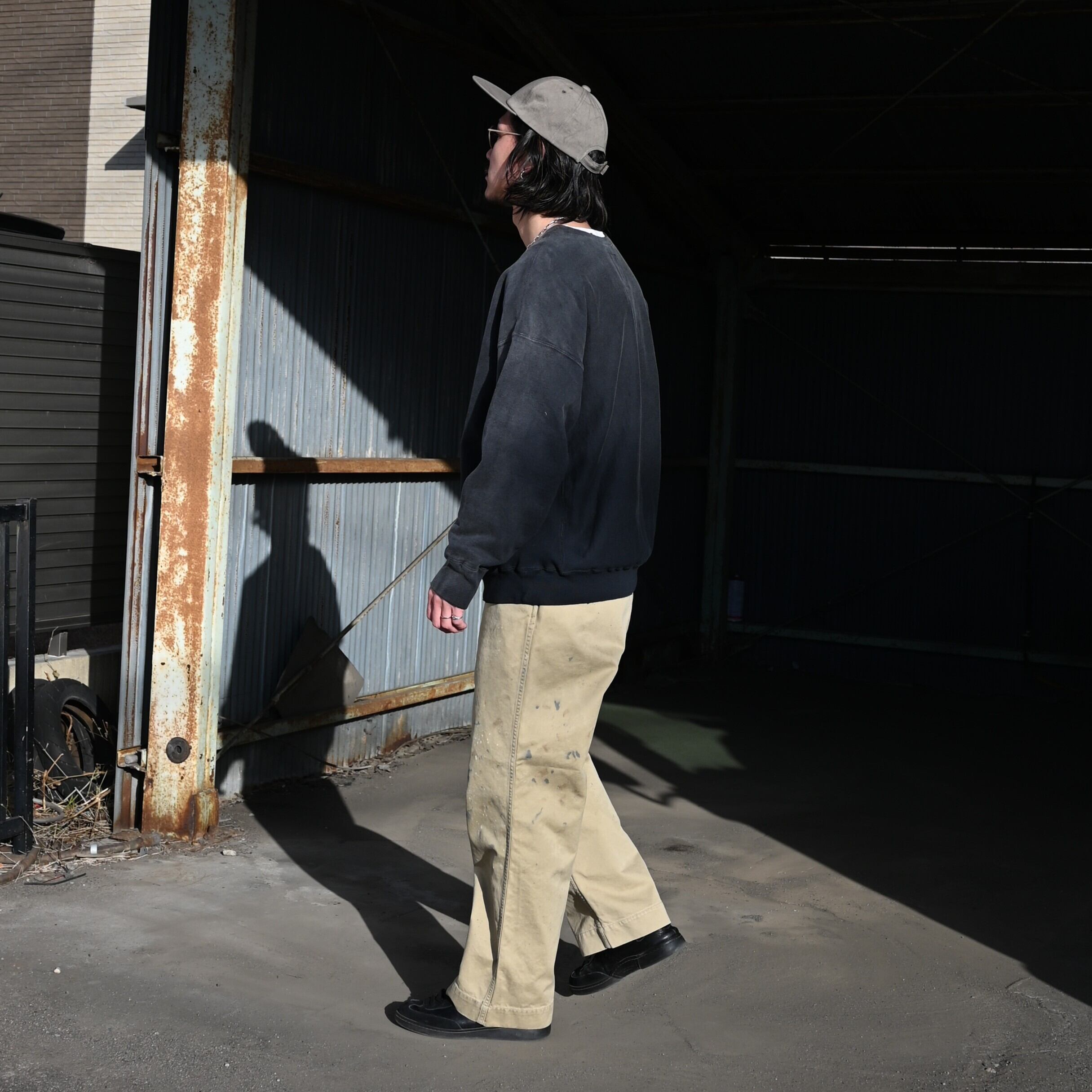BOWWOW(バウワウ)サリッシュロッジ加工スウェット、41カーキ加工チノパンコーディネート