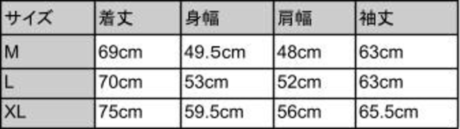 サイズM: 着丈69cm 肩幅48cm 身幅49.5cm 袖丈63cm