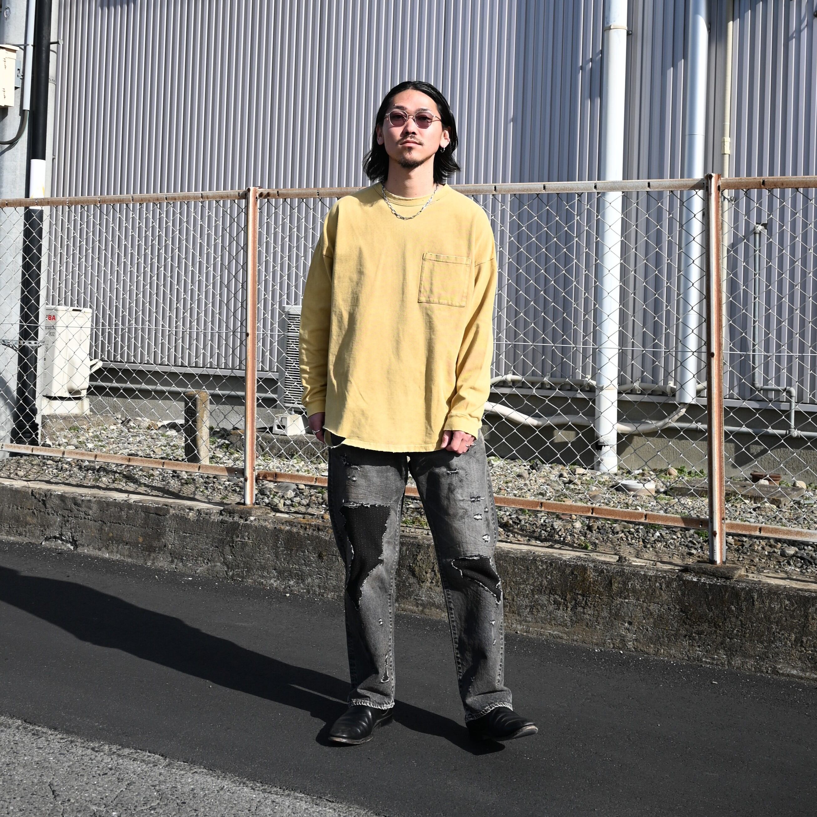 ANACHRONORM / MOSS STITCH DAMAGED POCKET L/S T-S