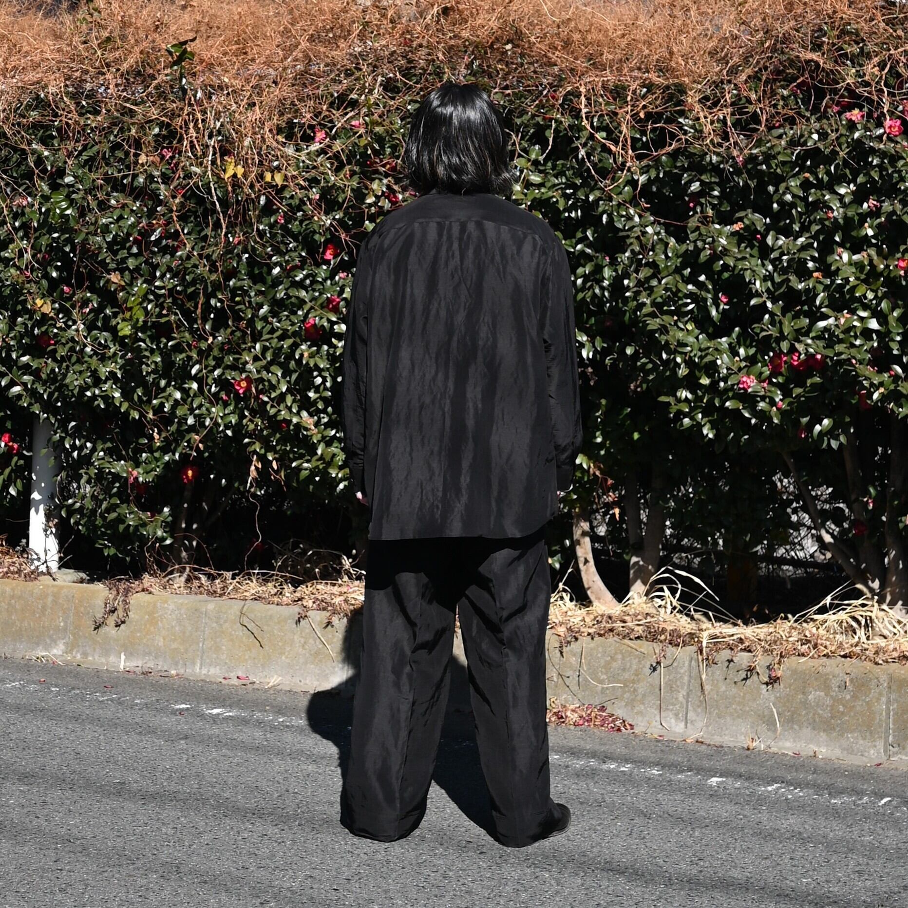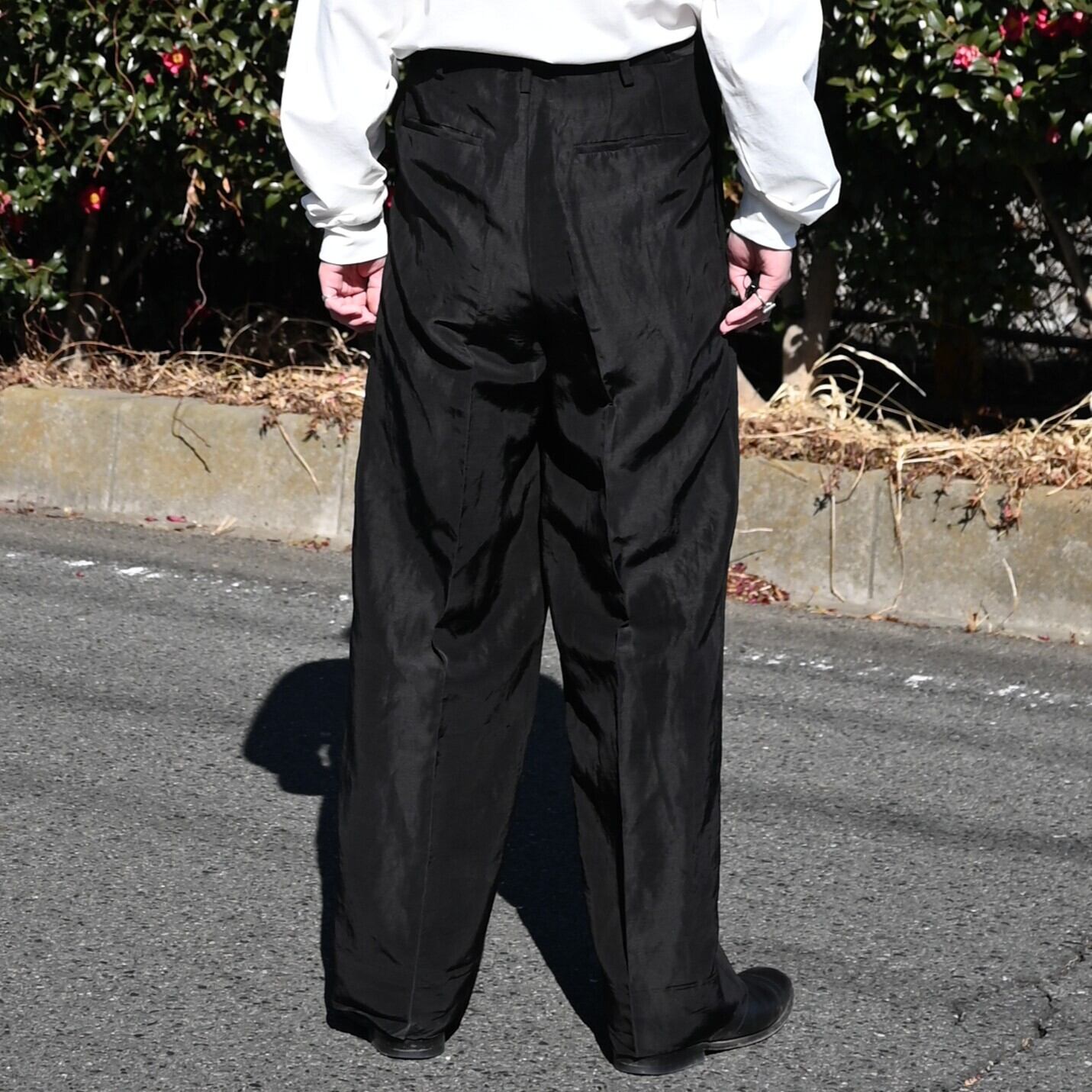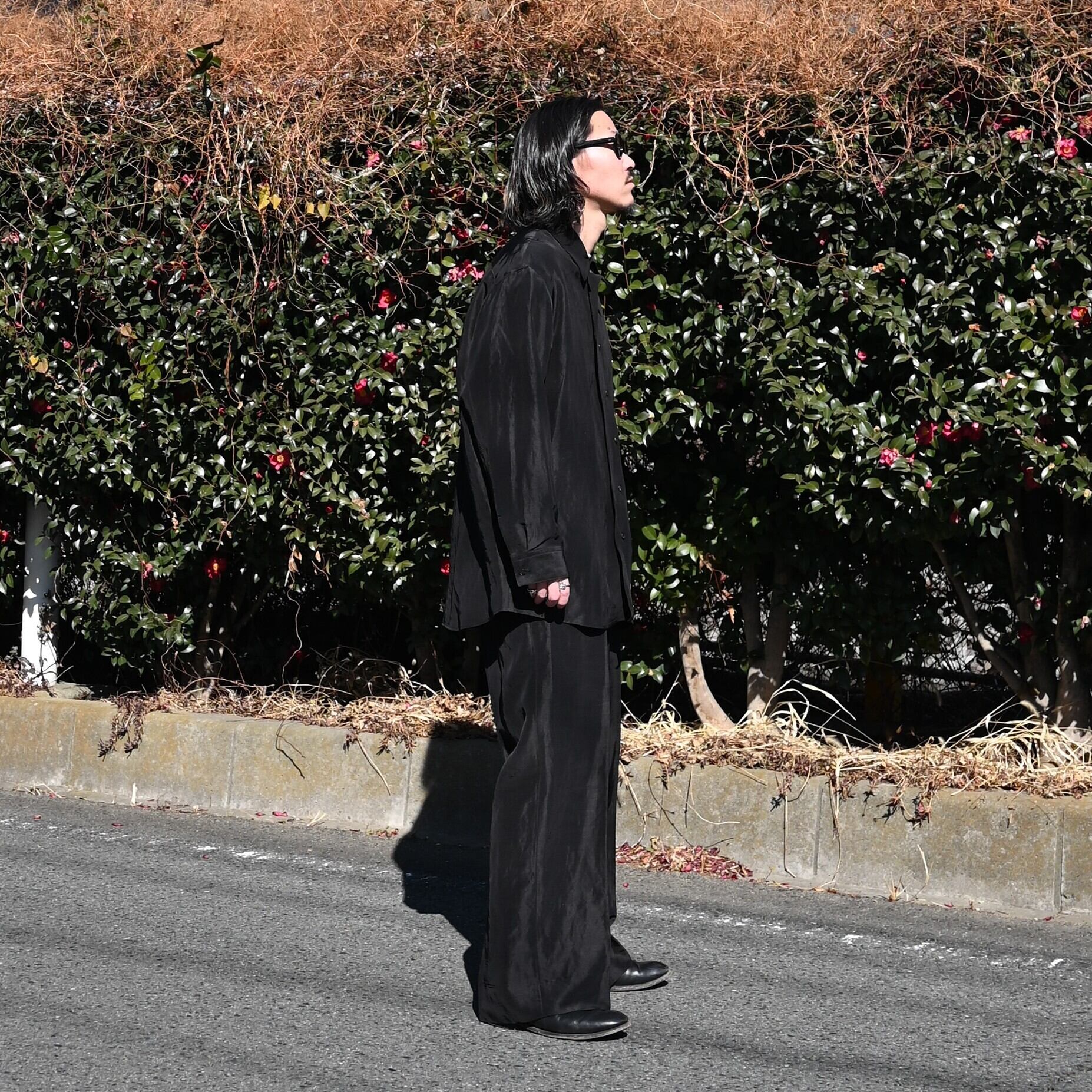 Nonnotte(ノノット)26SS新作のリネヨンシャツ、スラックスセットアップスタイル。