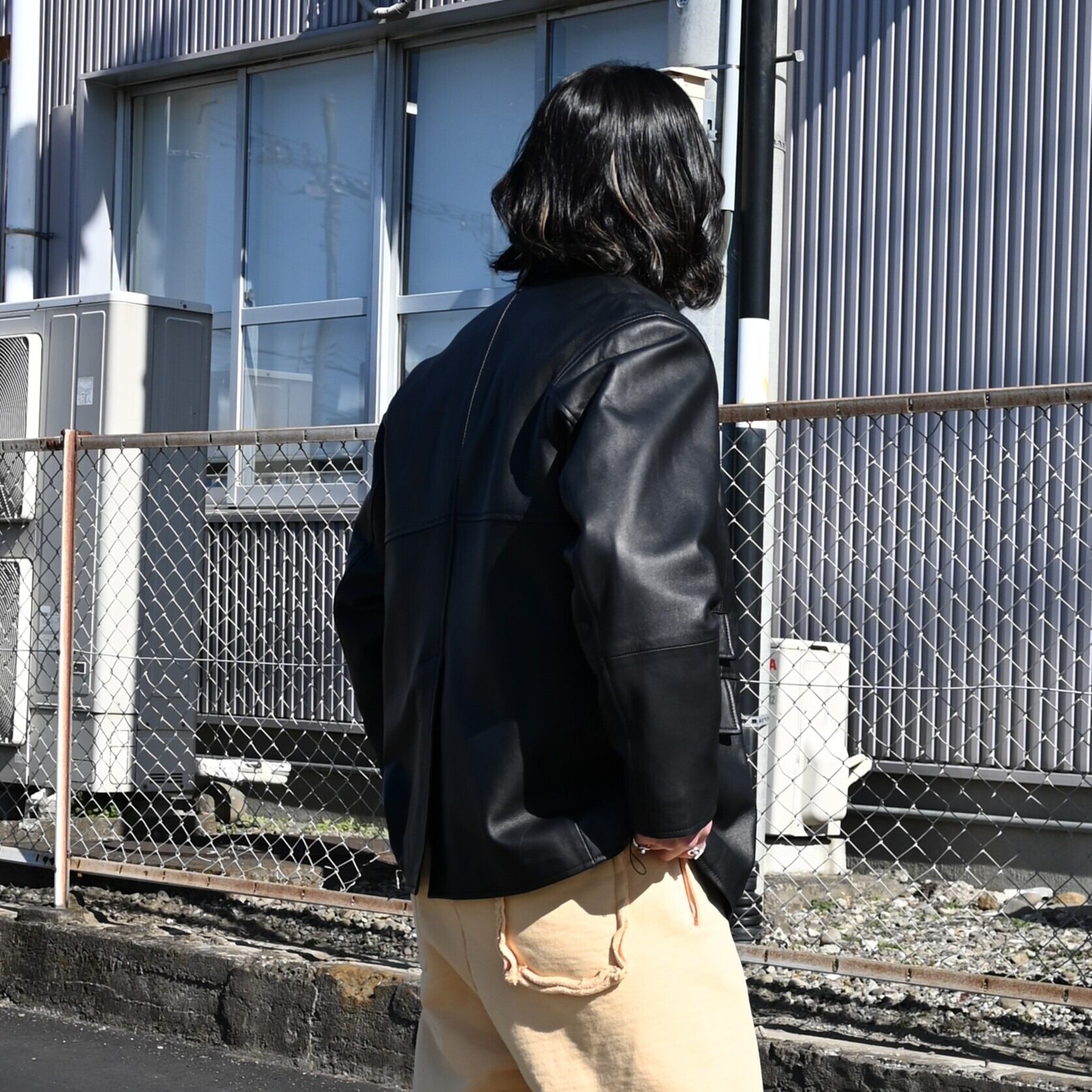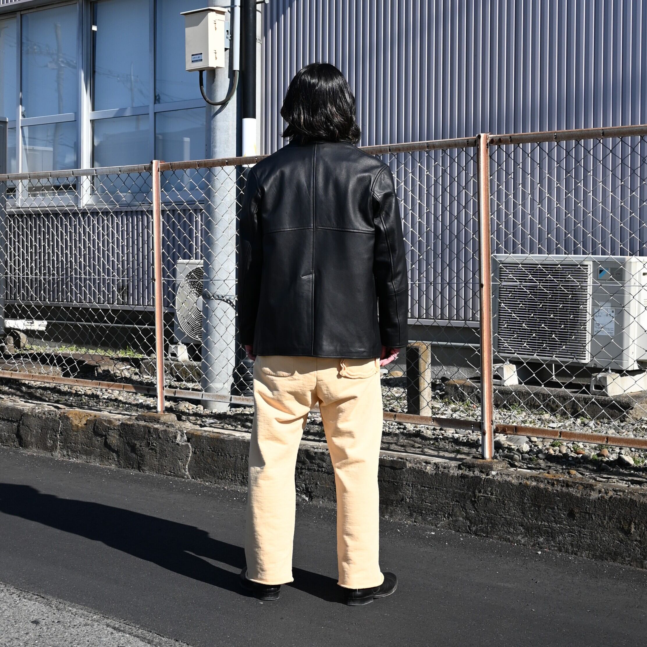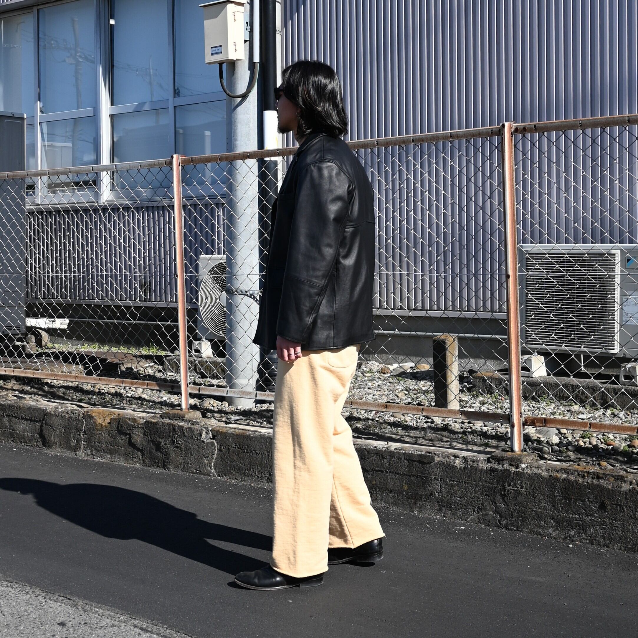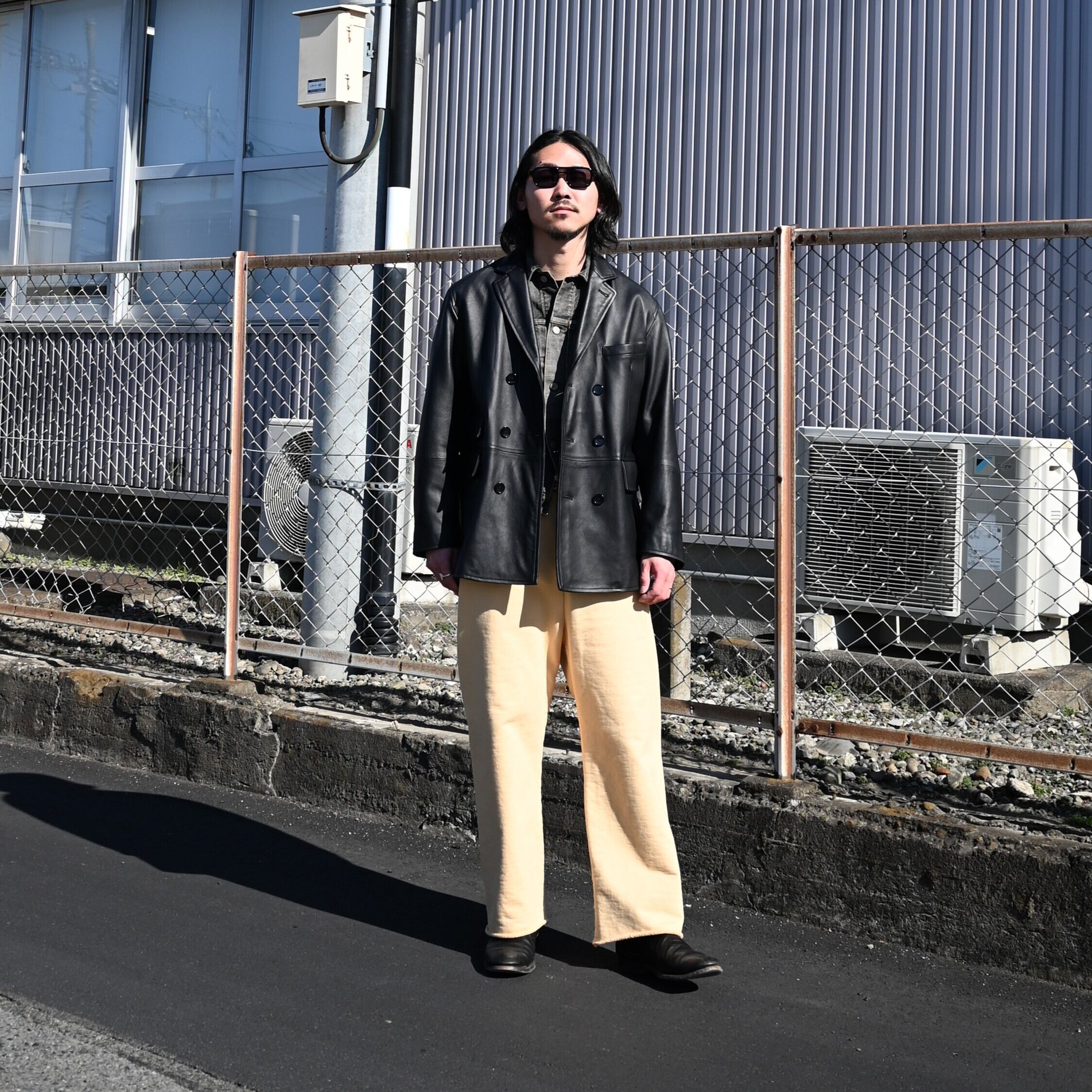 CCU(シーシーユー)のDOUBLE BREASTED JKTをメインにコーディネート。インナーにINTERIM(インテリム)のSHABBY VINTAGE "2ND" SHUTTLE DENIM SIDE PANEL JACKETを合わせ、26SSから新規でお取り扱いさせていただく、BOWWOWのスウェットパンツを着用いたしました。