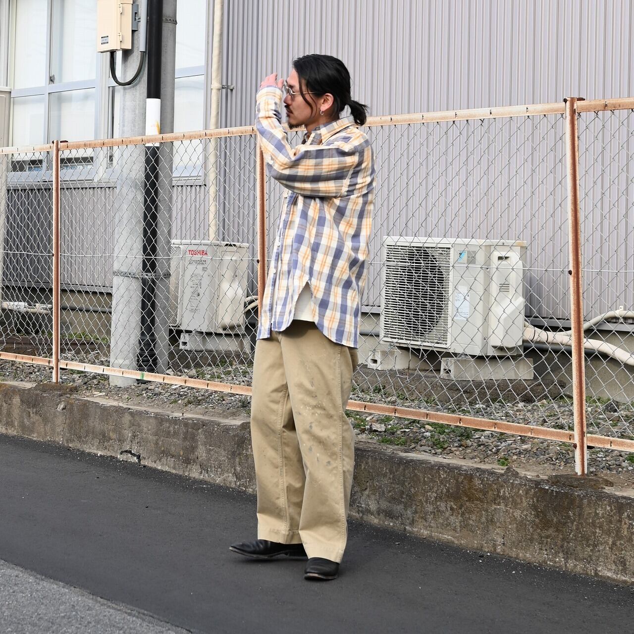 BOWWOW(バウワウ)UNIQUE POCKET CHECKED FLANNEL SHIRT AGEDコーディネート