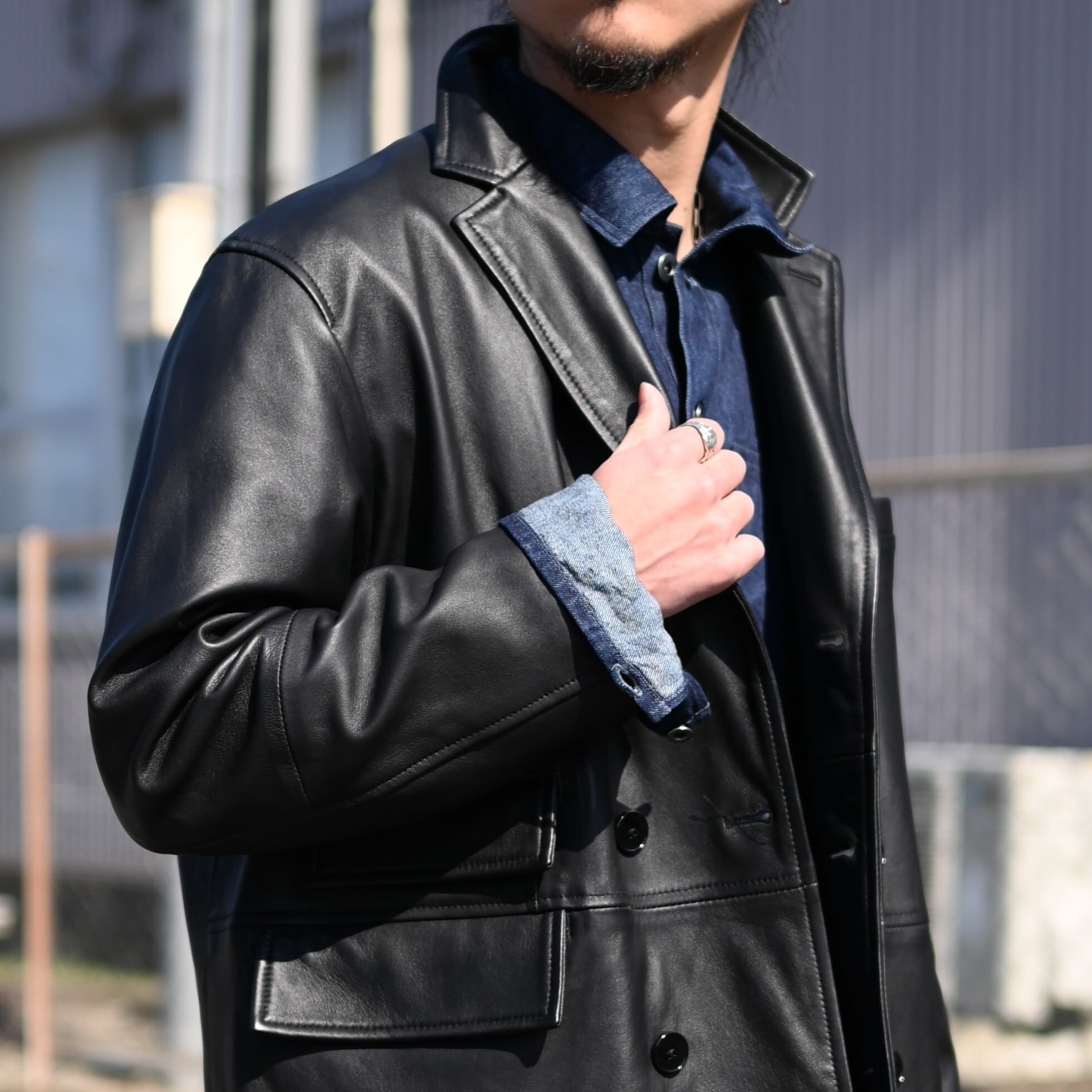 レザー、コットンヘンプインディゴデニムとのカラーバランスがとてもよく、トータルでオススメのコーディネートになります。