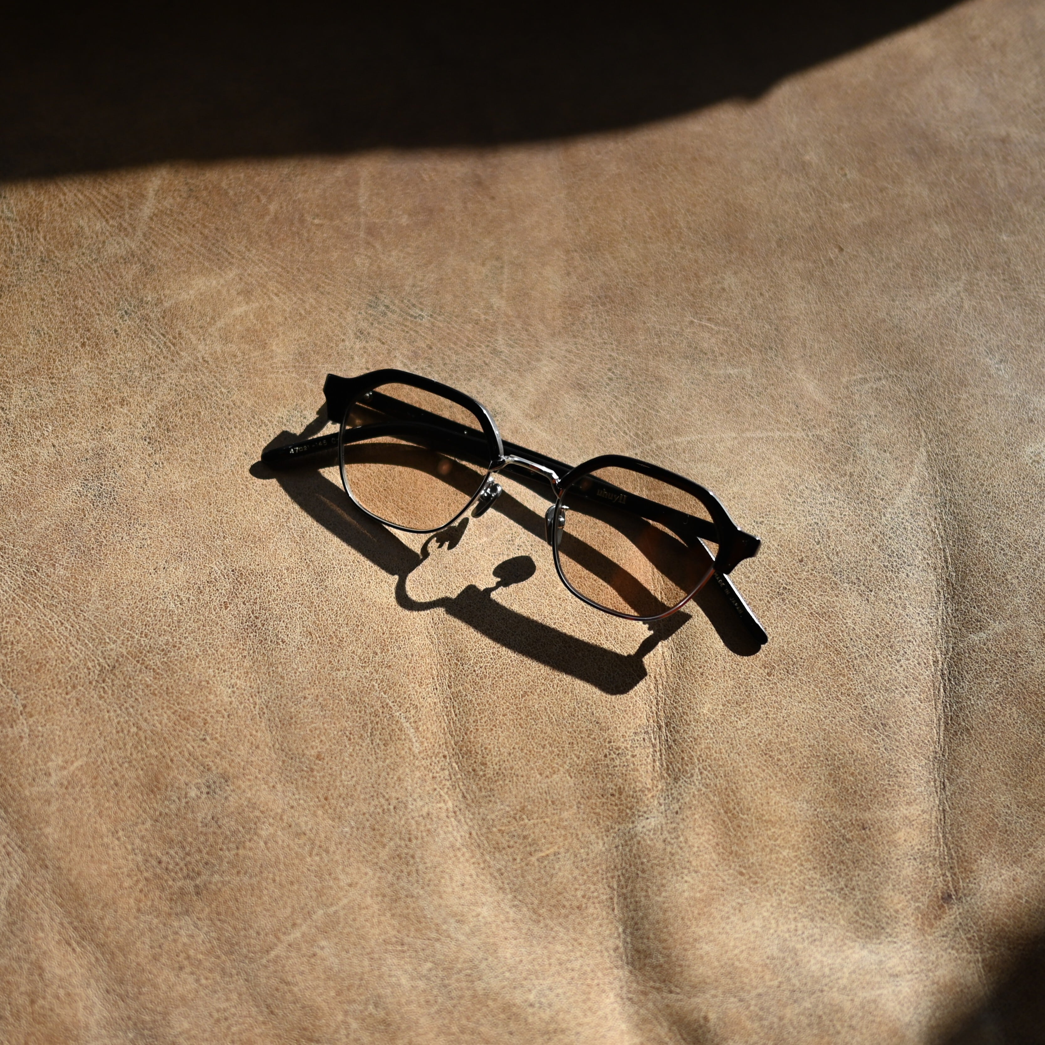 ・フレーム上部の直線の程よい主張と曲線とのバランスが印象的な眼鏡