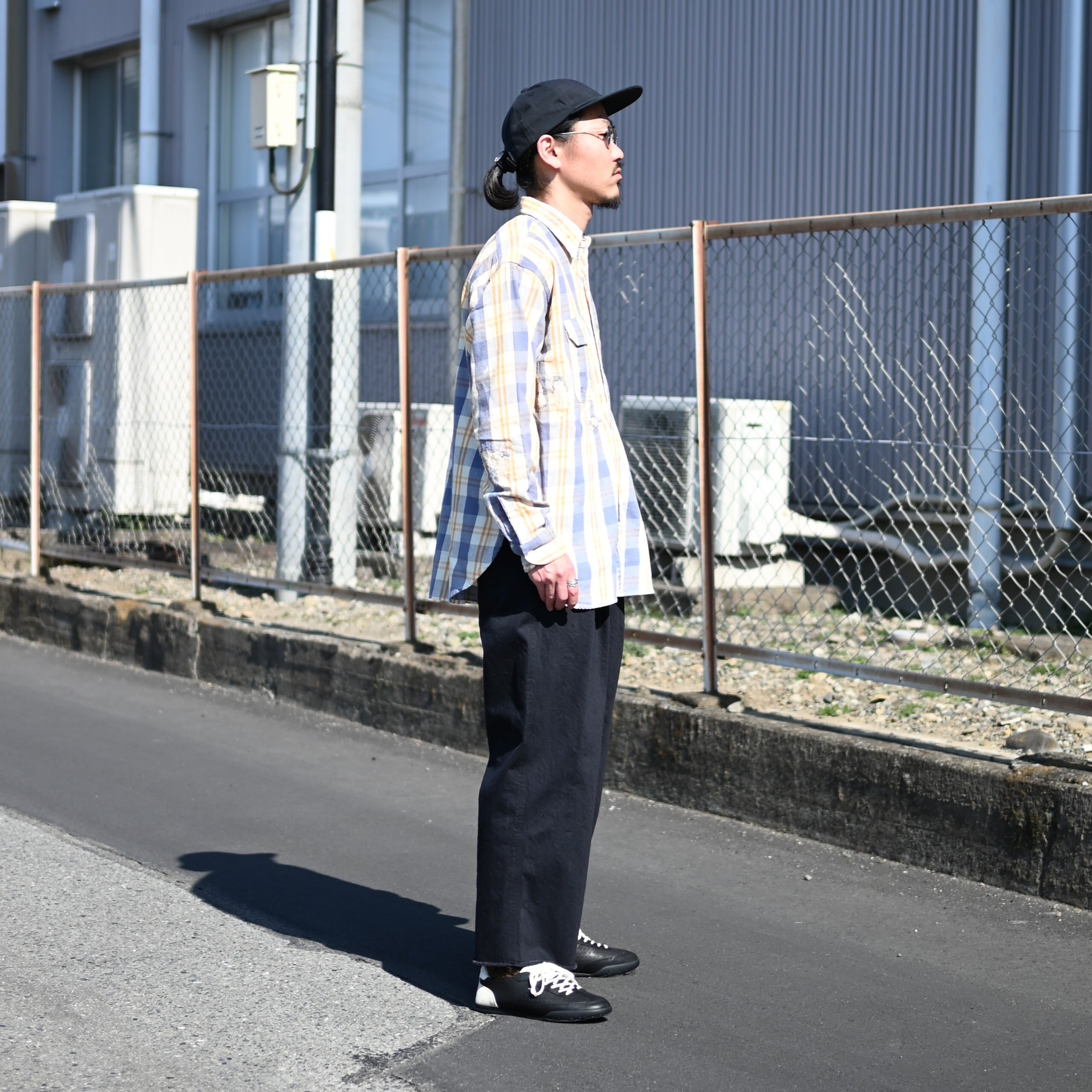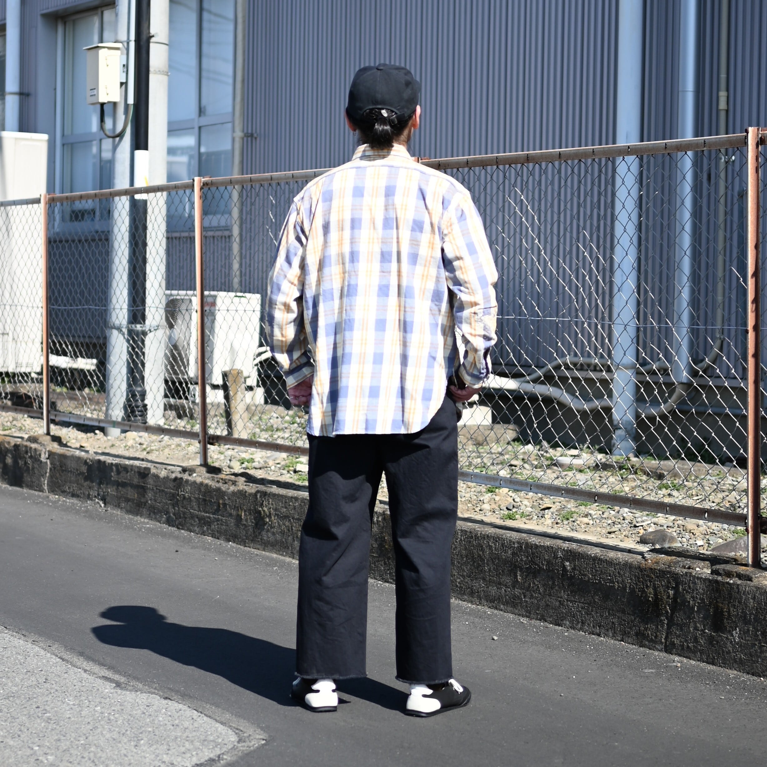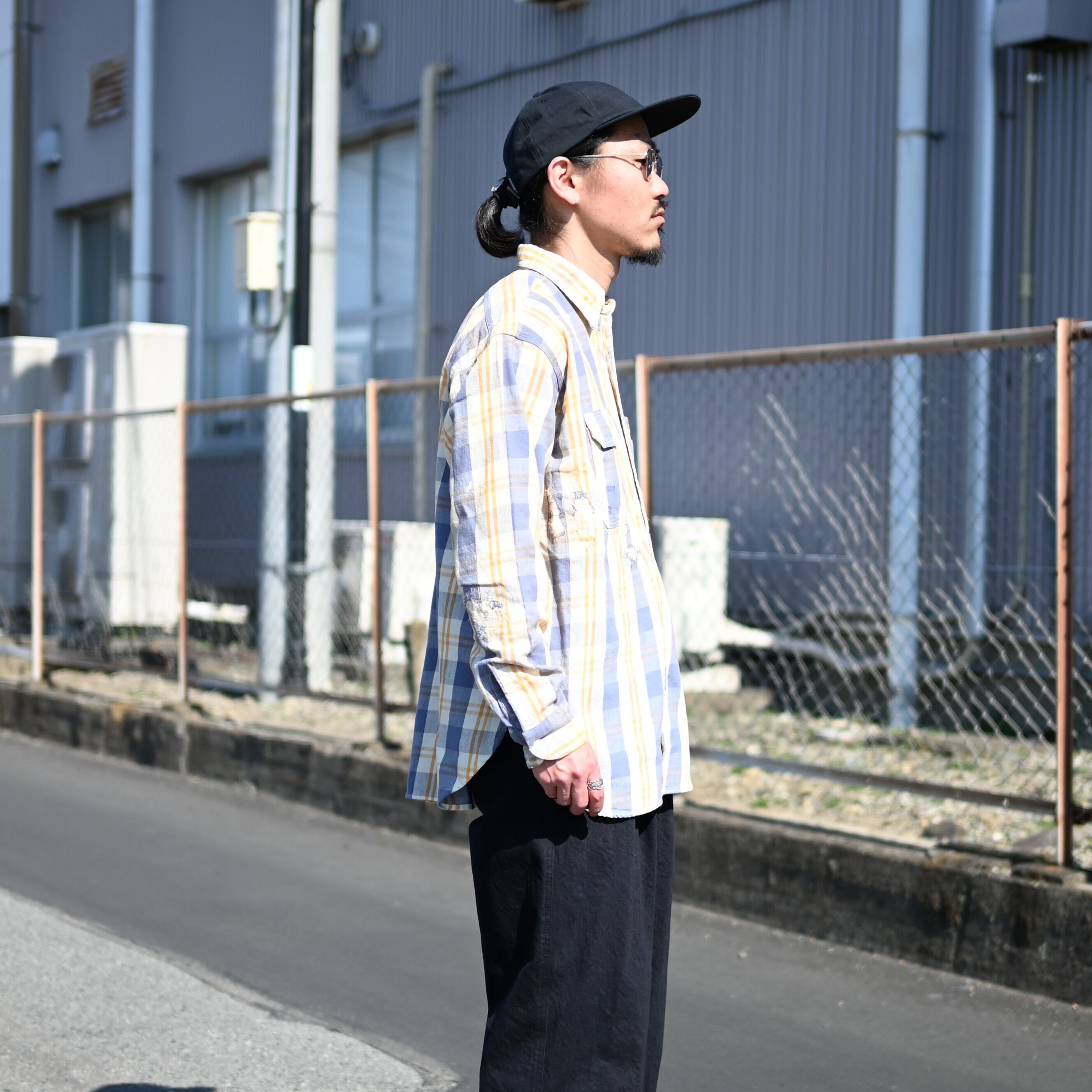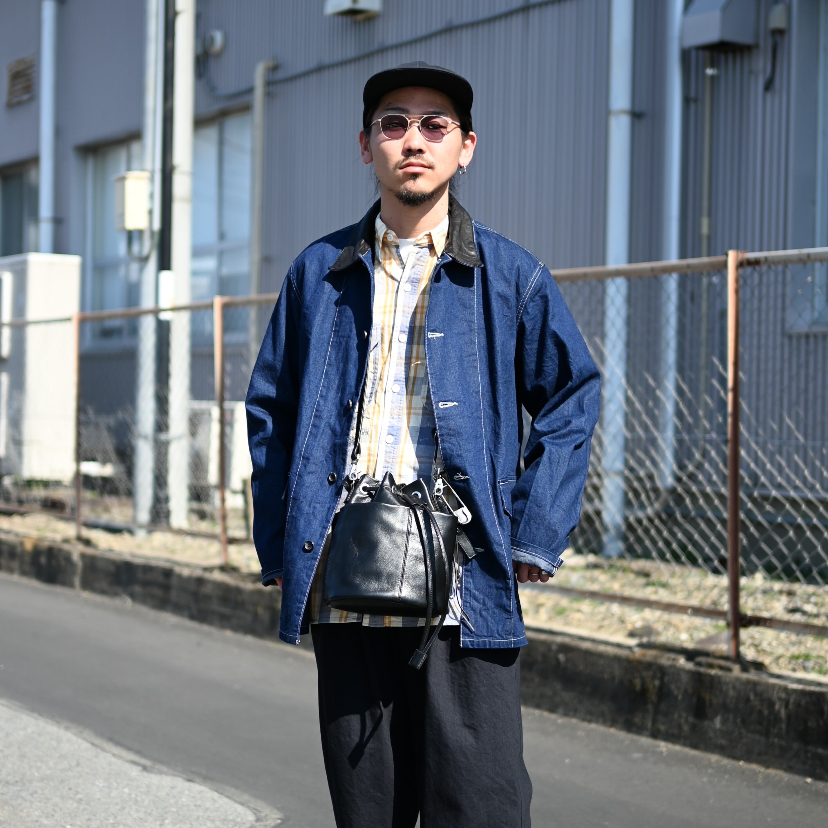For this styling, we paired it with a bowwow check shirt in a spring-ready yellow and navy colorway as the inner layer, along with SAYATOMO cut-off denim.