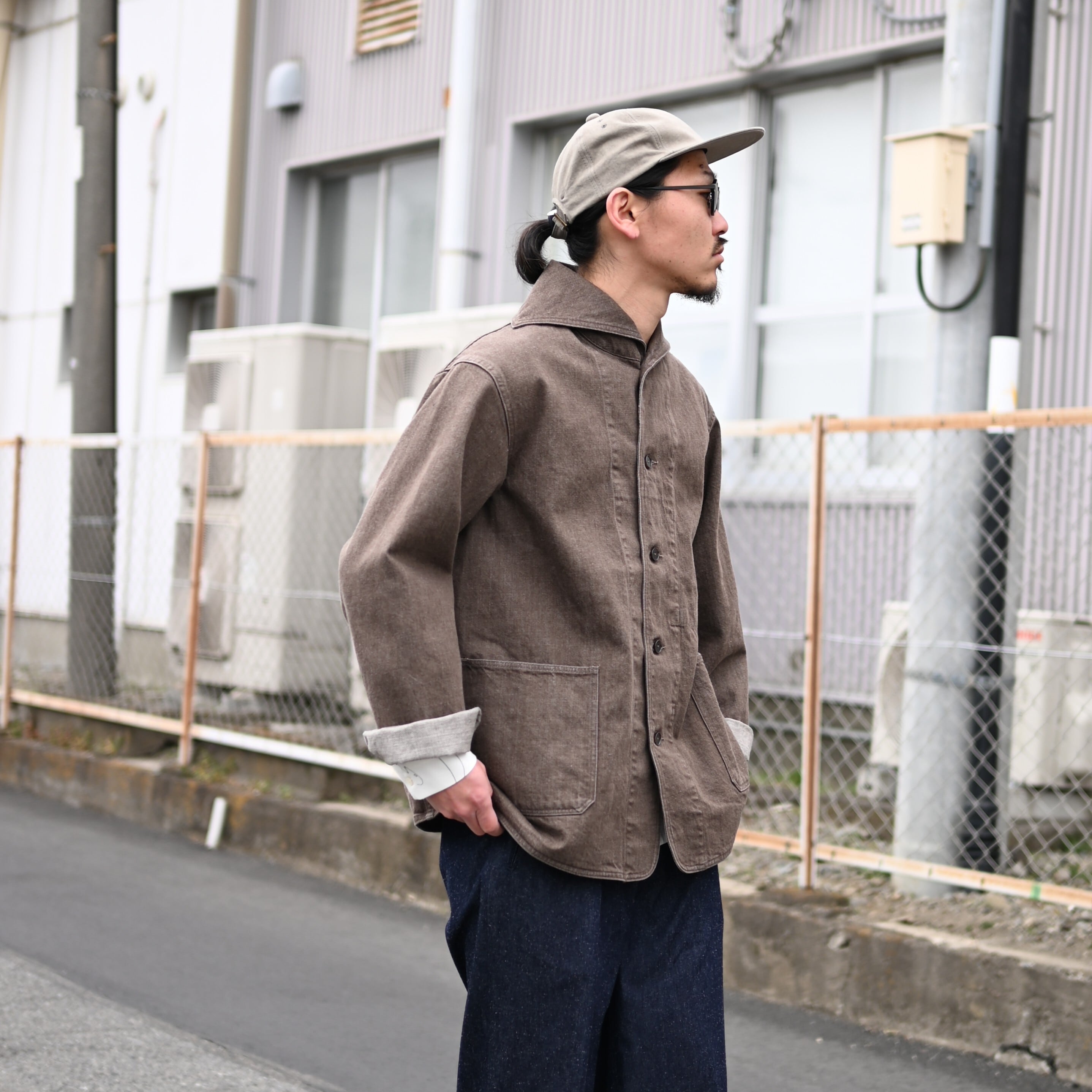 oldjoeのナツメグ(ブラウン)カラーのセーラーカバーオールをメイン着用。