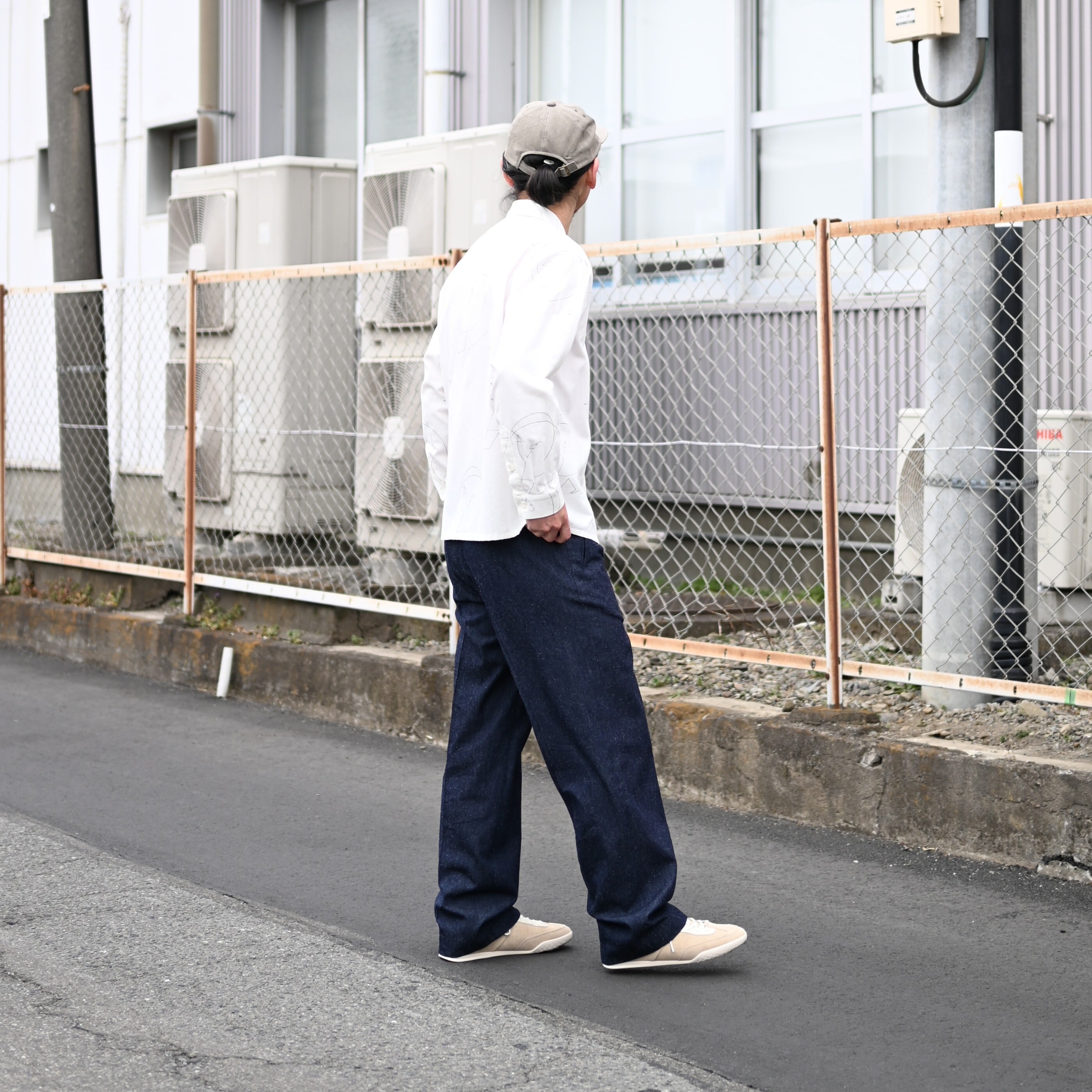 A key point is that instead of pairing it with leather shoes, I chose to wear sneakers from Foot Industry to add a casual touch.