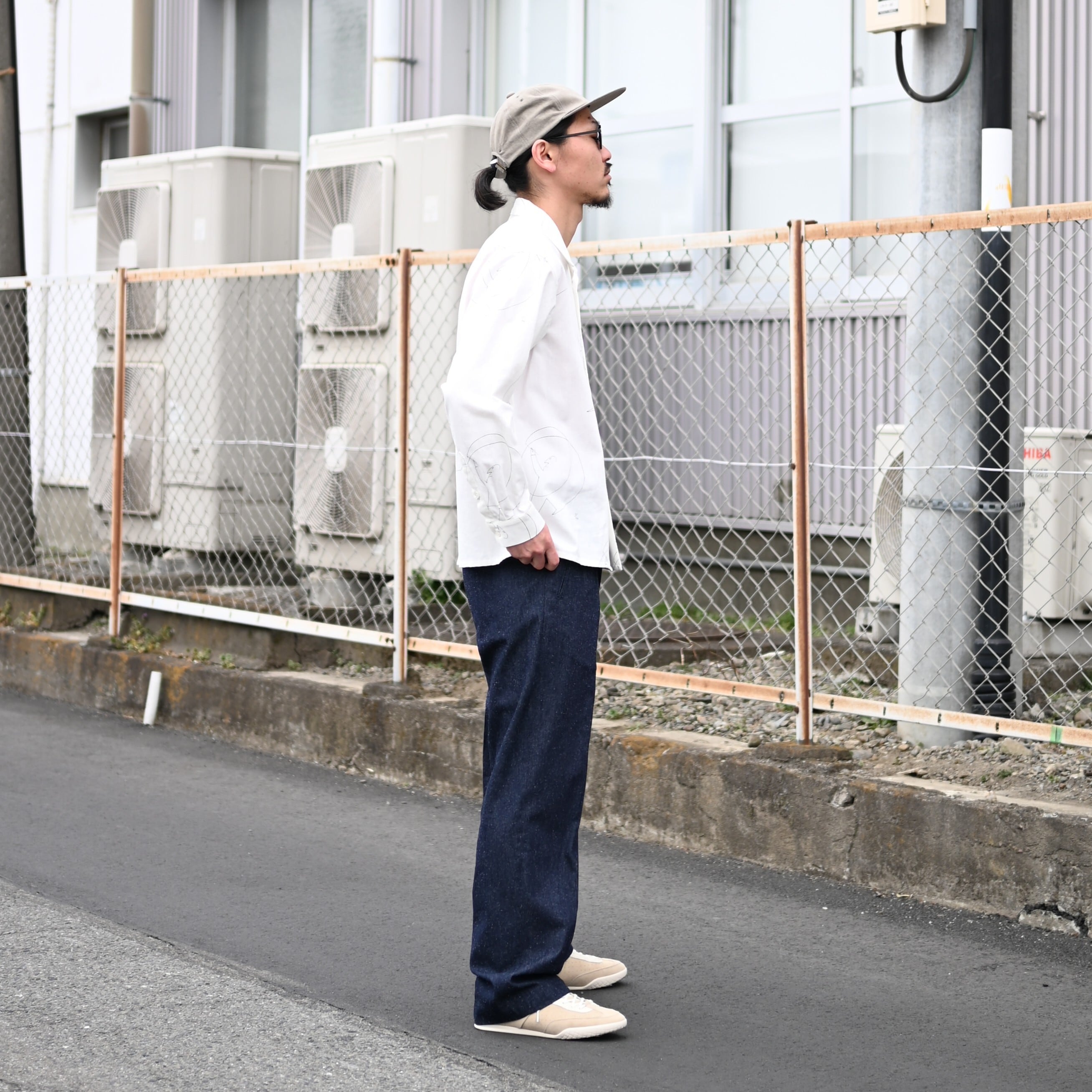 革靴でなくあえてフットインダストリーのスニーカーを合わせてカジュアルさをプラスしたところもポイントです◯