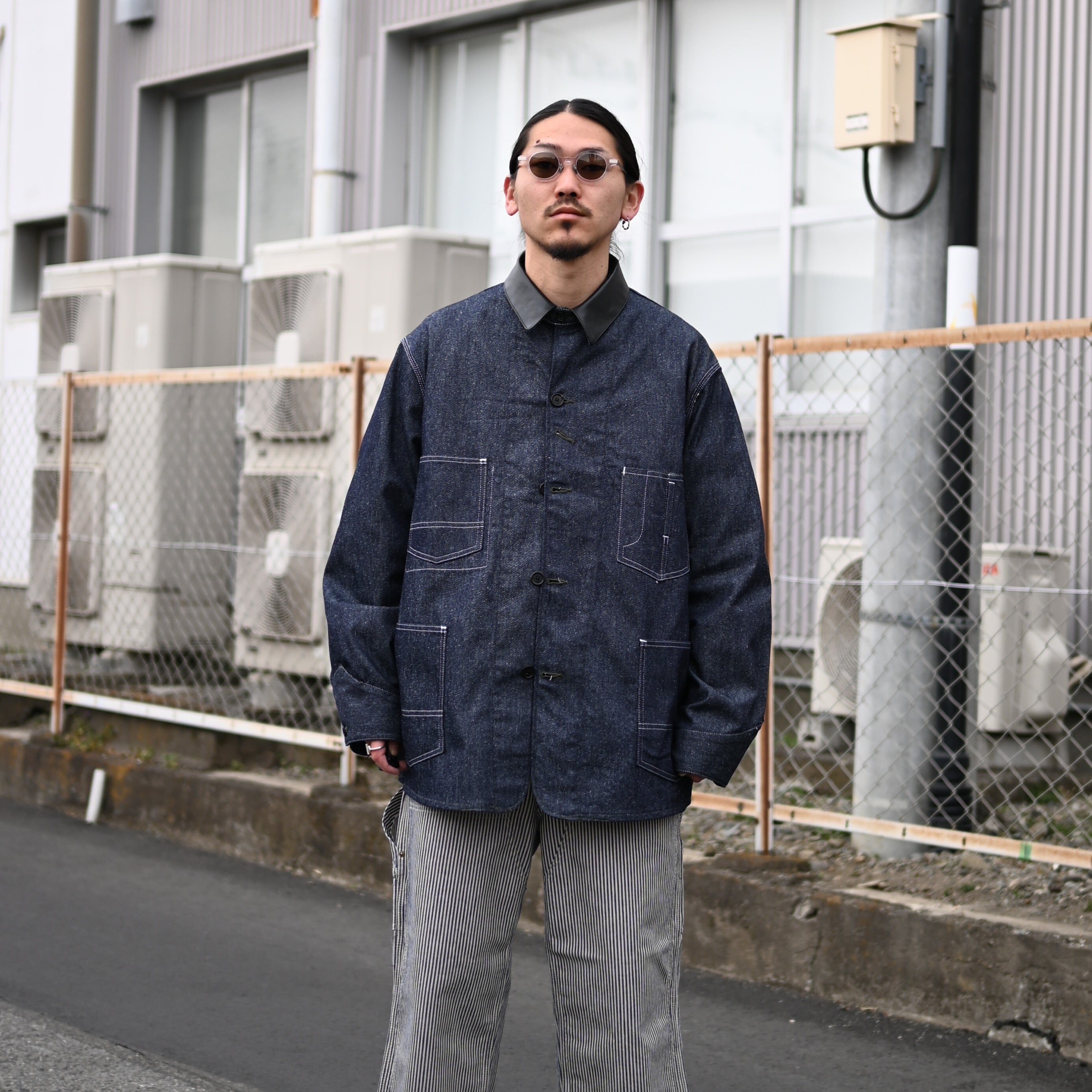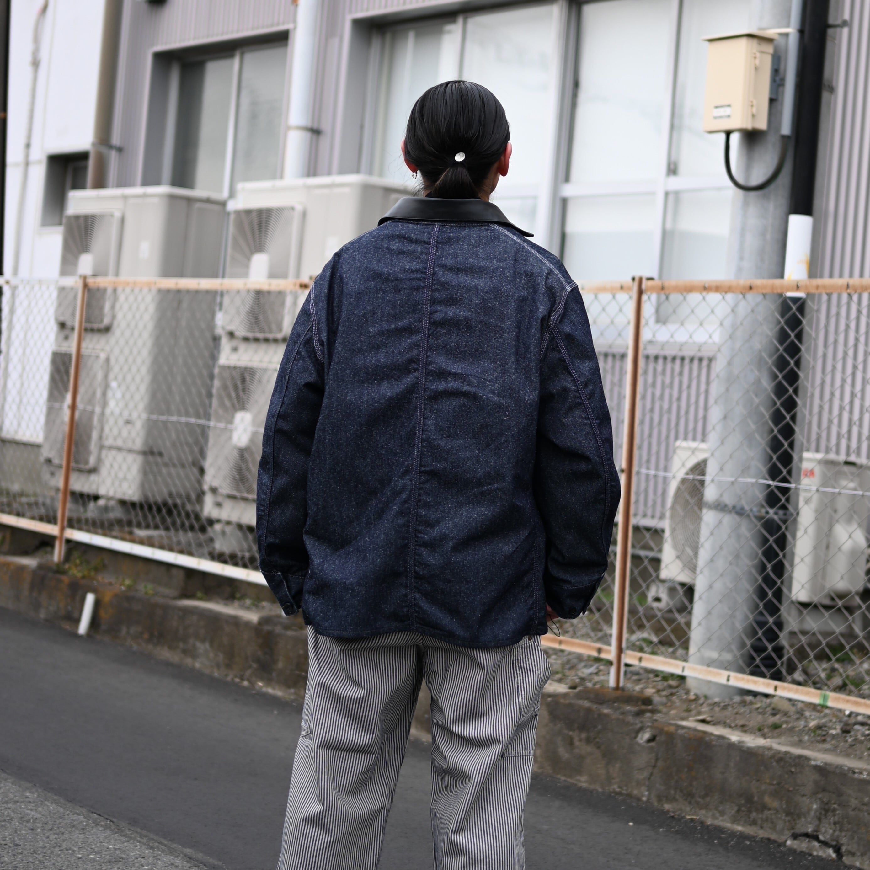 INTERIM / GOAT LEATHER COLLAR SILK NOIL DENIM 1st HERCULES COVERALL