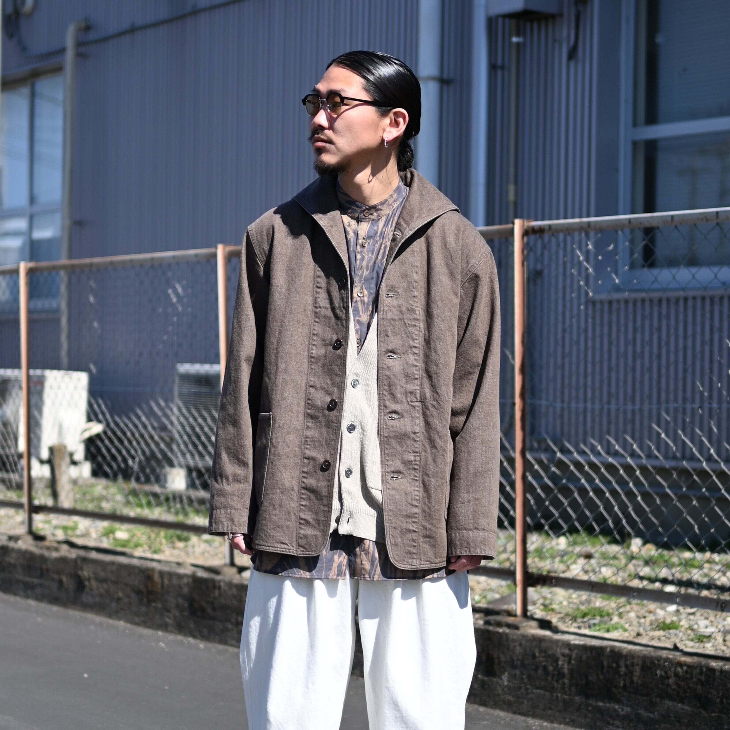 The flow-dyed cotton cupro twill stand collar shirt from 山内 has just arrived.