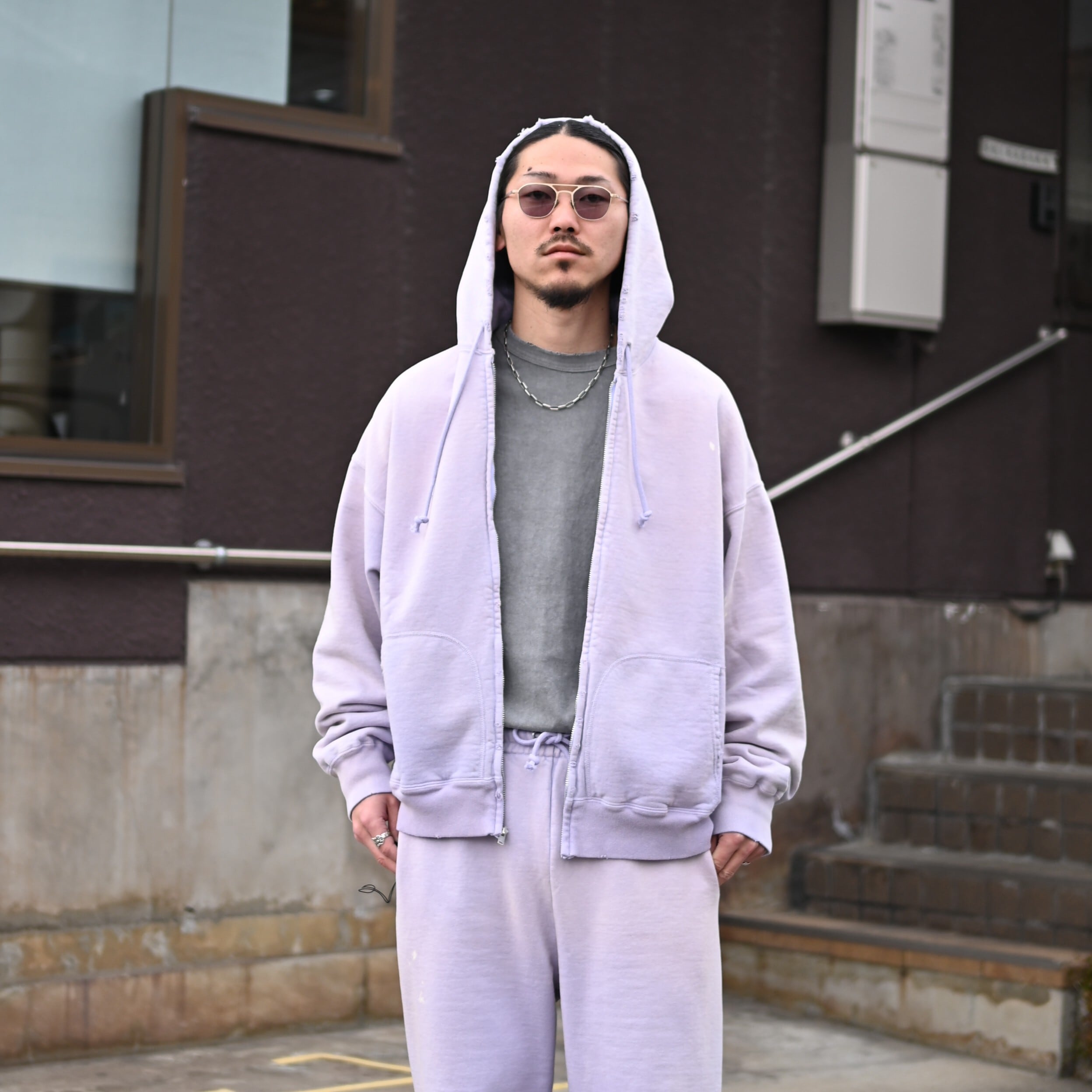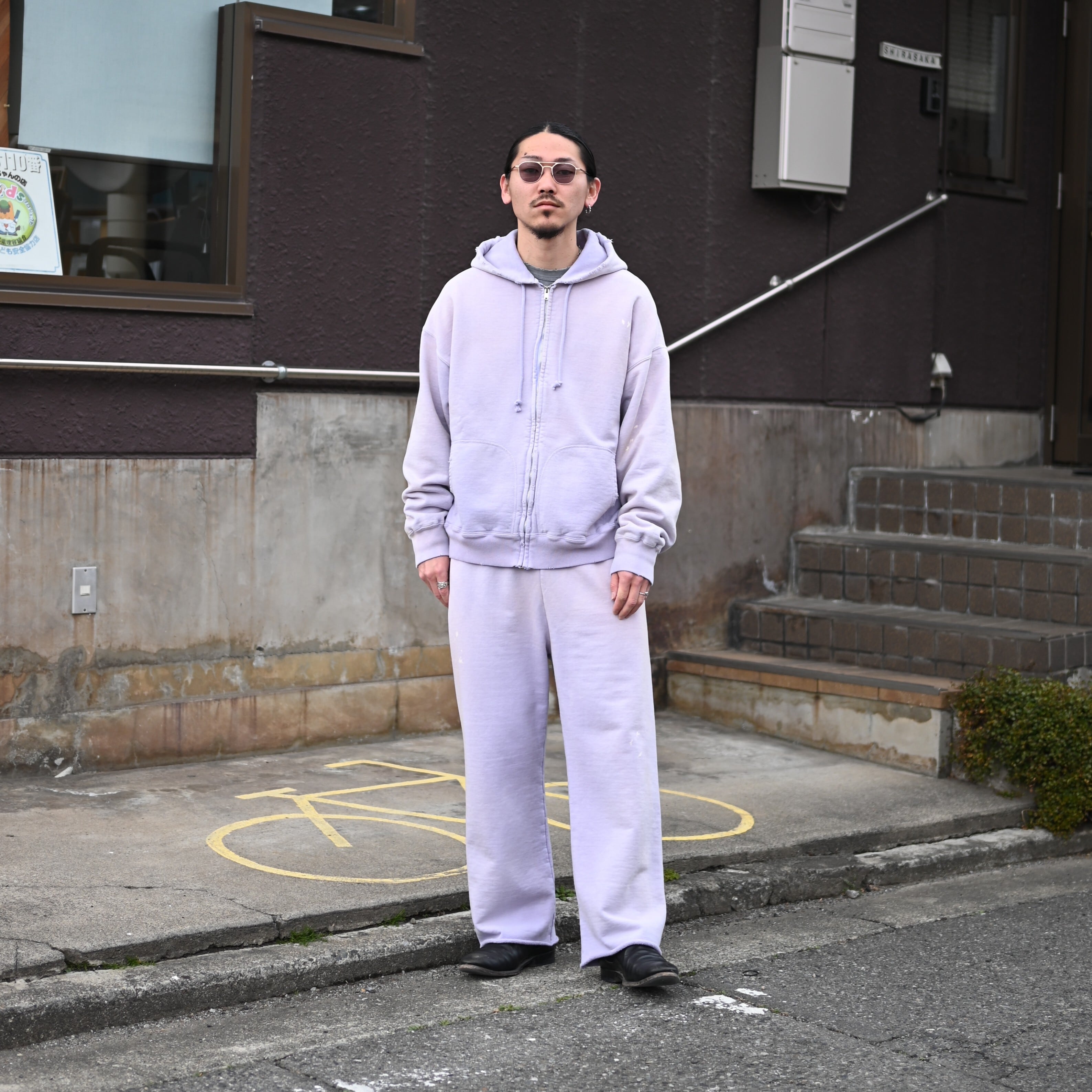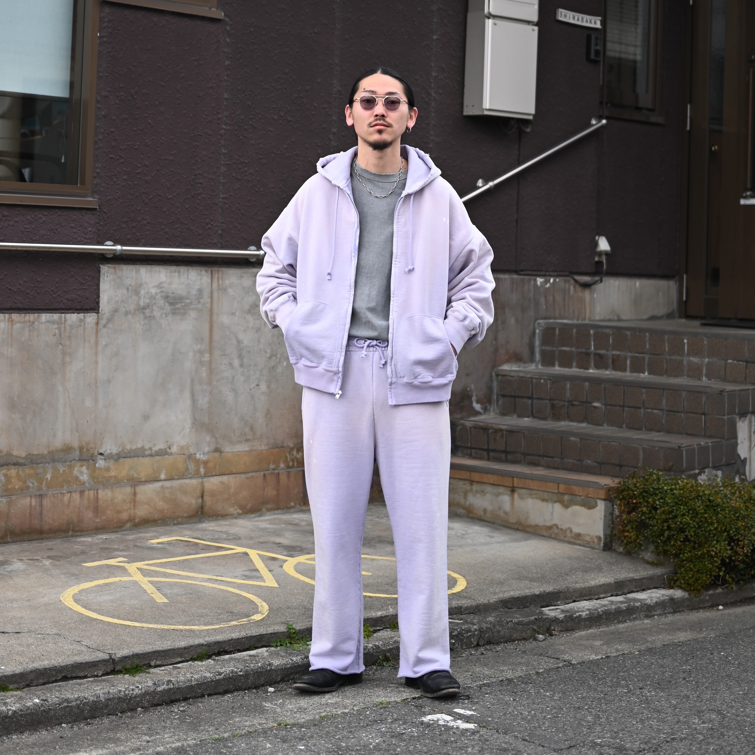 BOWWOW(バウワウ)から今週末発売となる、1990年代スウェットの中でも評価の高いラベンダーカラーのスウェットセットアップをメインにコーディネート。