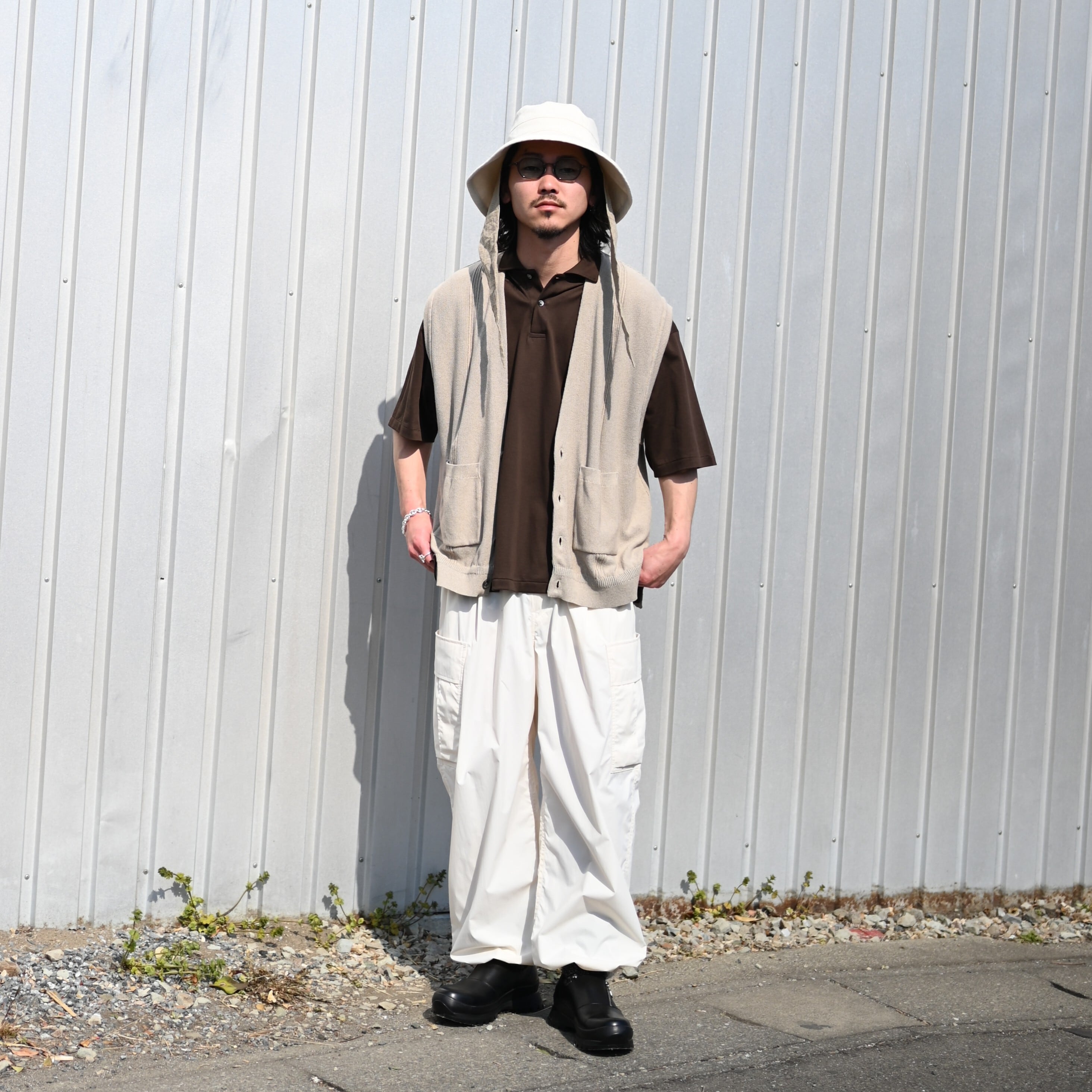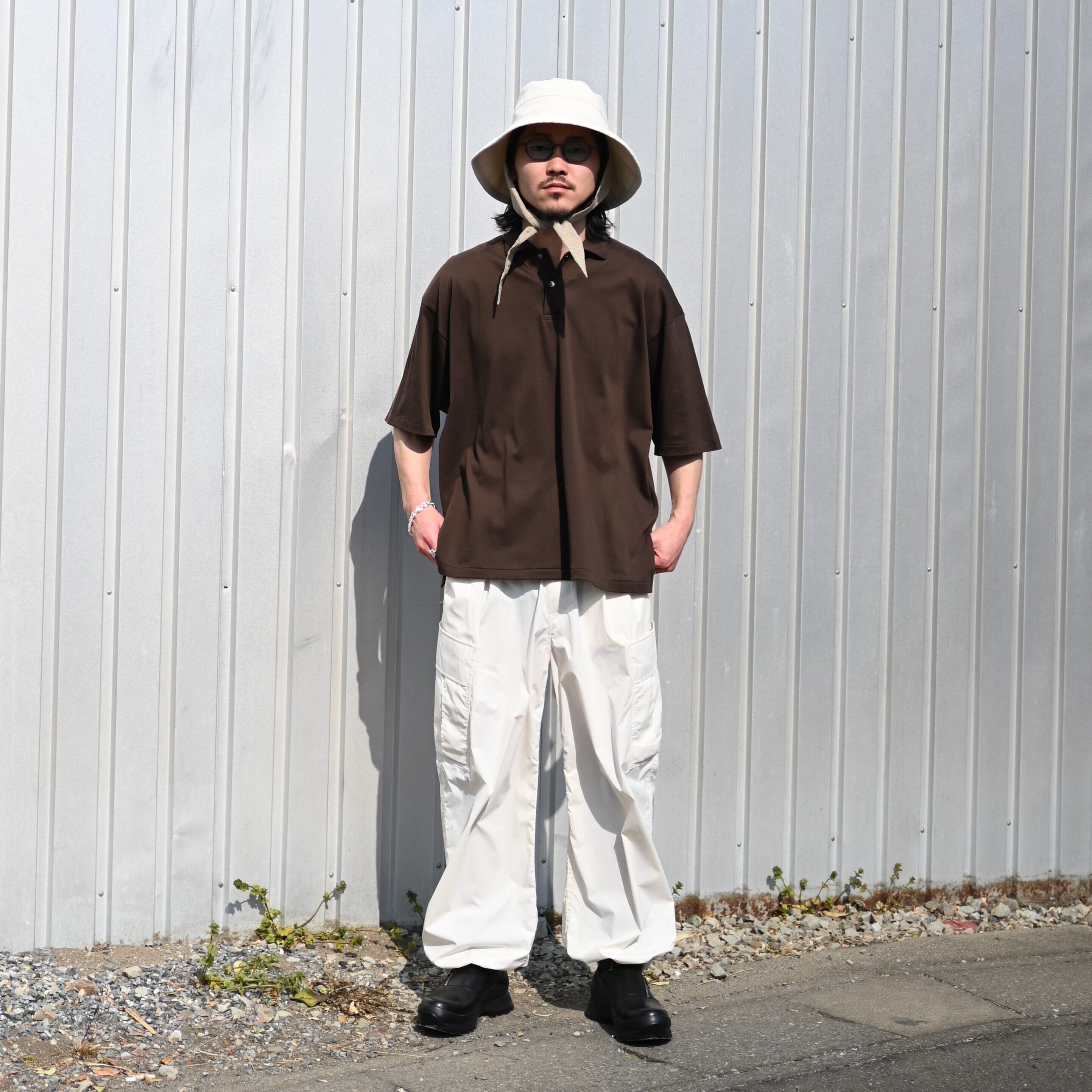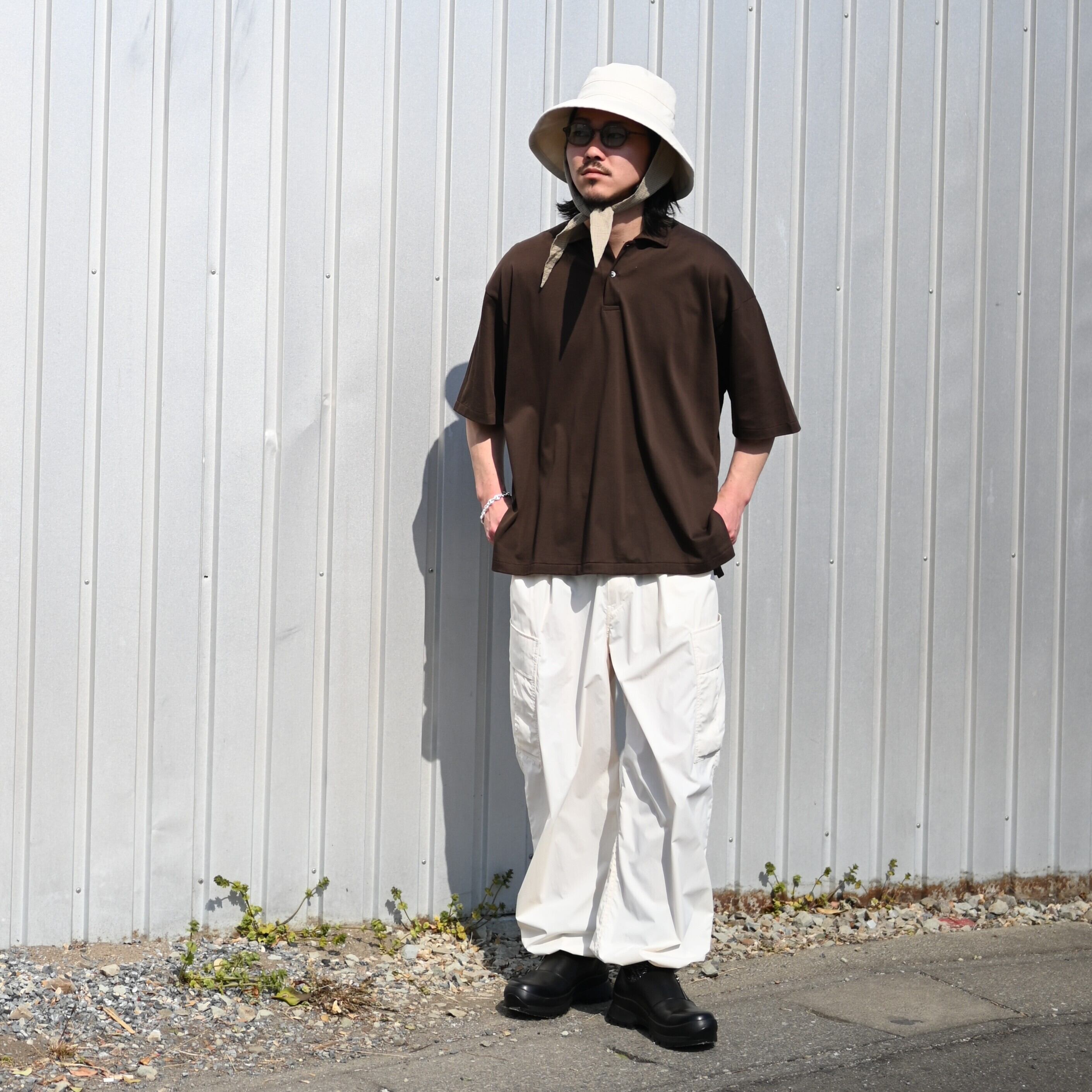 For the inner layer, paired with INTERIM’s “HIGH GAUGE SEA ISLAND PIQUE HYPER BIG POLO.” The look is relaxed with Product Twelve “P12 Utility Pants,” while the styling is sharpened with foot the coacher “SIDE-ZIP SHOES.”