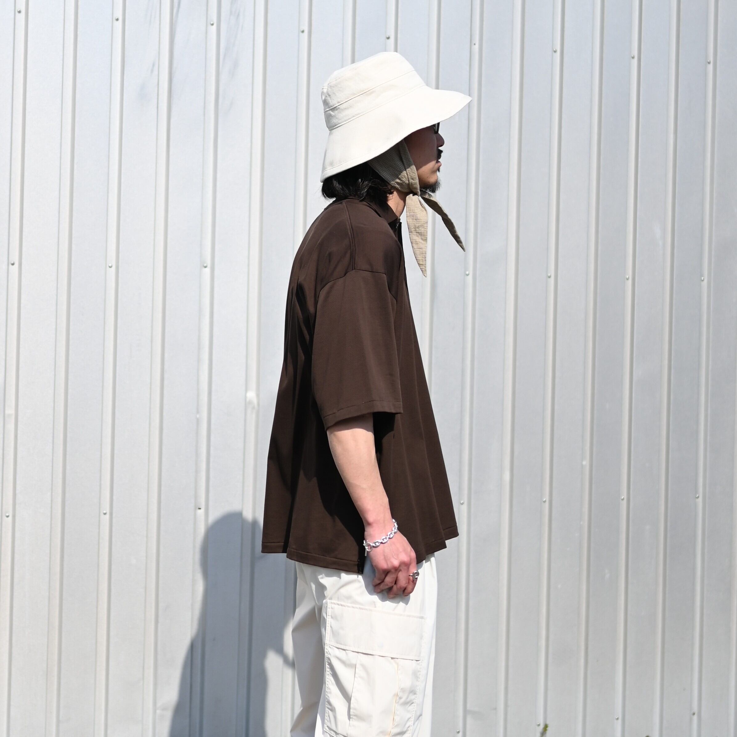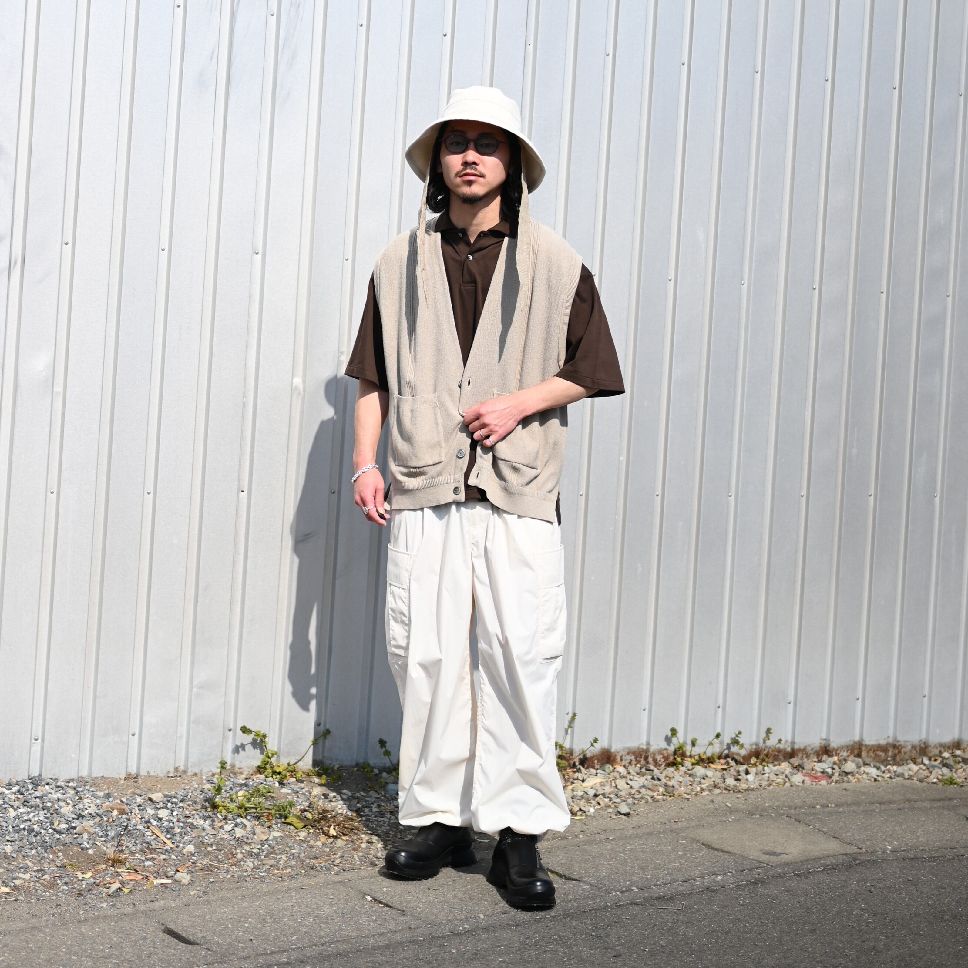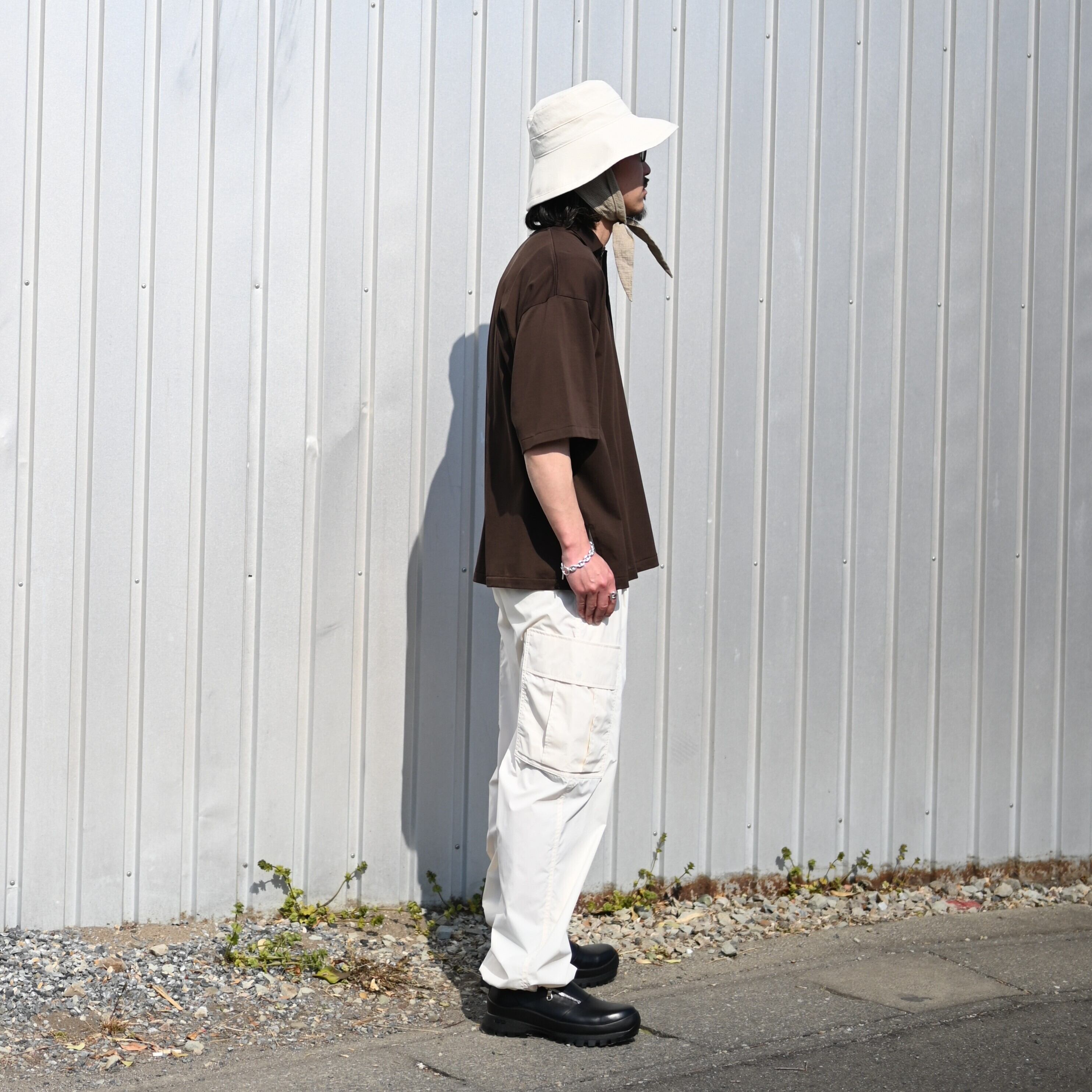 For the inner layer, paired with INTERIM’s “HIGH GAUGE SEA ISLAND PIQUE HYPER BIG POLO.” The look is relaxed with Product Twelve “P12 Utility Pants,” while the styling is sharpened with foot the coacher “SIDE-ZIP SHOES.”
