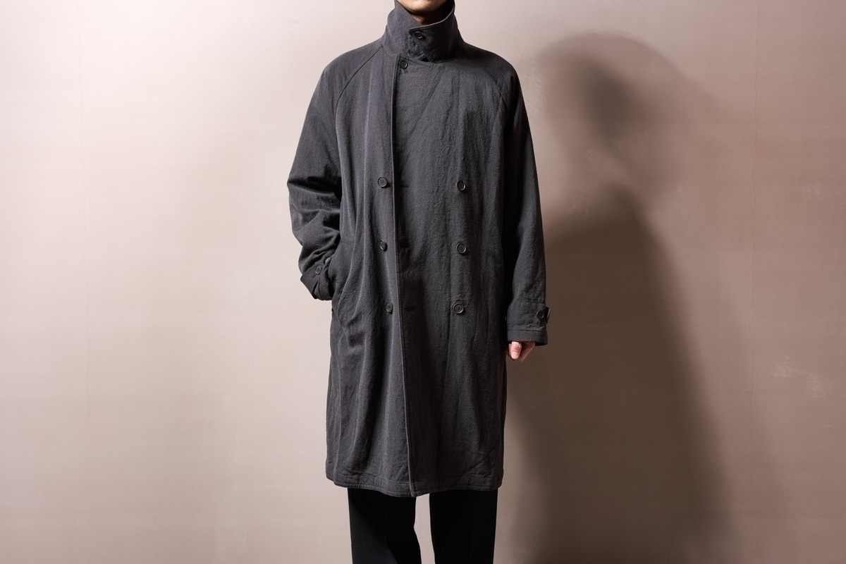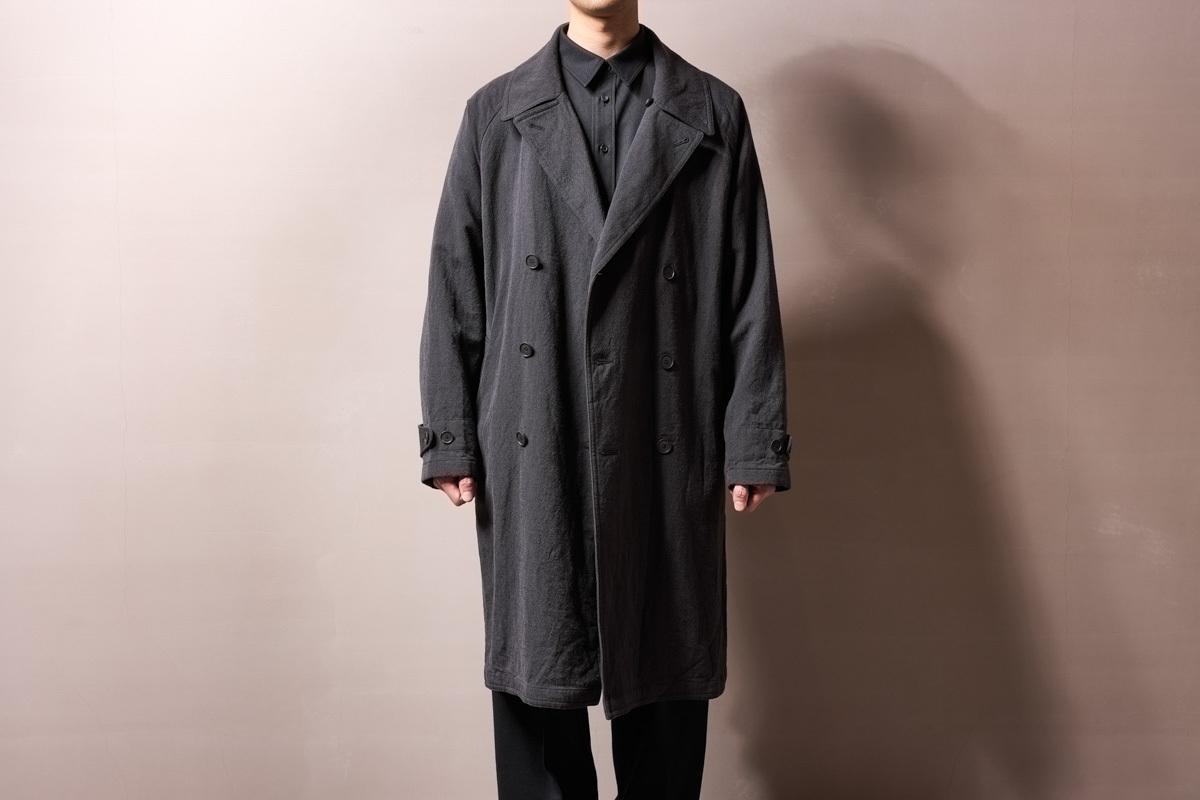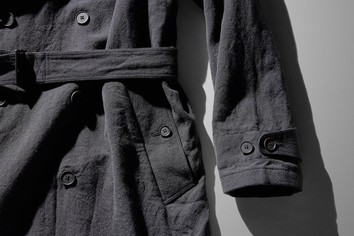 なんとなーくウォッシュドウールリネンツイル生地が気分で、雰囲気抜群のロング丈のトレンチコートに惹かれました。
