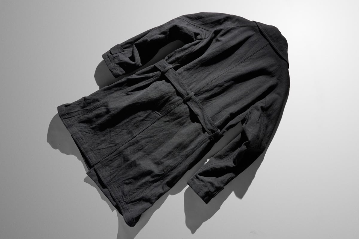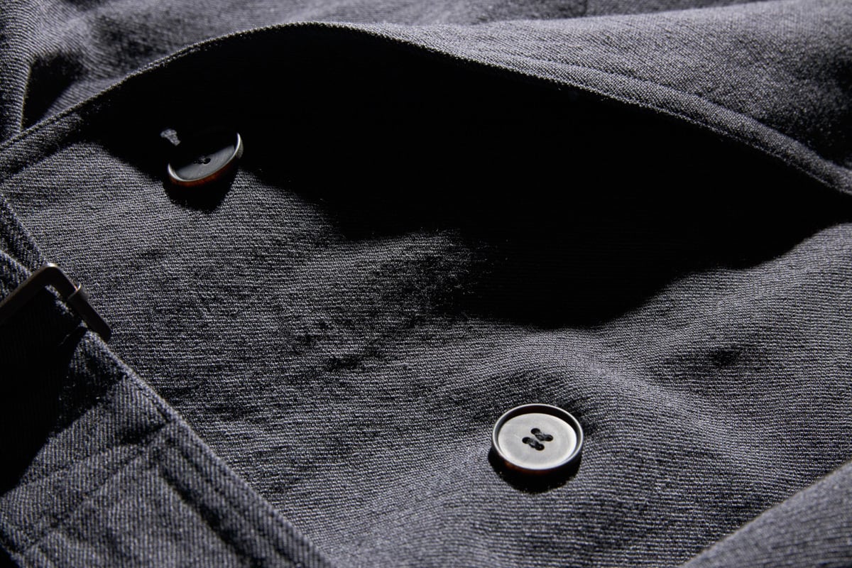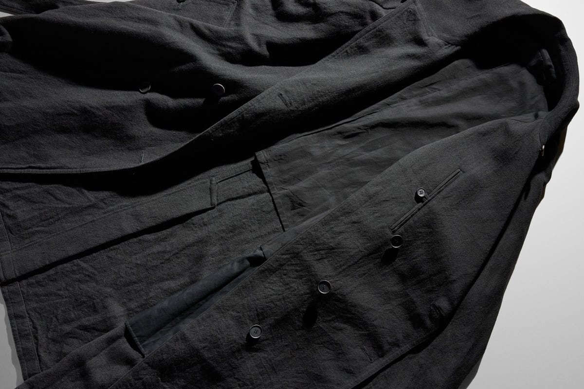 While it appears casual at first glance, closer inspection reveals Yamauchi’s signature craftsmanship, such as stitching that seems to bite into the fabric and sharply defined tailoring details