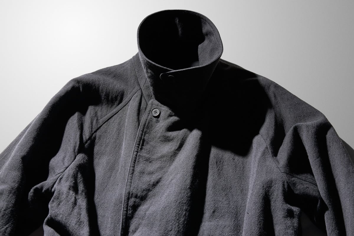 ・一見するとカジュアルなコートも、細部に目を凝らすと山内特有の一針一針生地に食い込むように走るステッチや、エッジの効いた仕立てでブランドらしさを