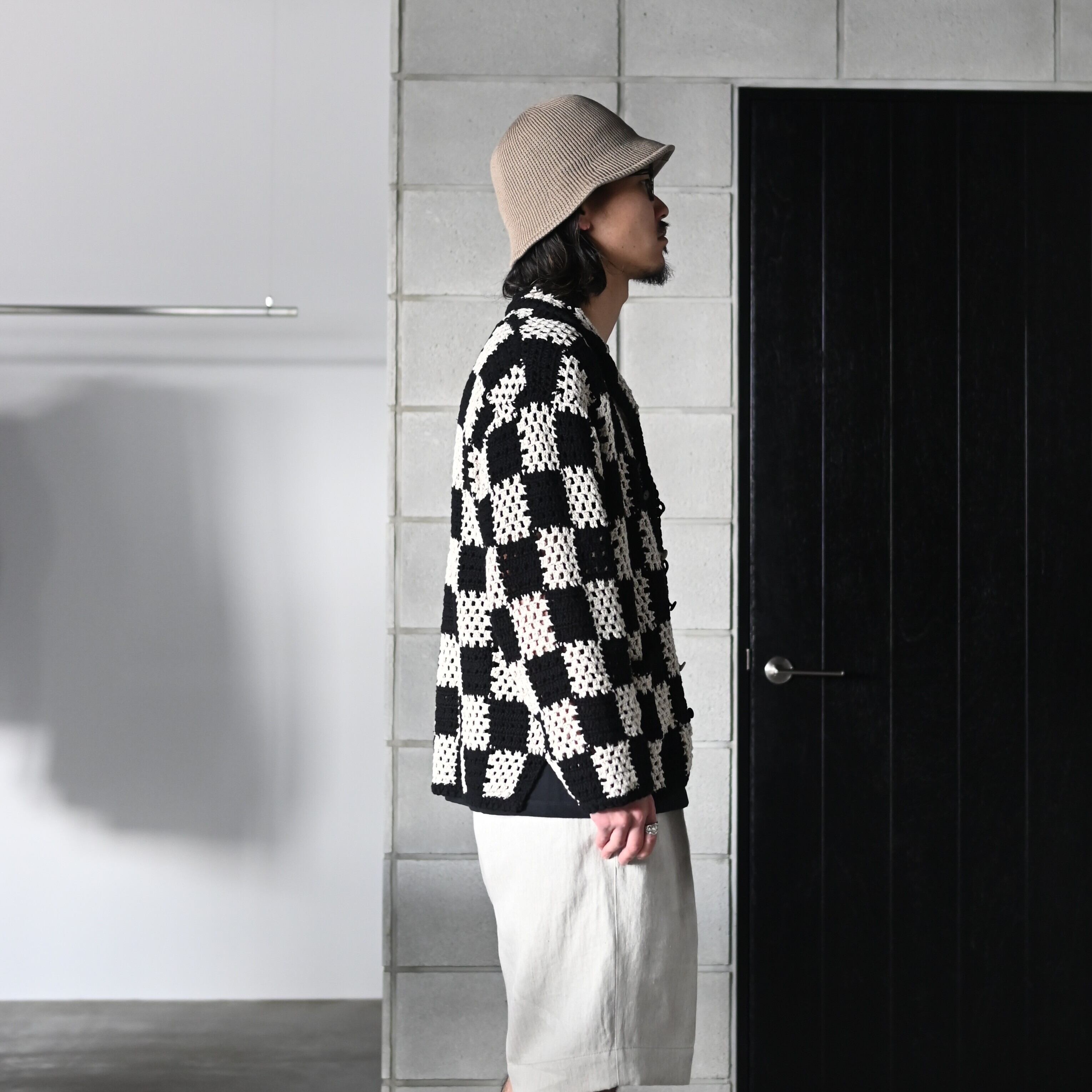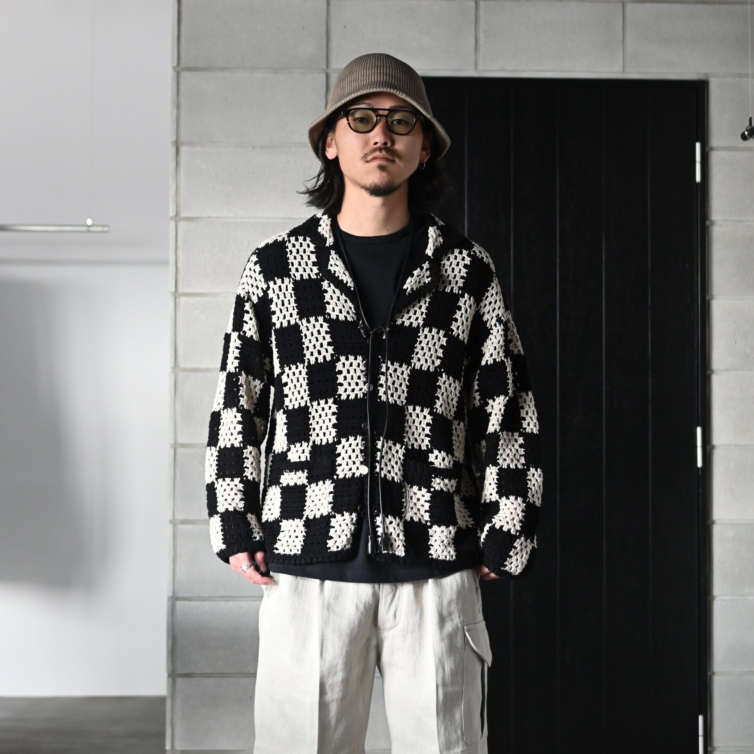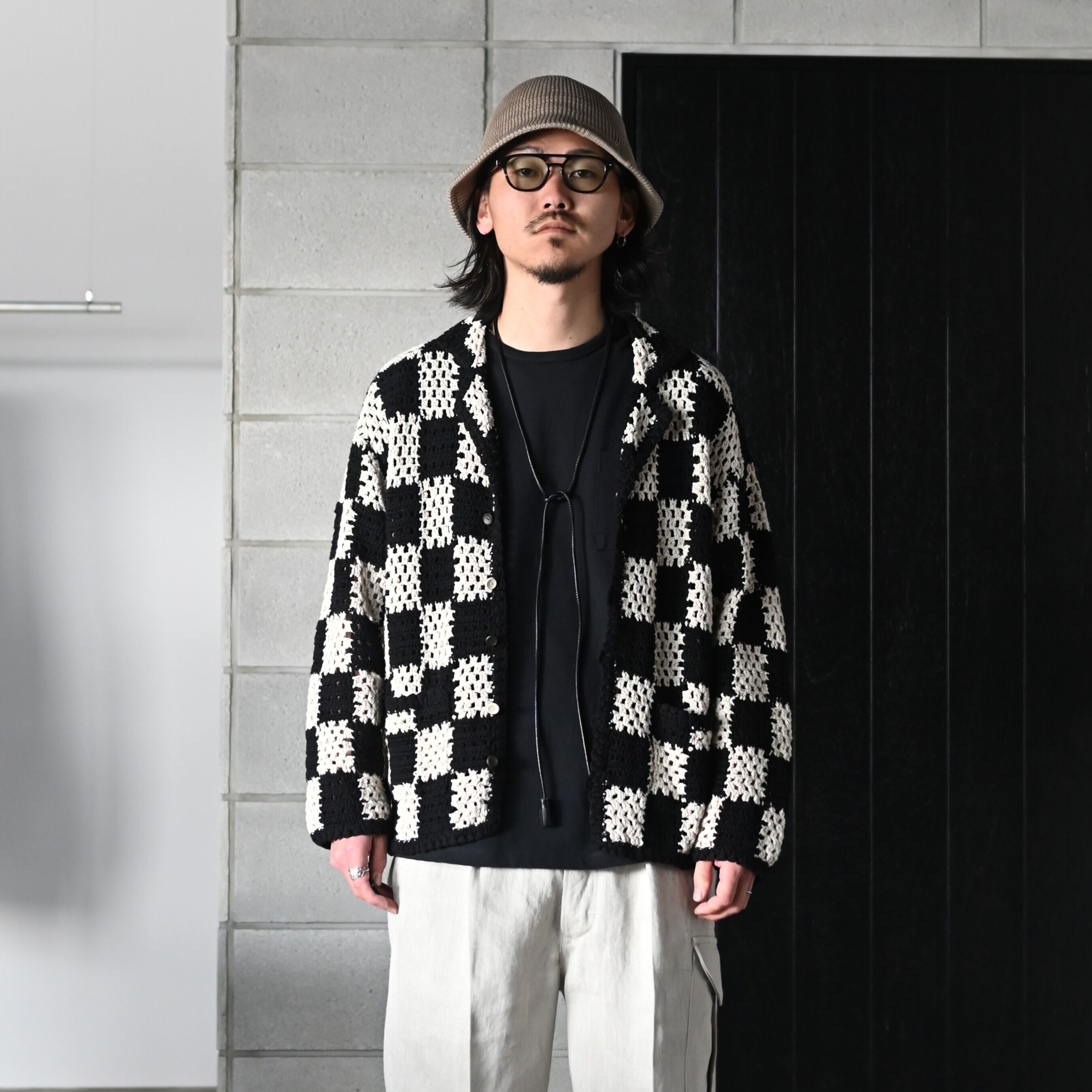 BUTTON FRONT SAILOR JACKET、HAND CROCHET HAVANA SHIRTS (Long-sleeve)、TUBE TEE (Crew-Neck)を合わせた、全身OLDJOEのコーディネートです。