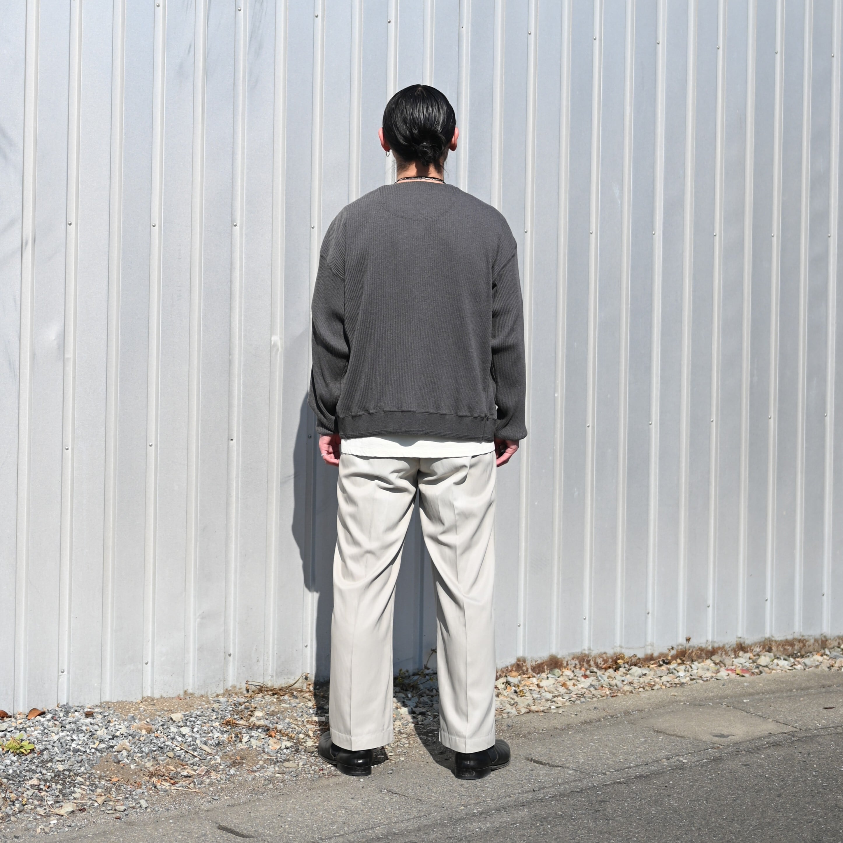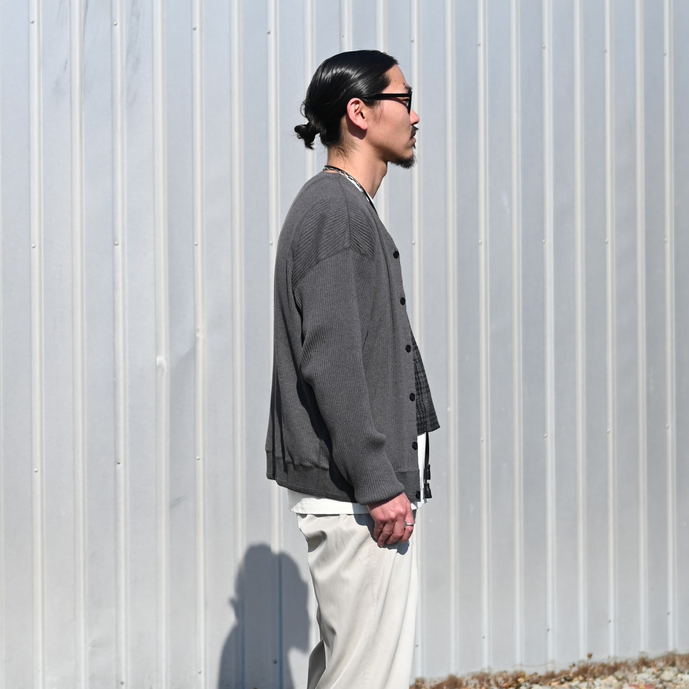 このカーディガンに触れた時、OLDJOEでしかできないコットンヤク混紡のリブ編み生地にとても驚かされました。