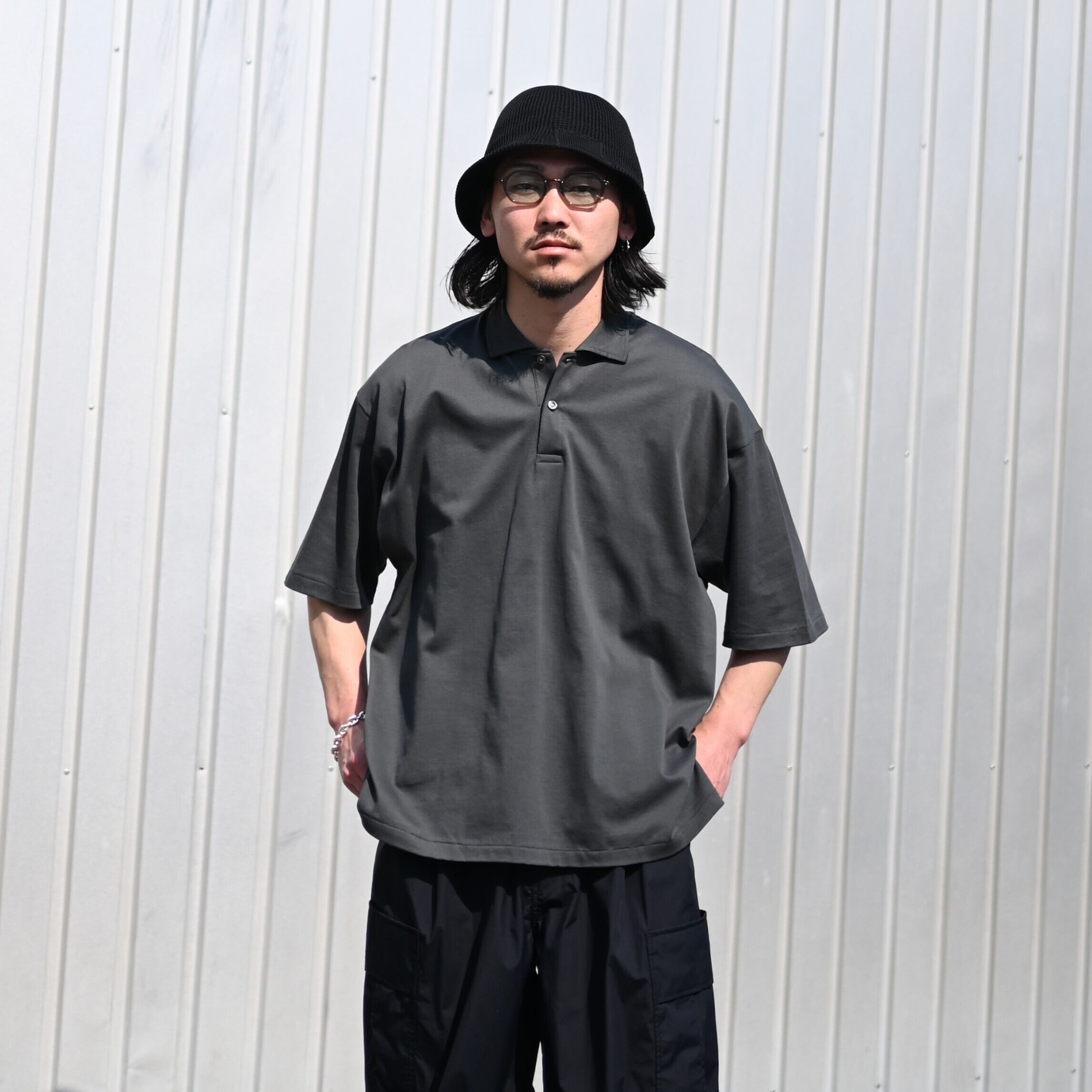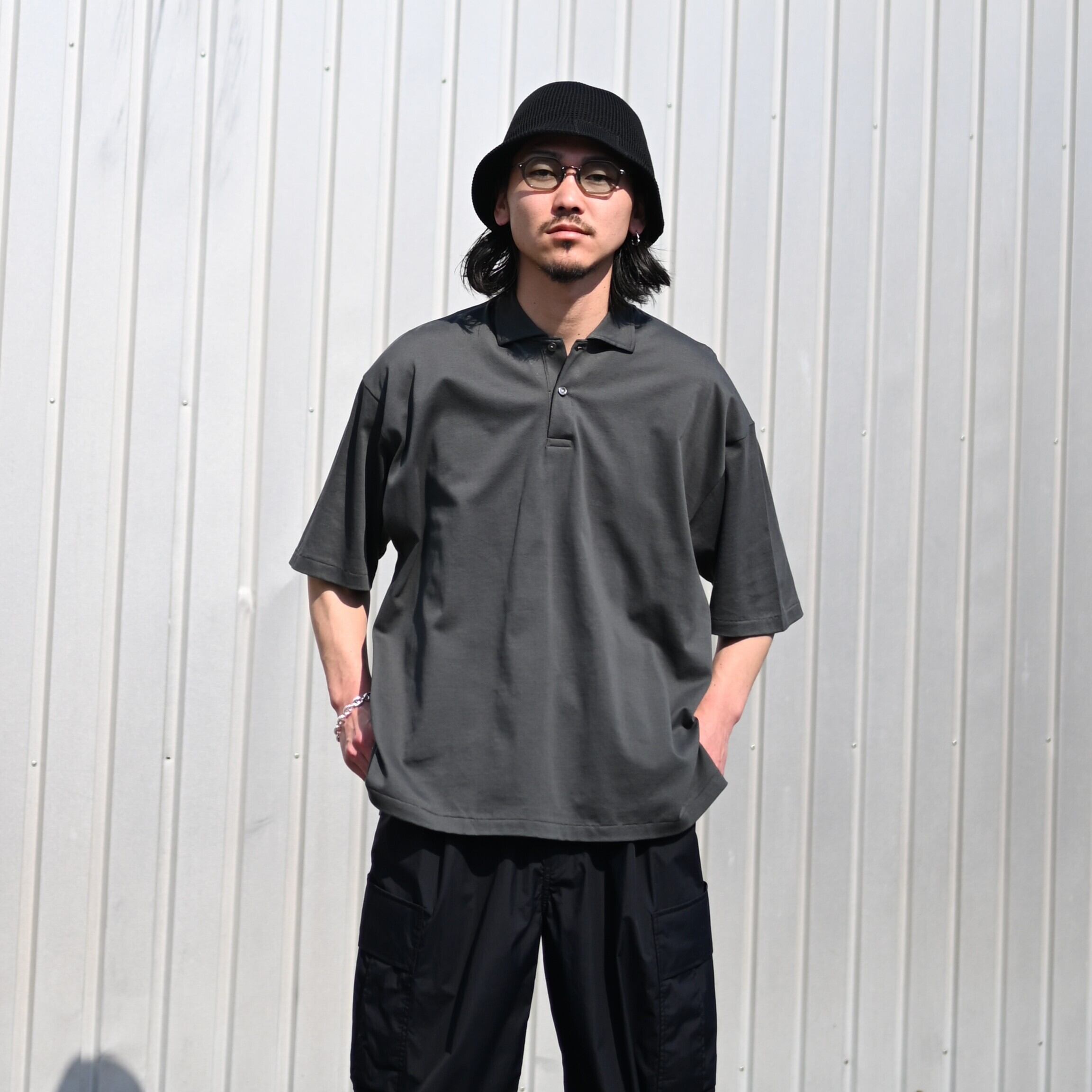 今回インナーにはインテリムのHIGH GAUGE SEA ISLAND PIQUE HYPER BIG POLO SHIRTを合わせ、プロダクトトゥウェルブの P12 Utility Pantsを履いてアーバンライクな印象に。
