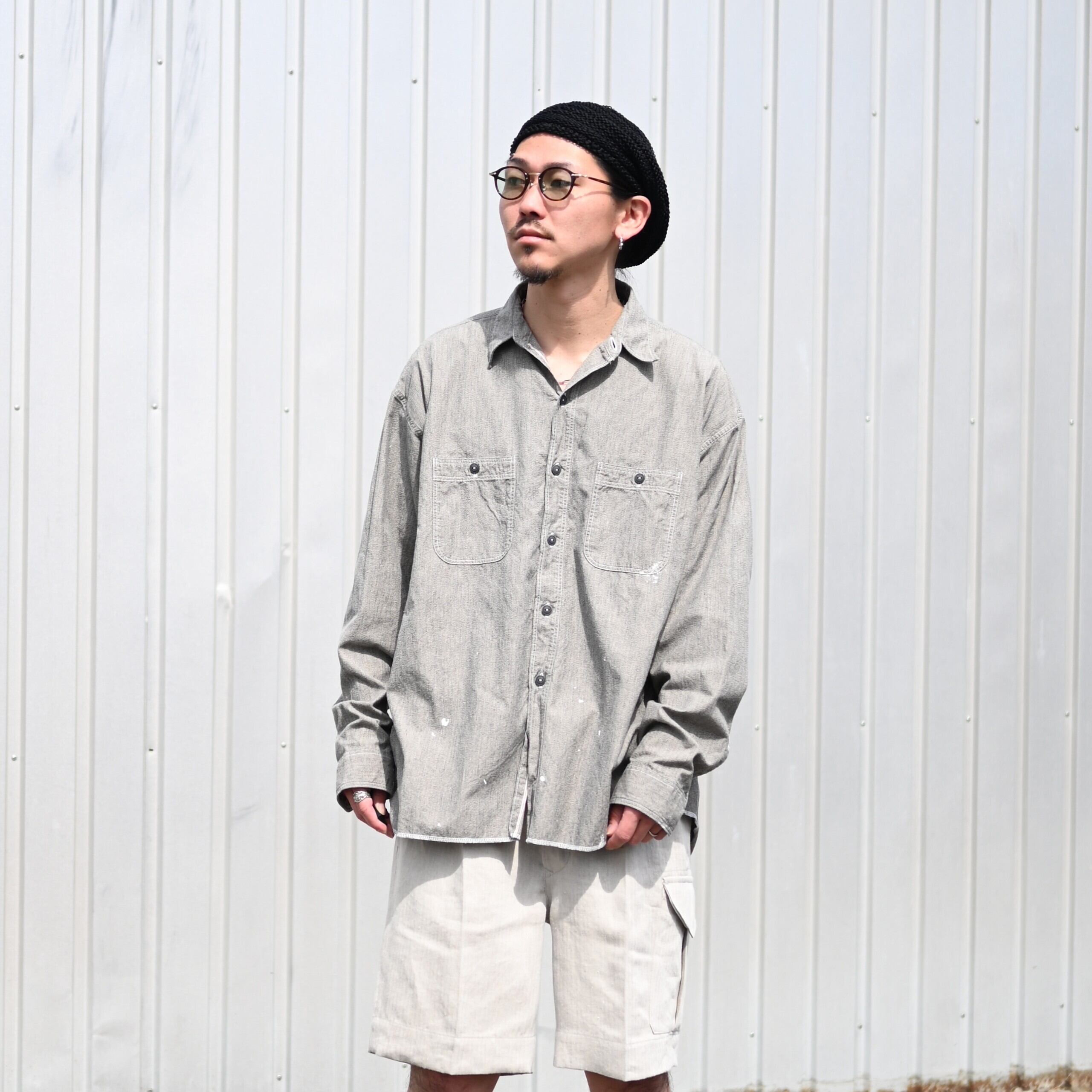 INTERIM / MILK PAINT VINTAGE WASH BLACK SHUTTLE CHAMBRAY HYPER BIG US NAVY WORK SHIRT TYPE2