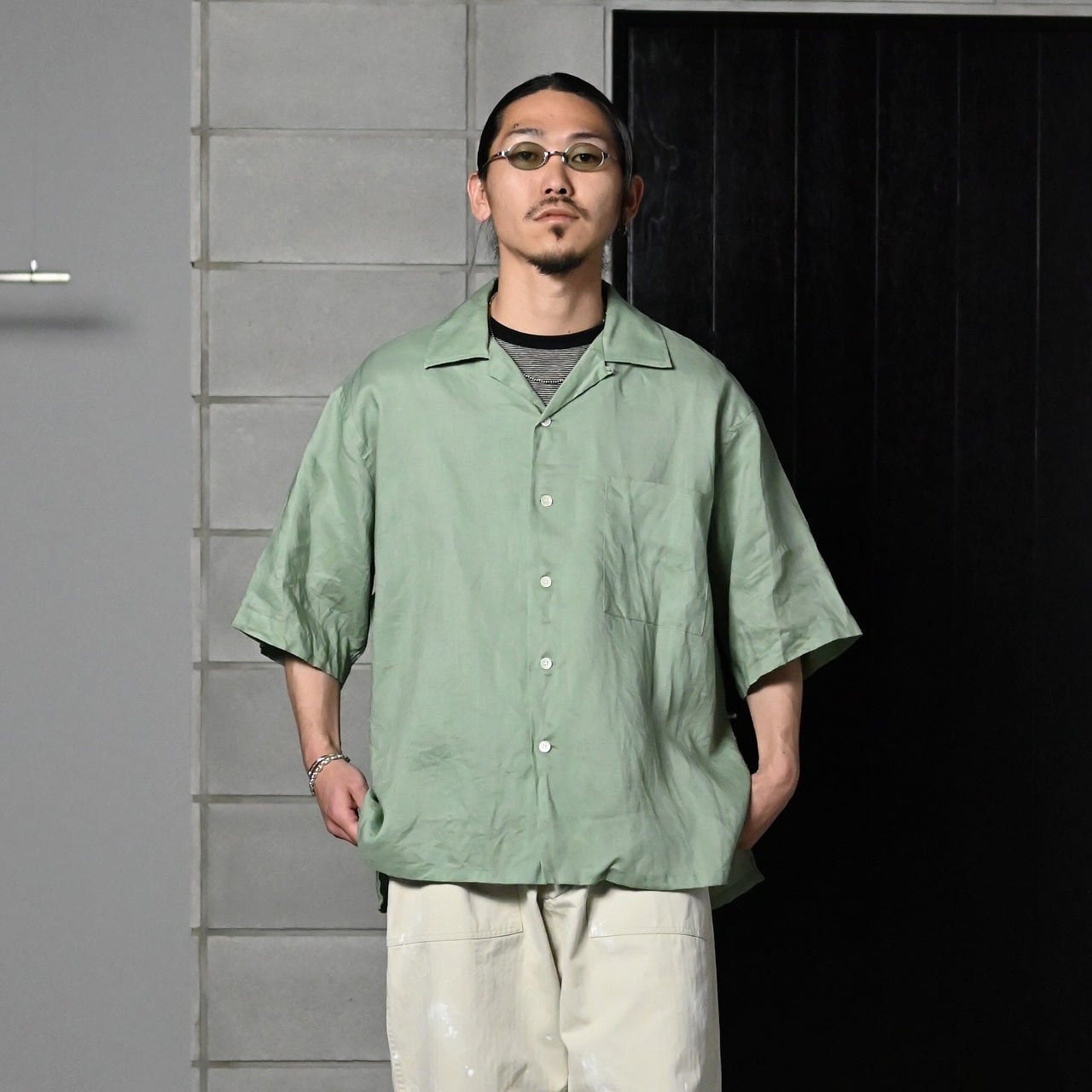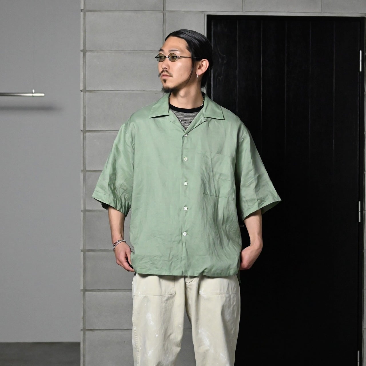 INTERIM / RAMIE SHEER LAWN HYPER BIG S/S OPEN COLLAR SHIRT