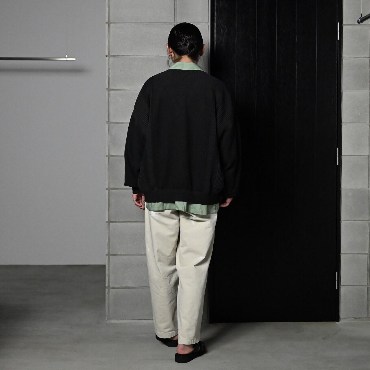 I had been looking forward to these herringbone baker pants from INTÉRIM this season, featuring their signature milk wash paint finish. I’m wearing the ivory colorway here, paired with a mint-colored short-sleeve shirt made from 100% ramie, which adds a refreshing seasonal touch.