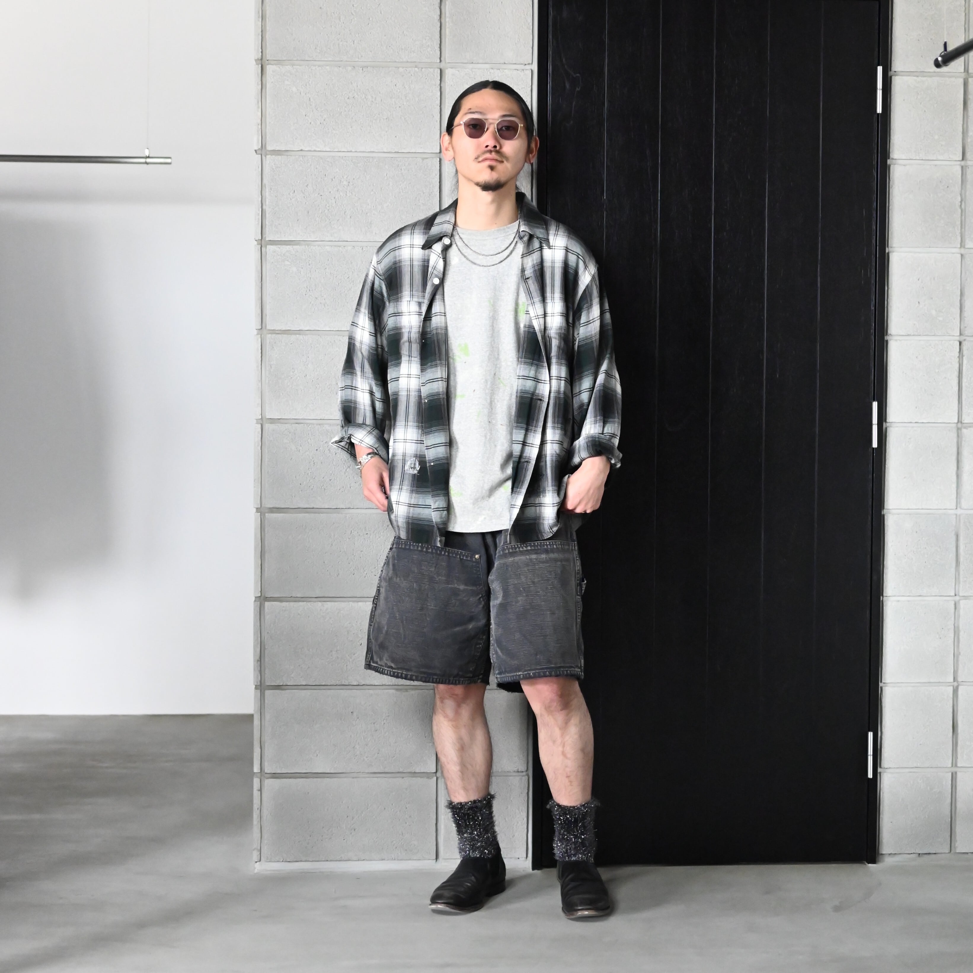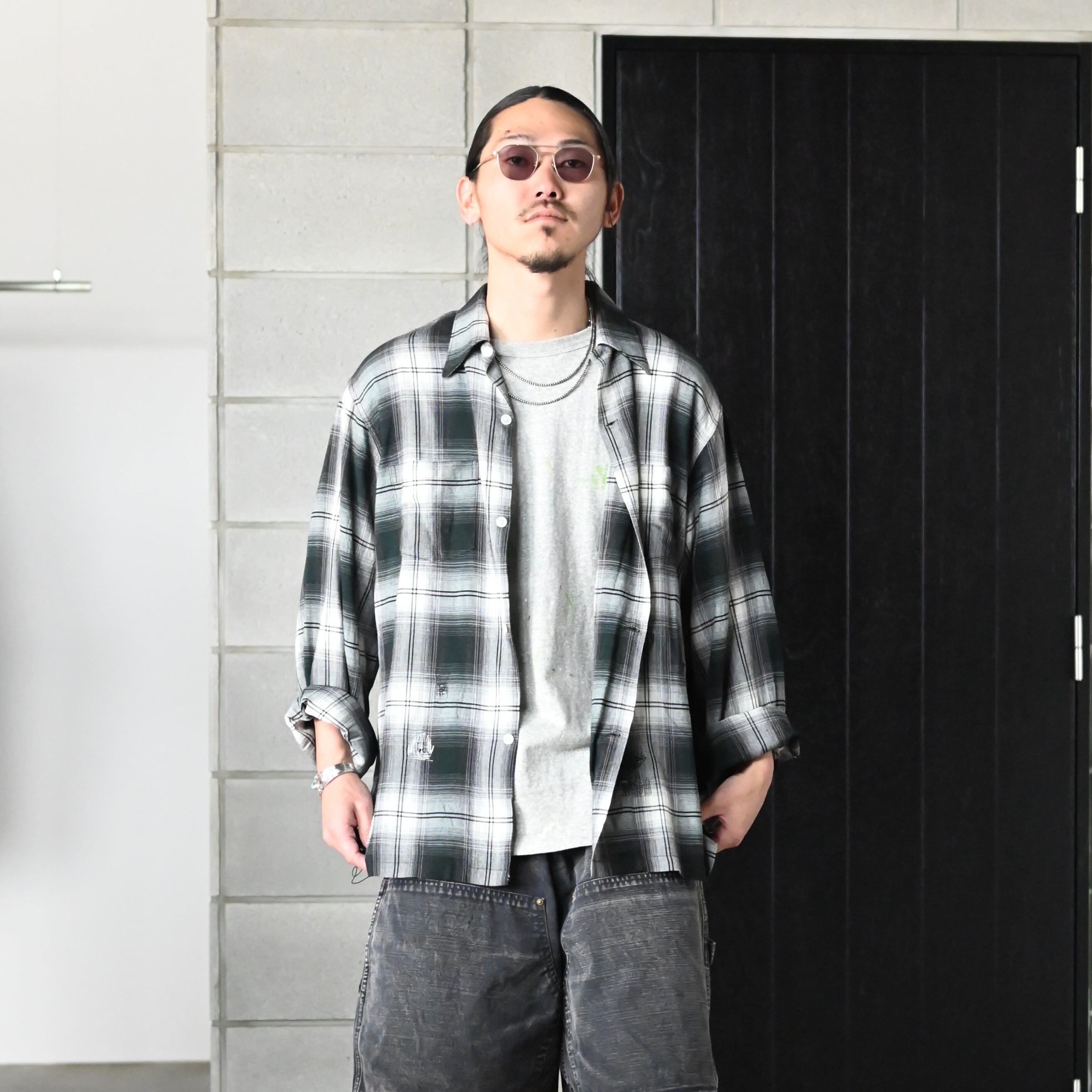 BOWWOW / REMADE RAYON PLAID SHIRT AGED