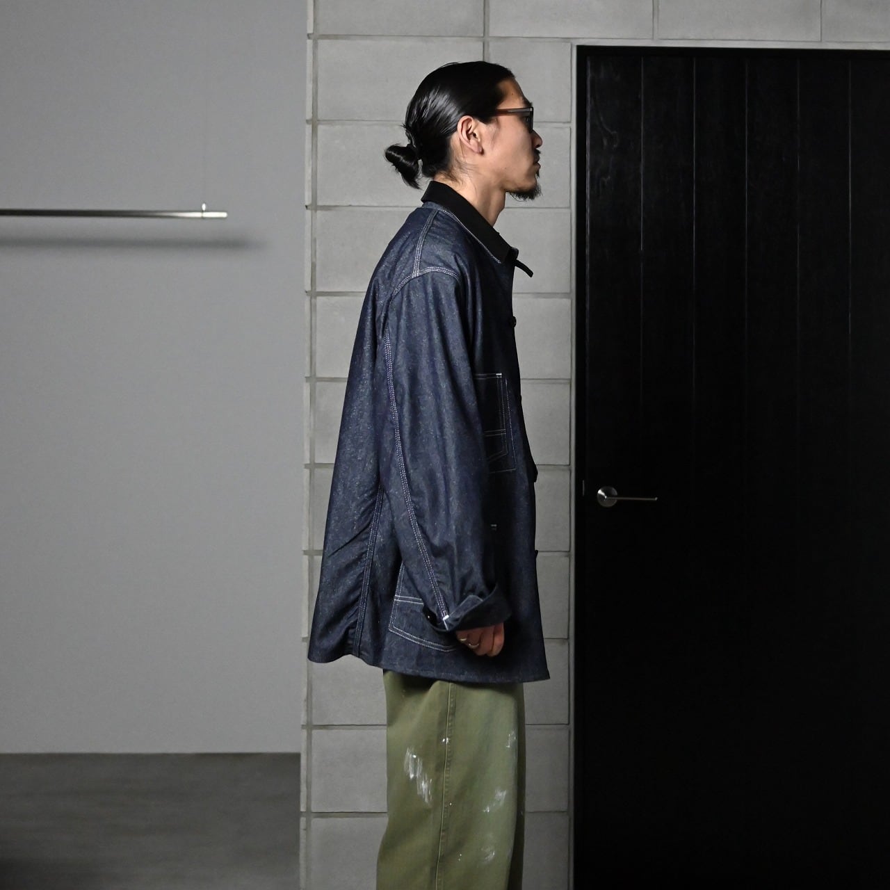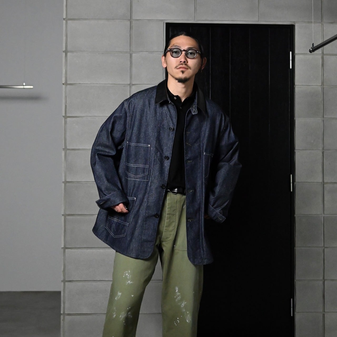 INTERIM / GOAT LEATHER COLLAR SILK NOIL DENIM 1st HERCULES COVERALL