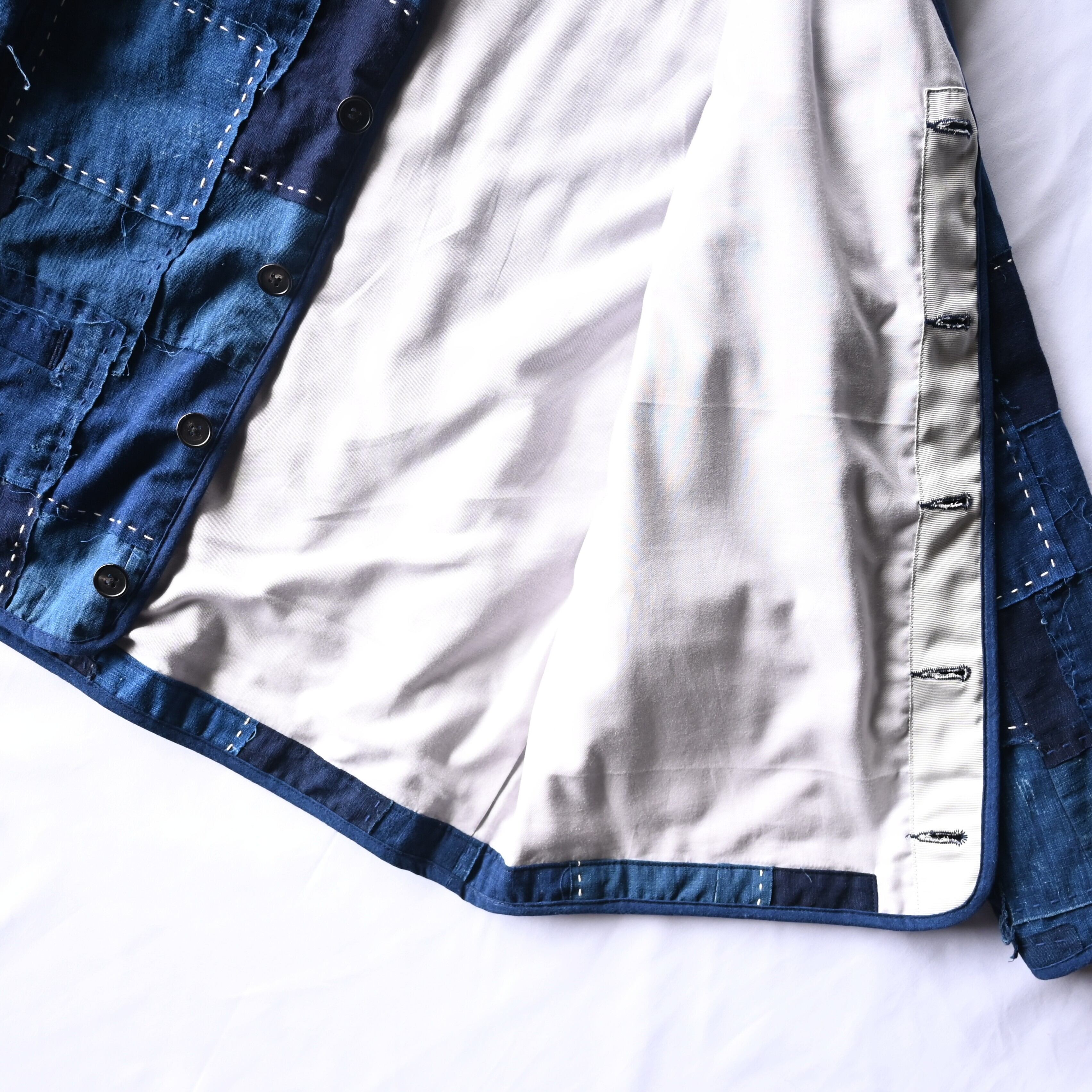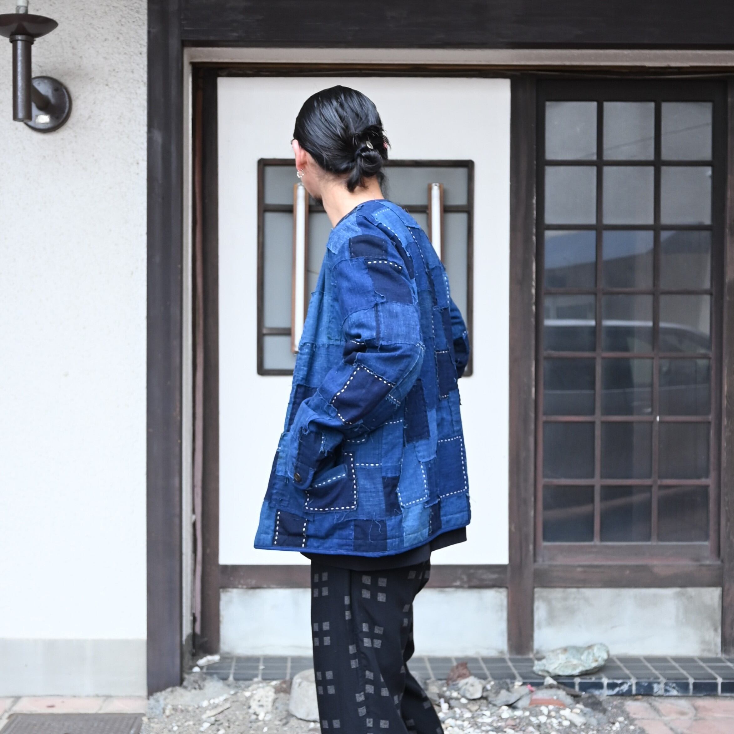 A patchwork jacket crafted from offcuts produced in the process of making signature Boro jackets