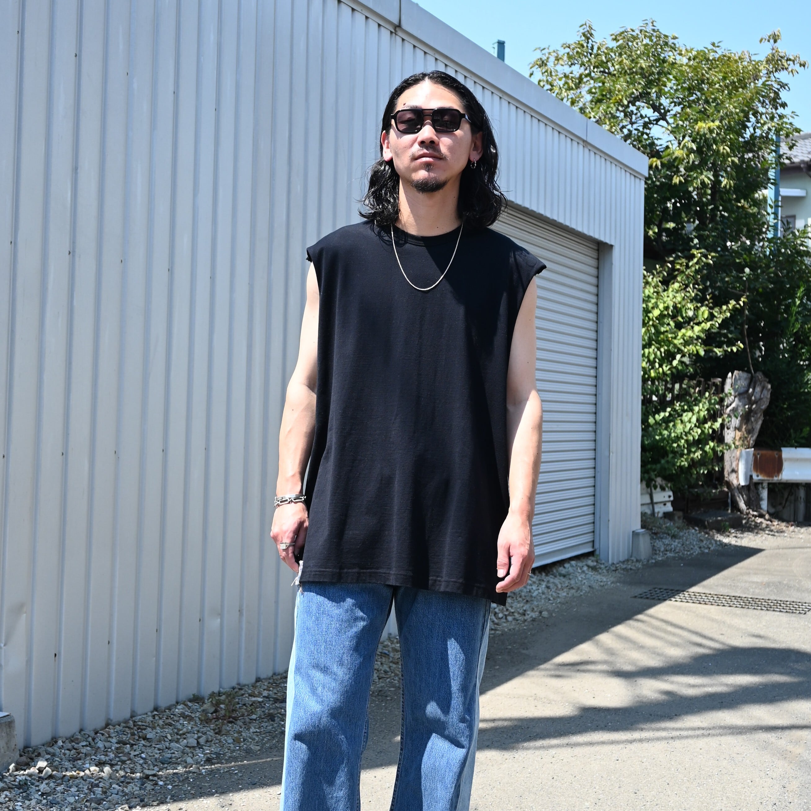 ・名札のように見えるアップサイクルされた襤褸(ボロ)Type2パッチ付きのノースリーブ