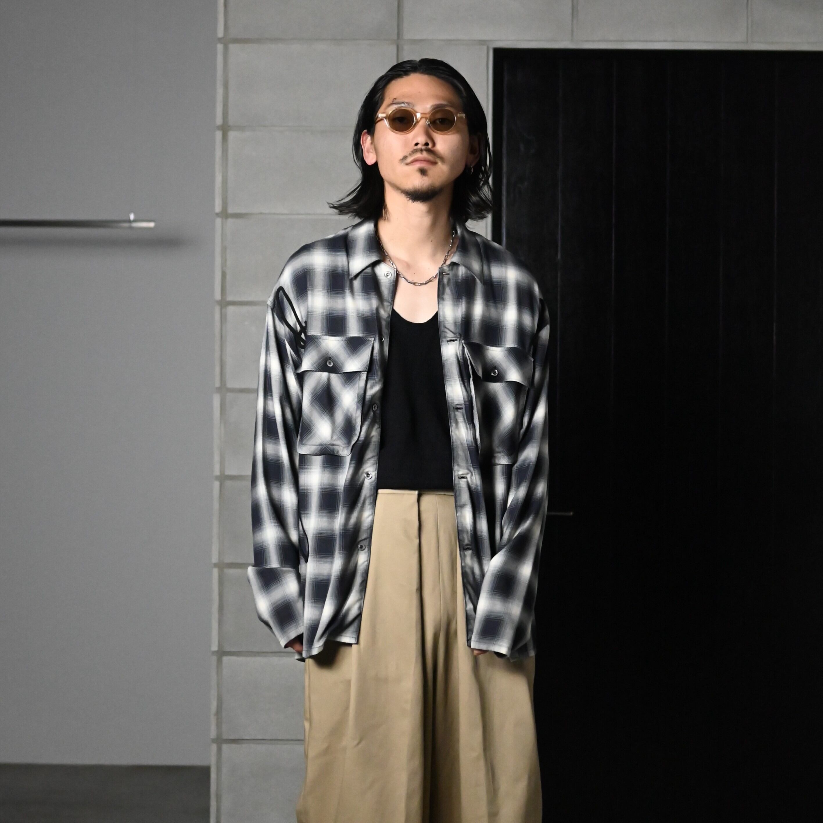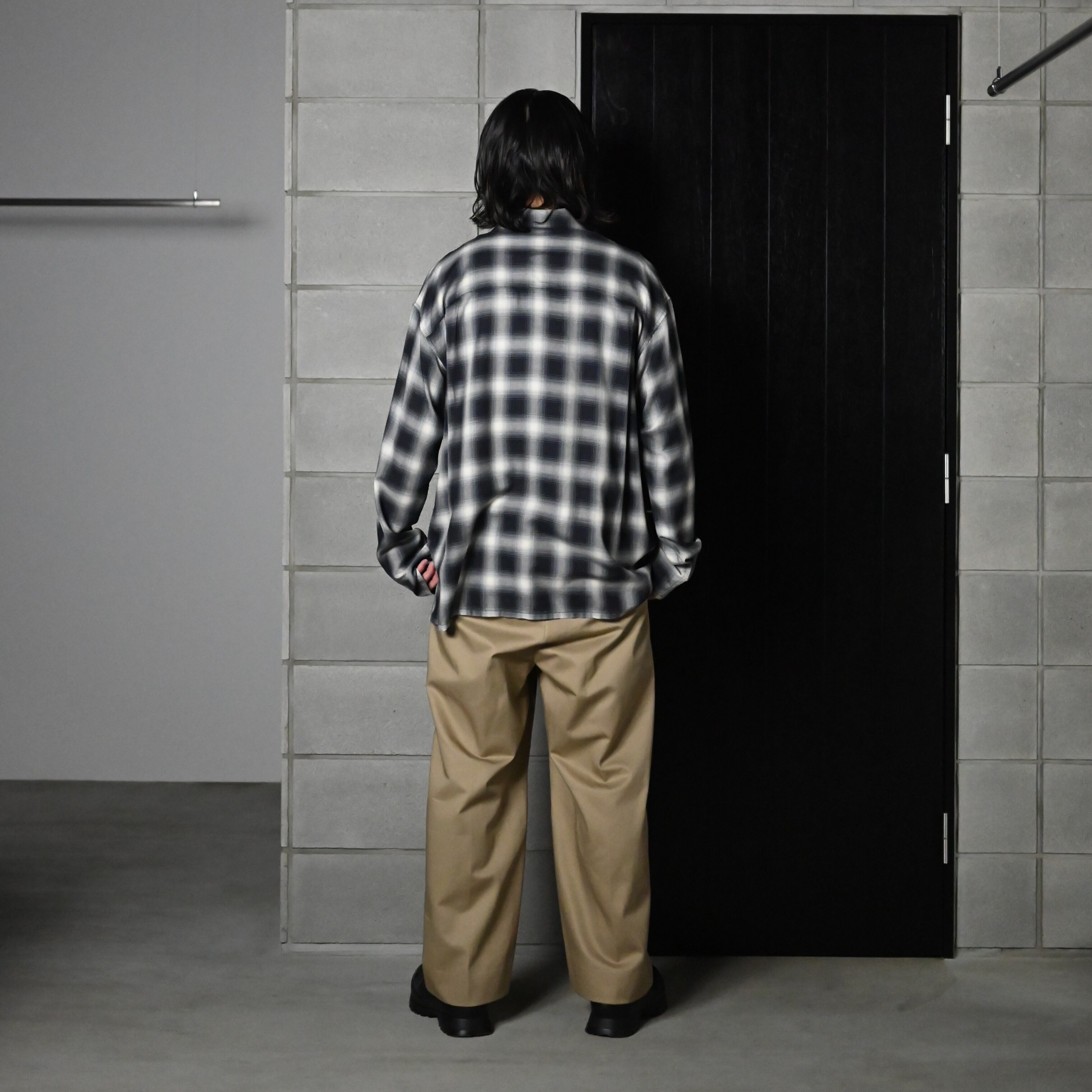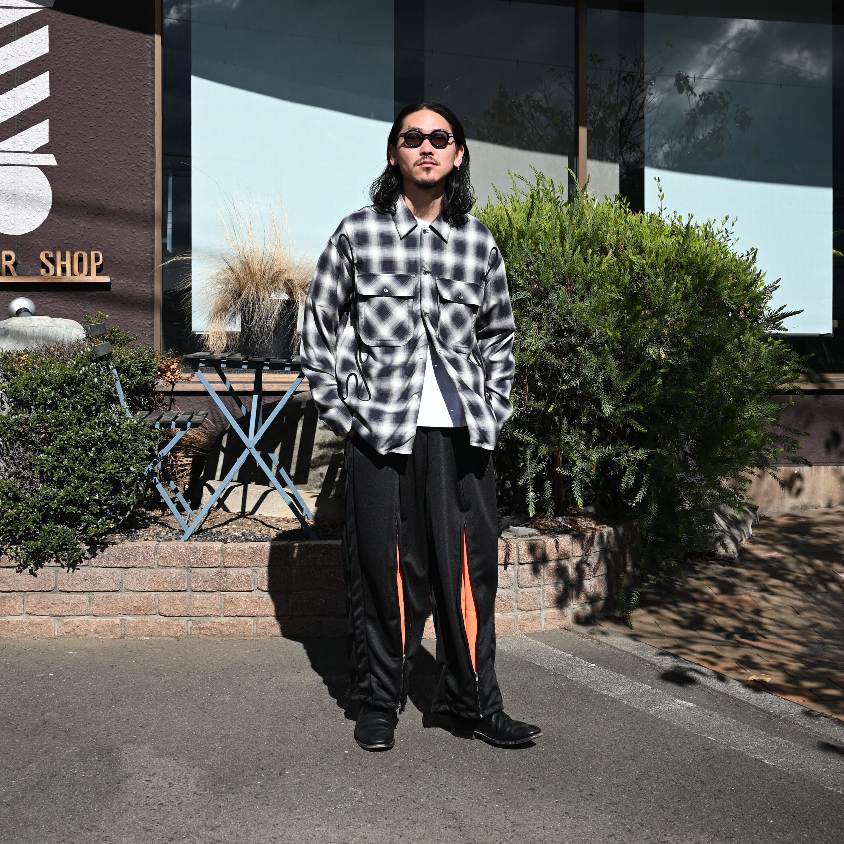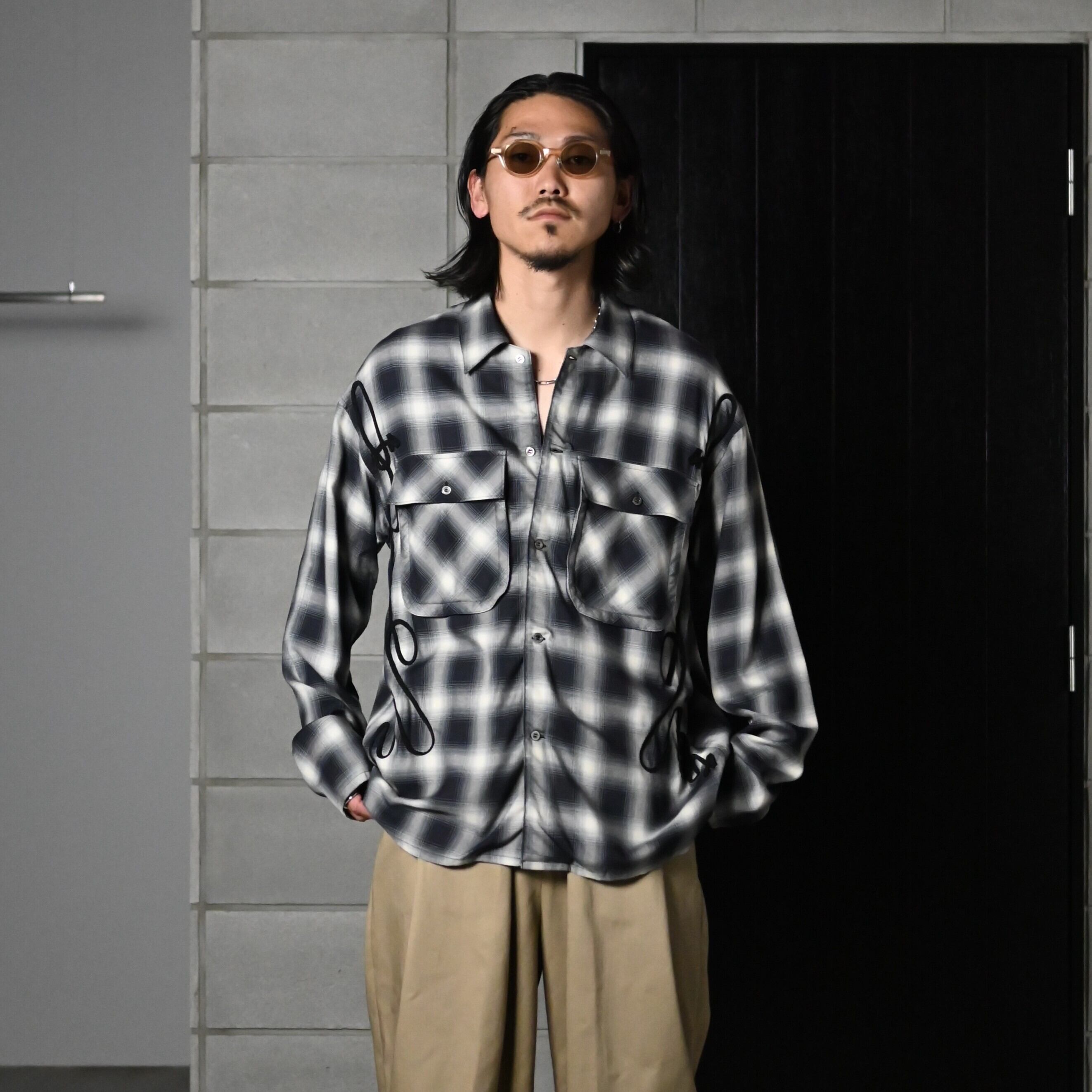 両脇の後付けパイピングが印象的なレーヨンチェックシャツ