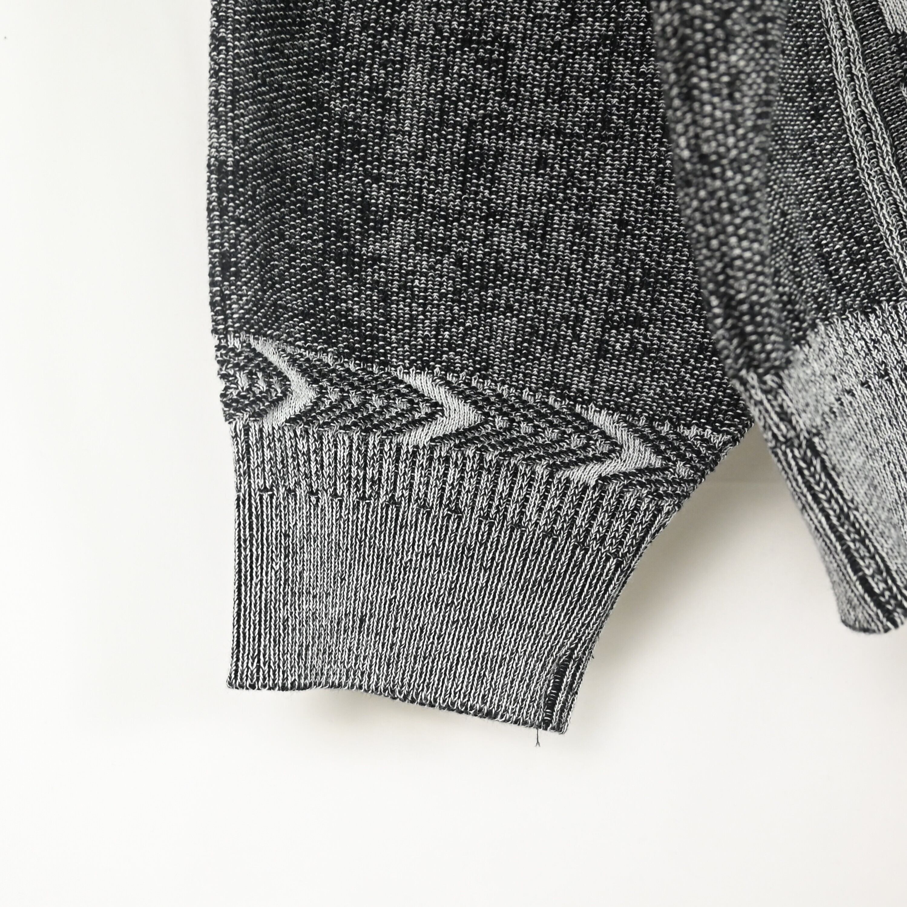 ・プレーティング編みと言われる表目側と裏目側で異なる糸を編む技法を使用し、表と裏で糸の色を変えて、