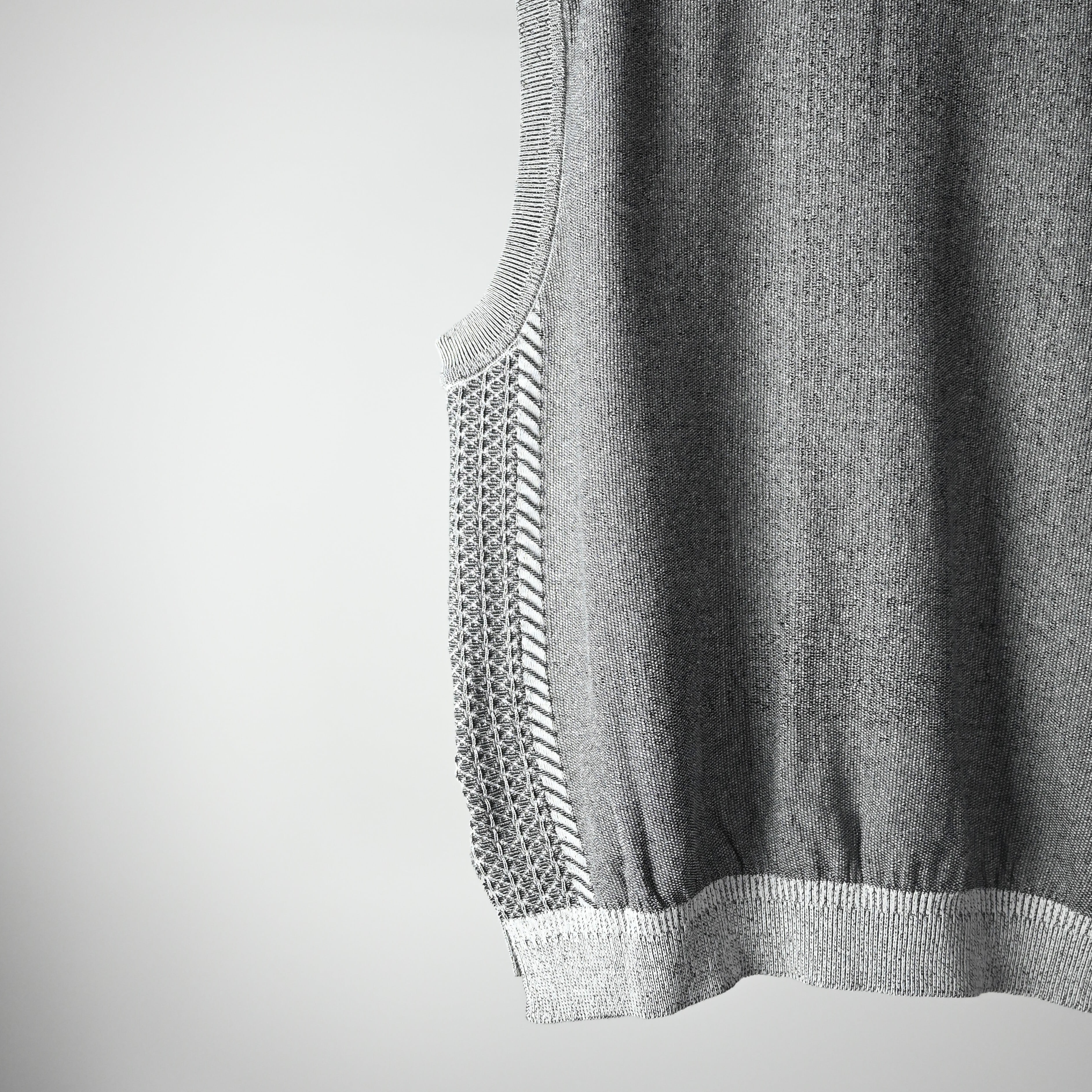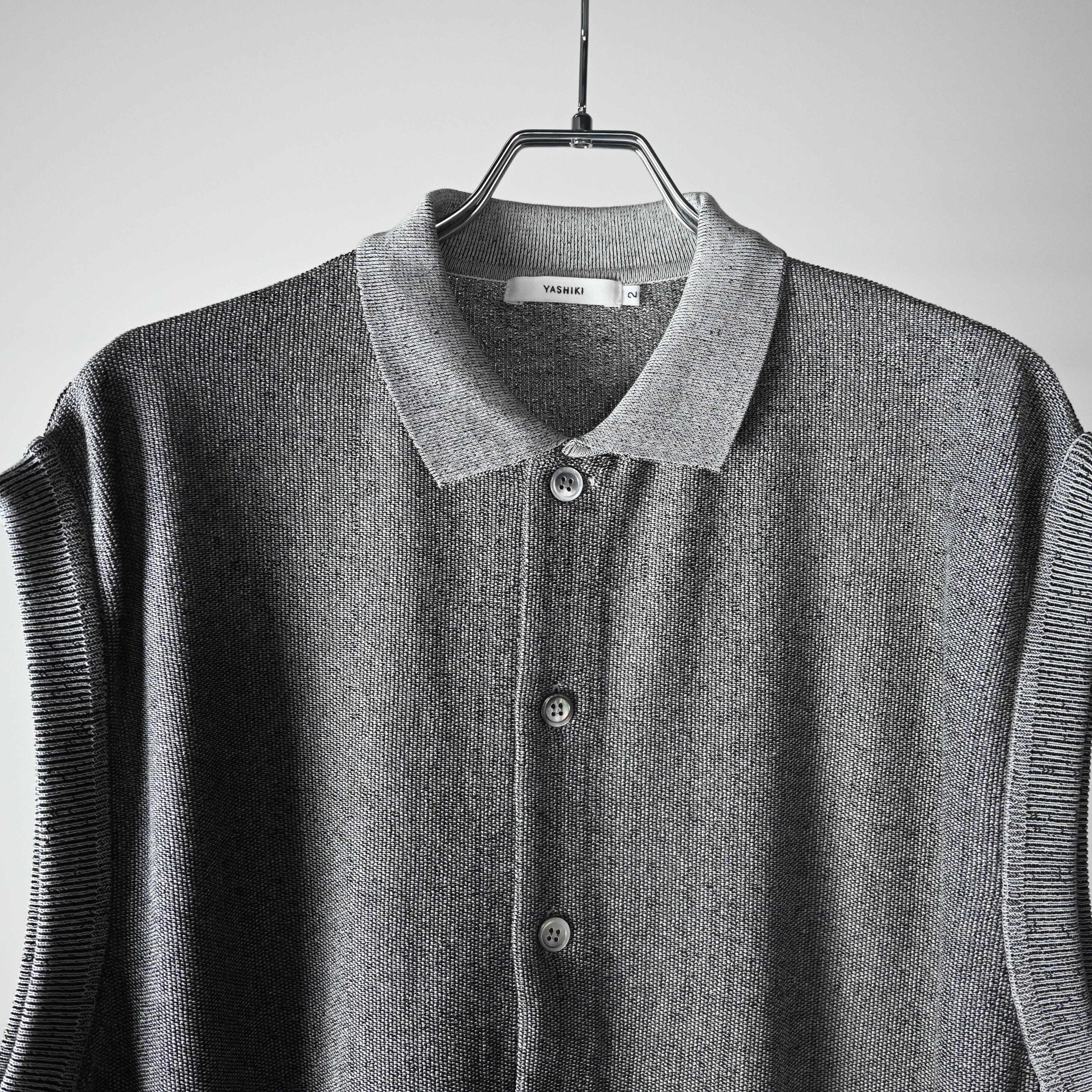 A new silhouette from YASHIKI: a collared cotton knit vest.