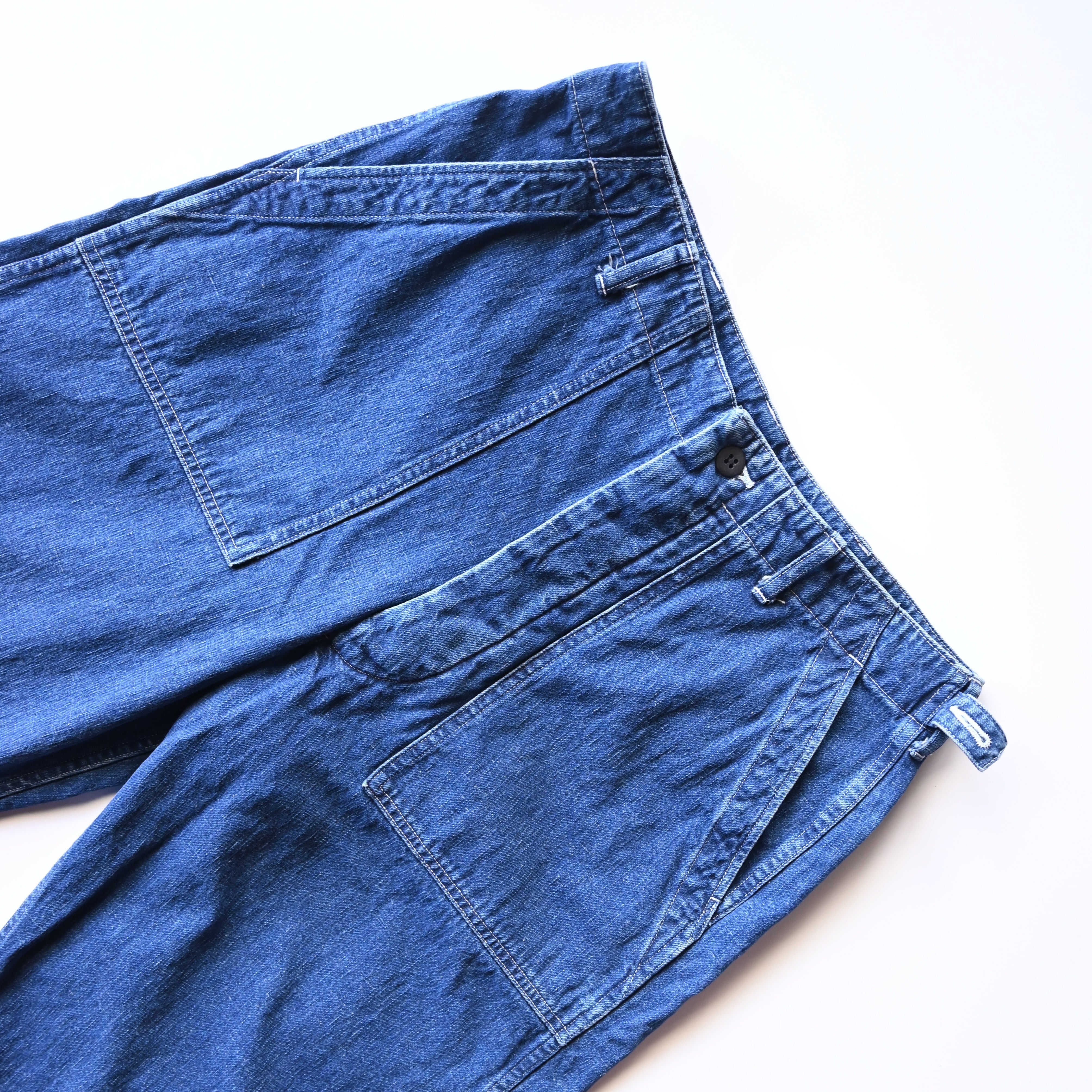 Made from 9.5oz midweight denim woven in a 2/1 twill using slightly slubby yarn with natural nep texture.