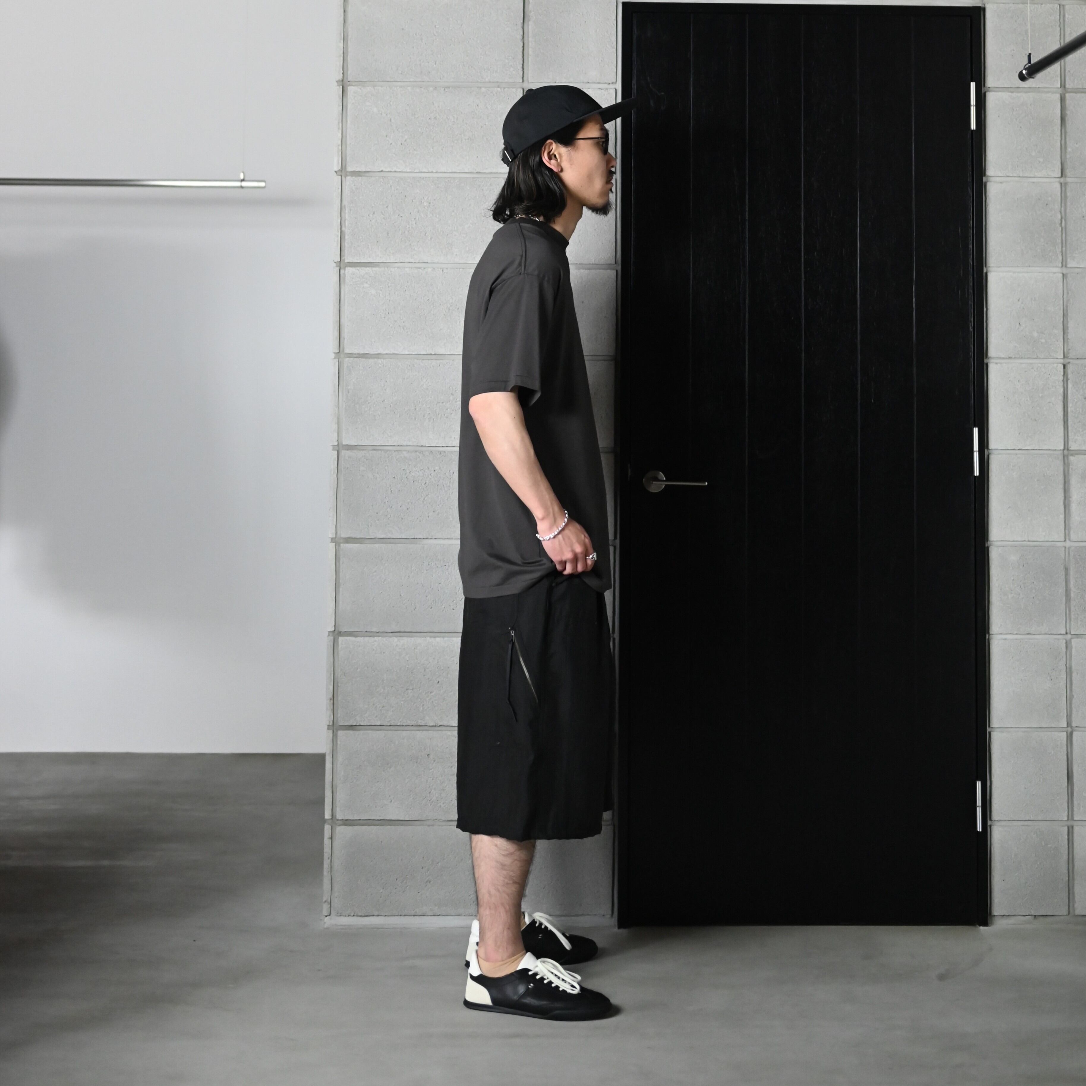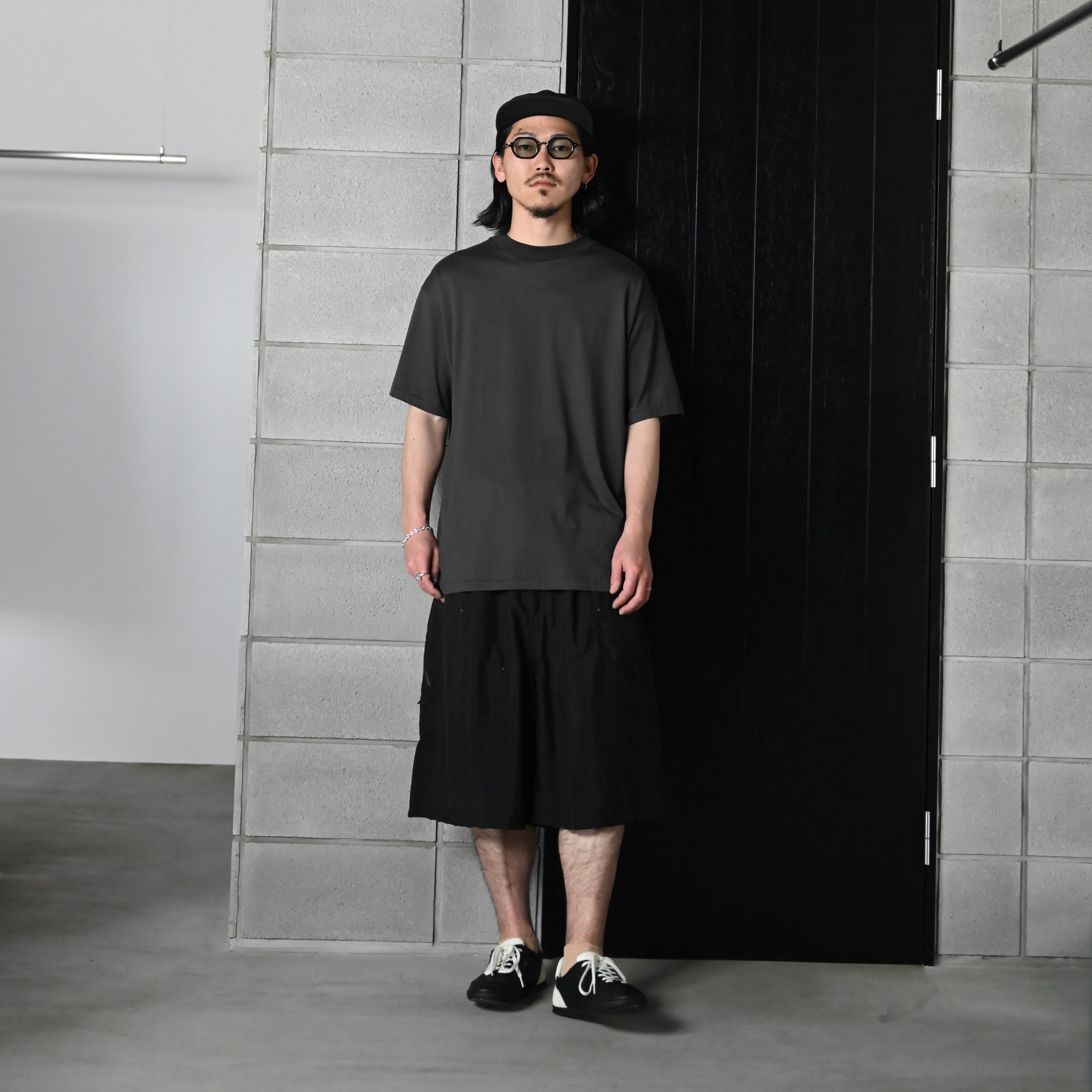 ・当店では⽣地の持つ魅⼒をシンプルに表現した"ピュアホワイト"、デザイナーの古い私物のブラックデニムの退⾊感からインスピレーションを得た"スモークブラック"、をセレクト