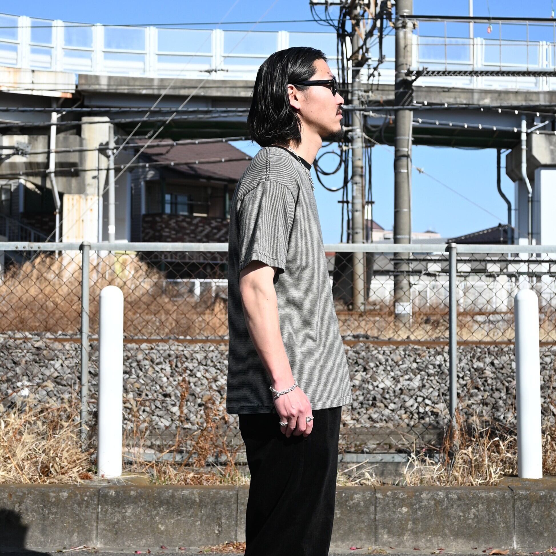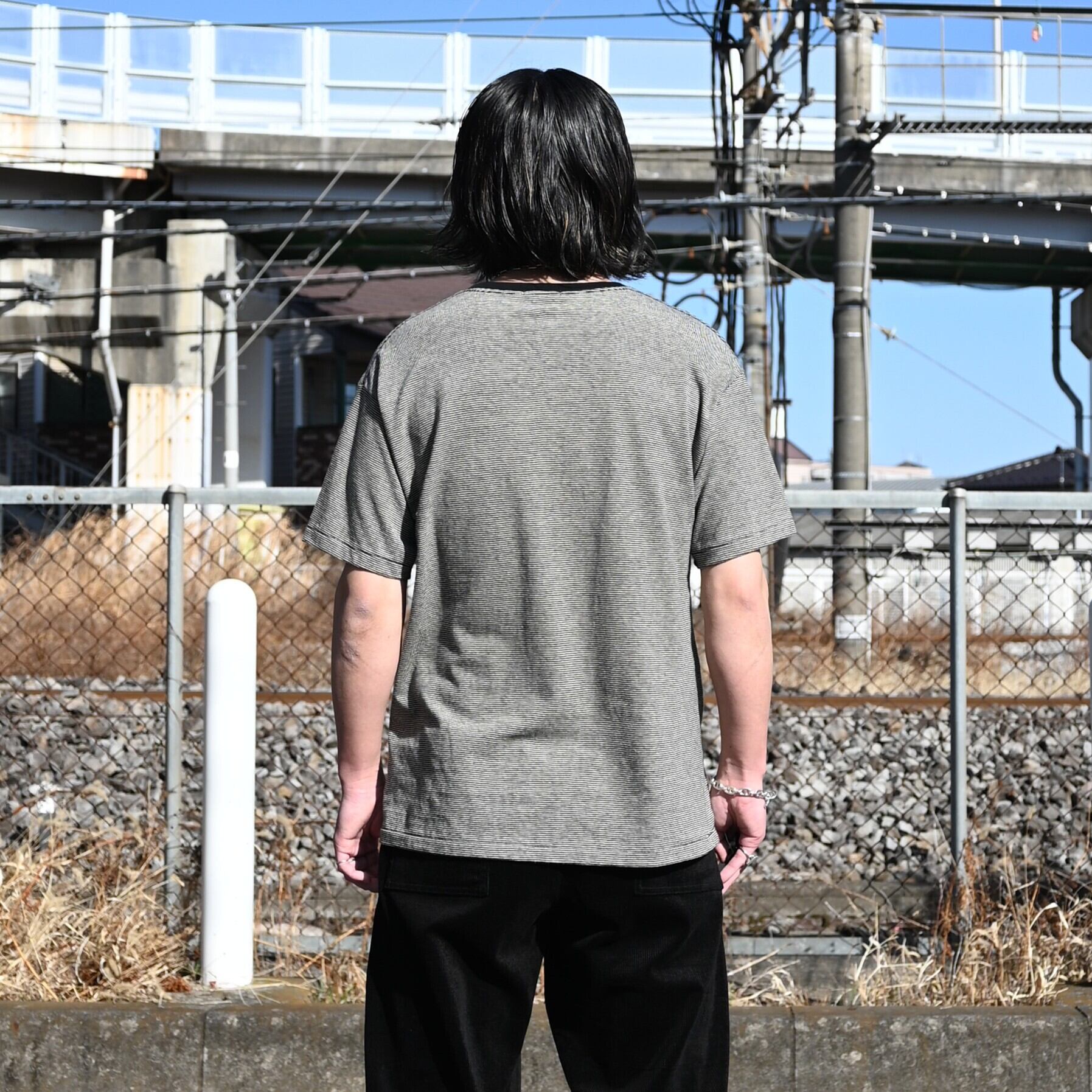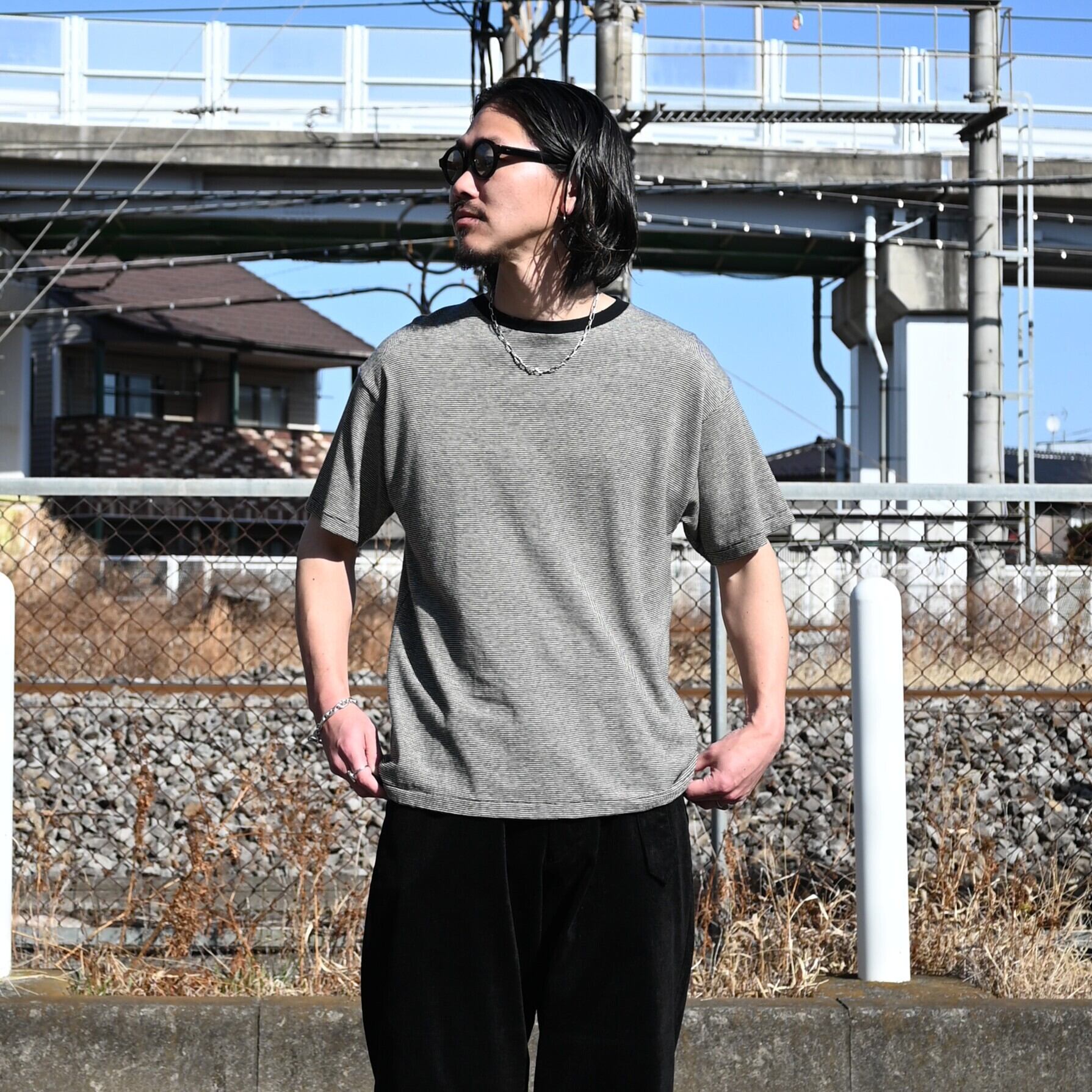 コットンとヘンプを掛け合わせた極めて細いピッチのボーダーTシャツ