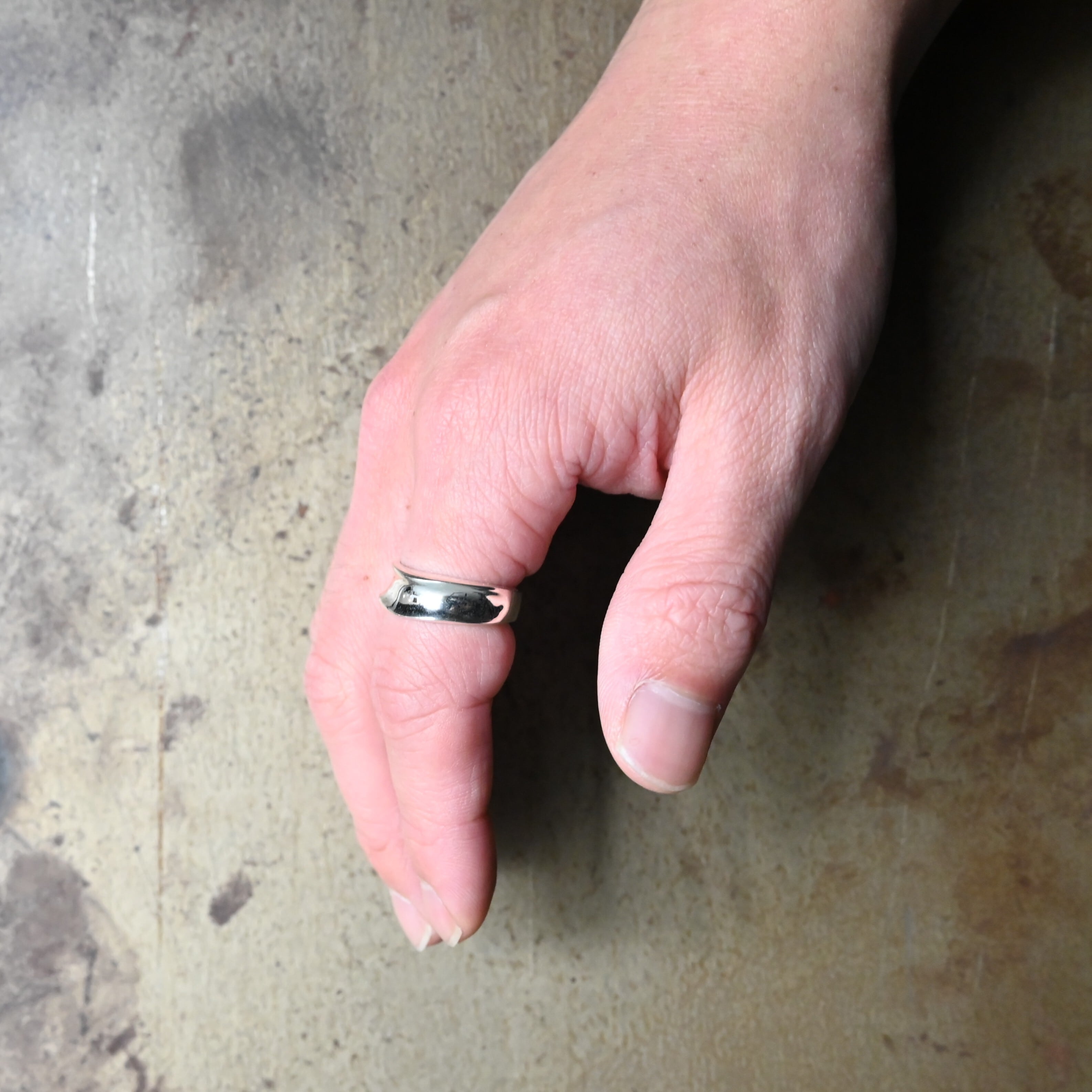 ・シルバーならではのしっかりとした重さと存在感はありながら、シルバージュエリーに施されることが多い燻し⼯程を省き、あえて後加⼯を最⼩限に留めることで、男性にも⼥性にも楽しんでいただけるシンプルな表情に