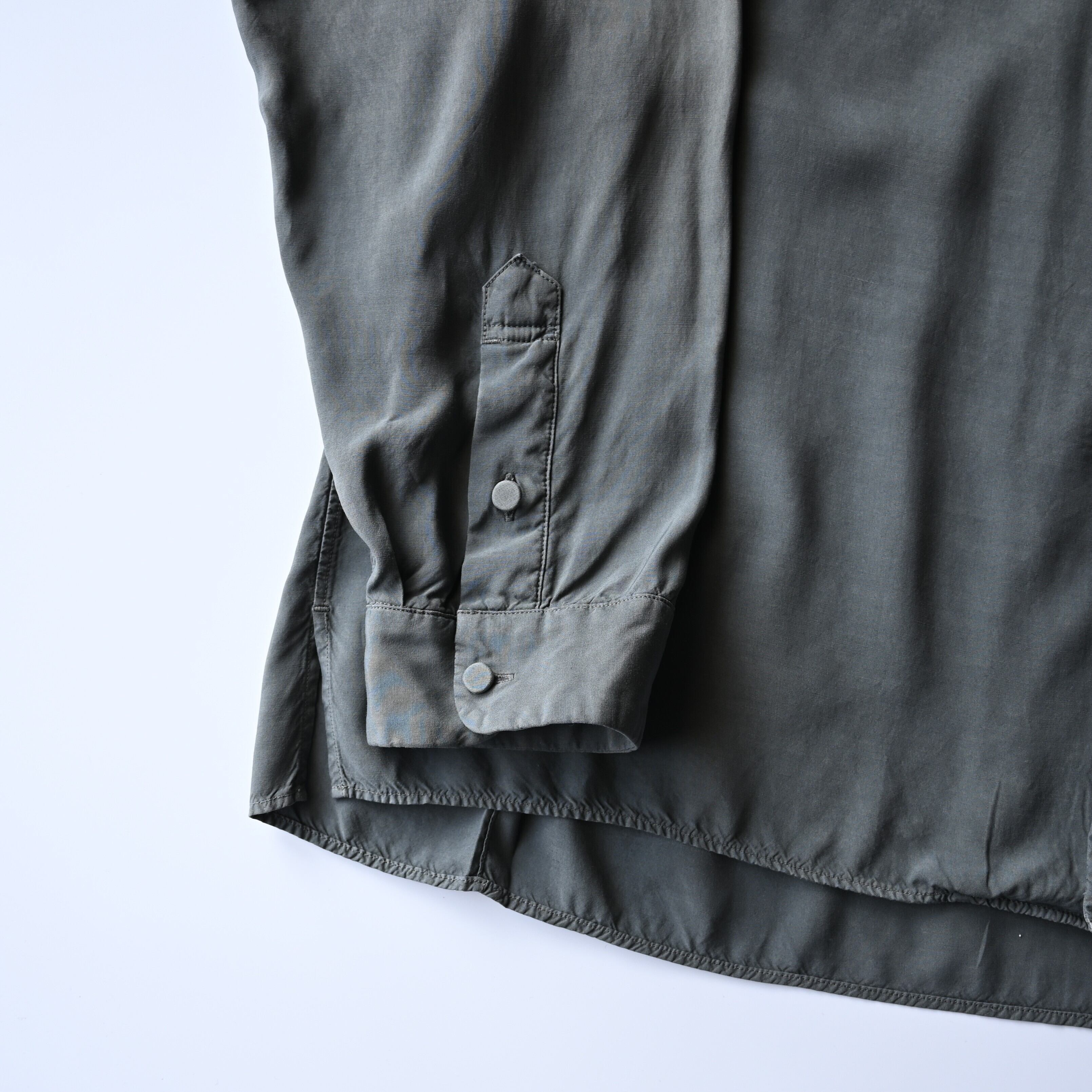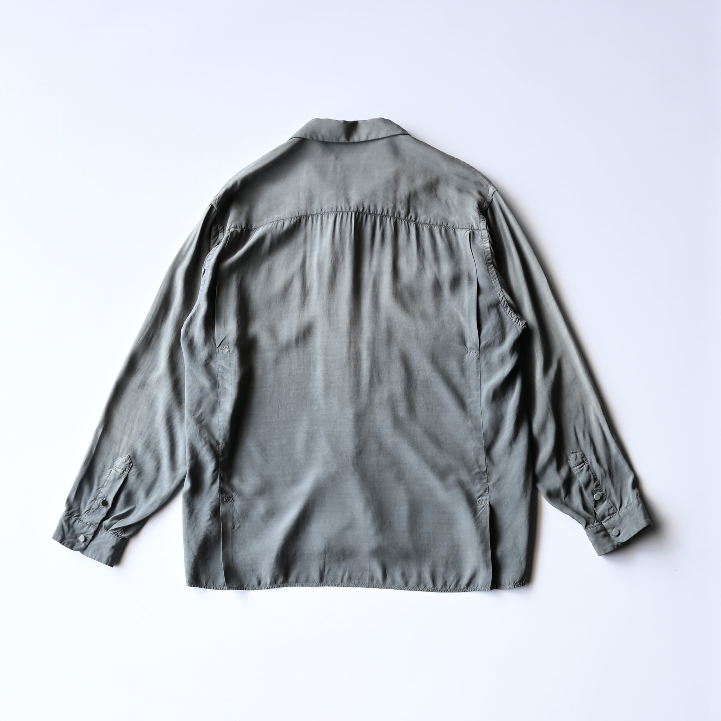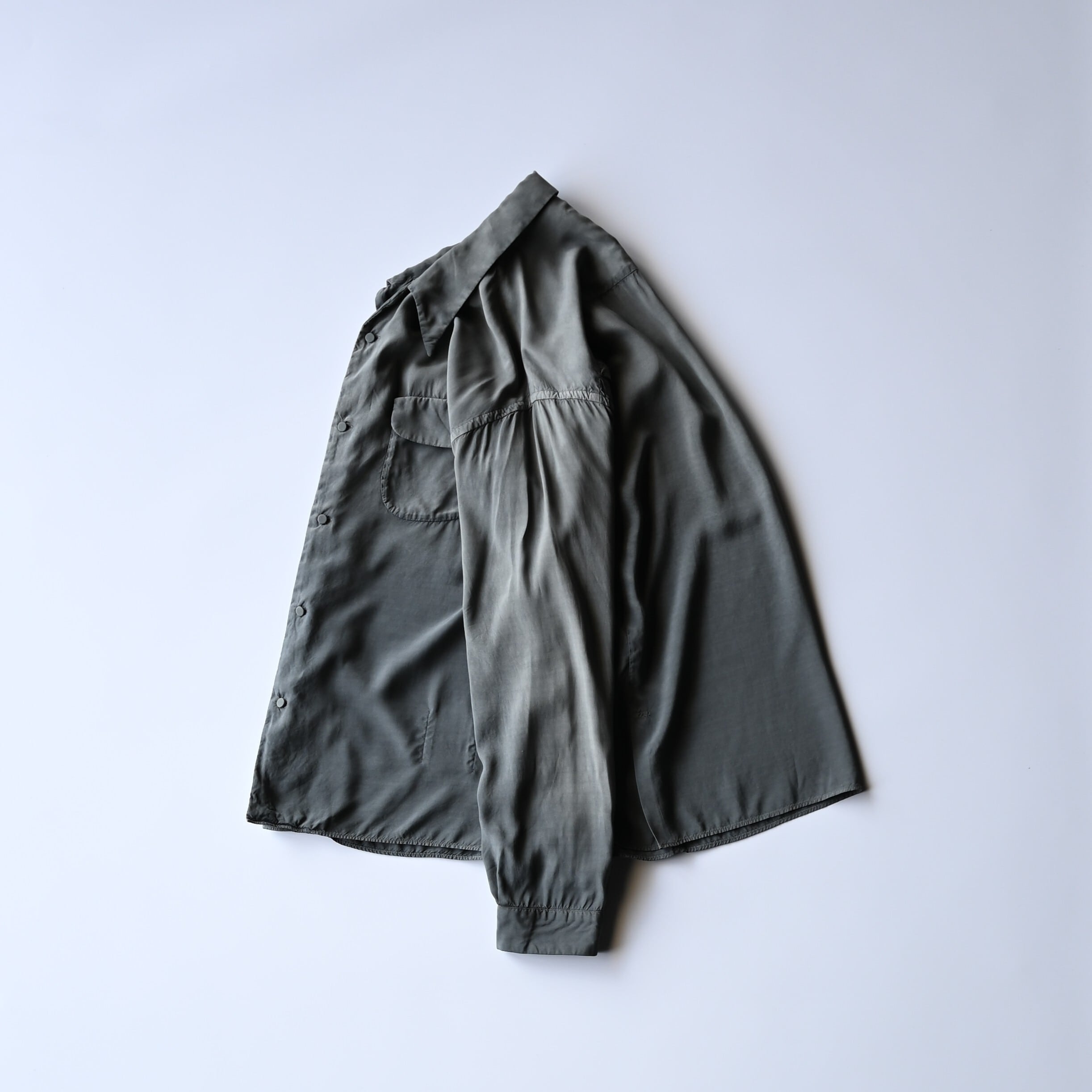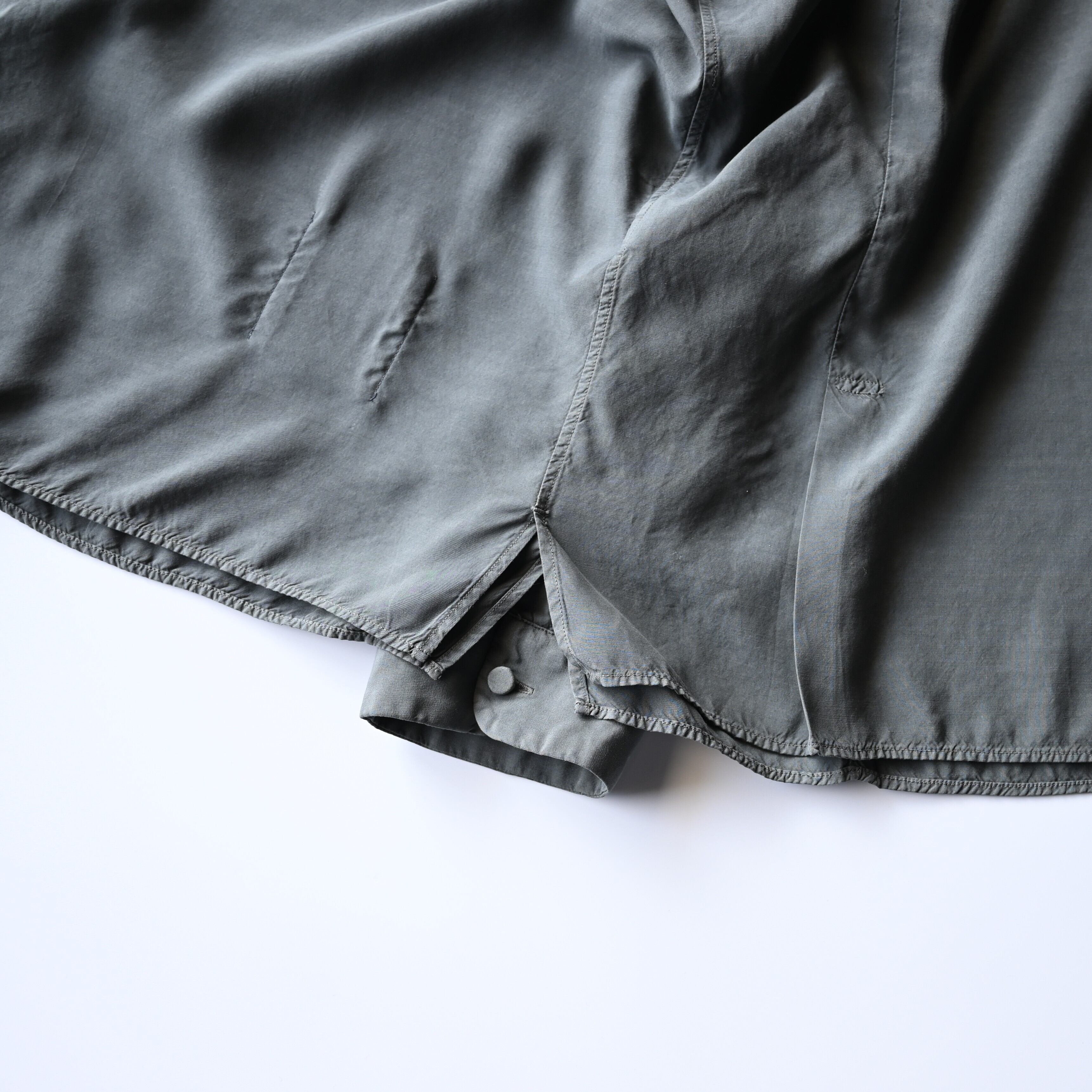 Made from rayon silk lawn, a fabric that is carefully dyed and processed in small quantities with extended kneading time. This allows the yarn to loosen, giving the fabric a naturally soft texture and enhanced volume.