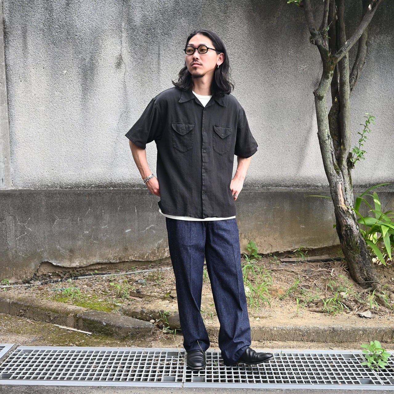 ・1940s頃のスポーツシャツをイメージしてデザインされたこのシャツは、フロントに配されたユニークな形状のダブルポケットに、ゆったりとした身幅のバランスが程よいリラックス感を持っている