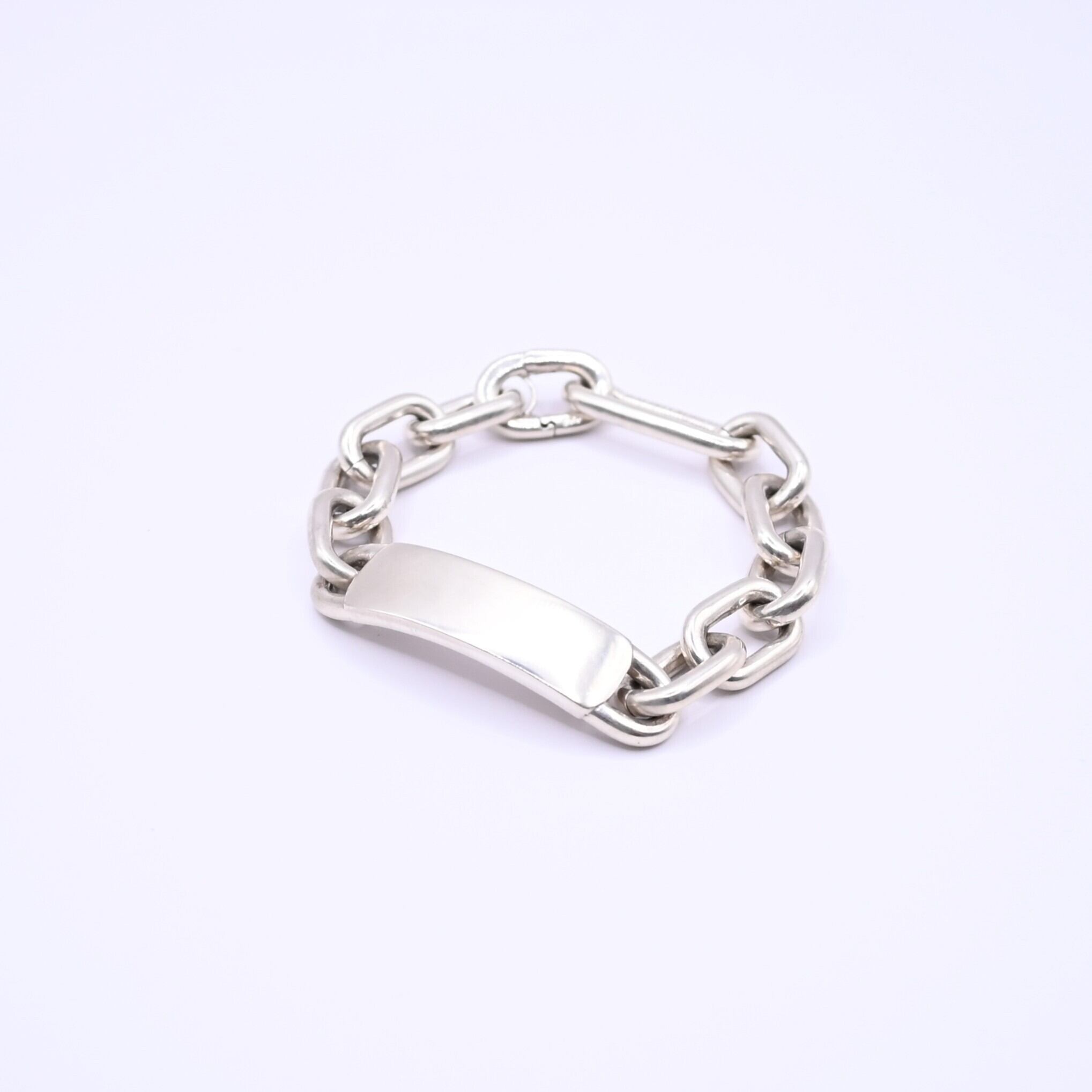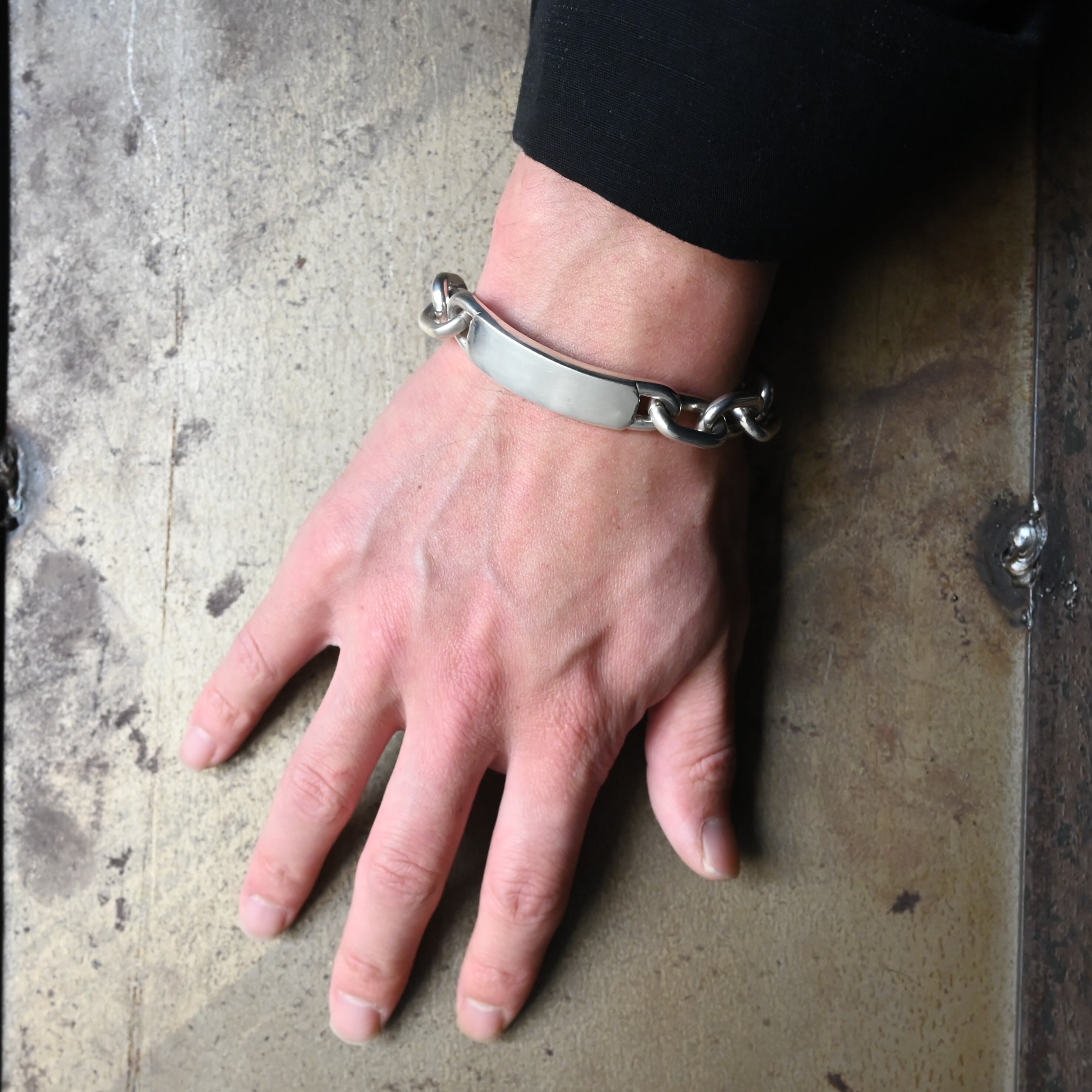 ・ミリタリーに着想を得たIDブレスレ ットは、 あえて厚みのあるチェーンとシンプルなプレートを採用