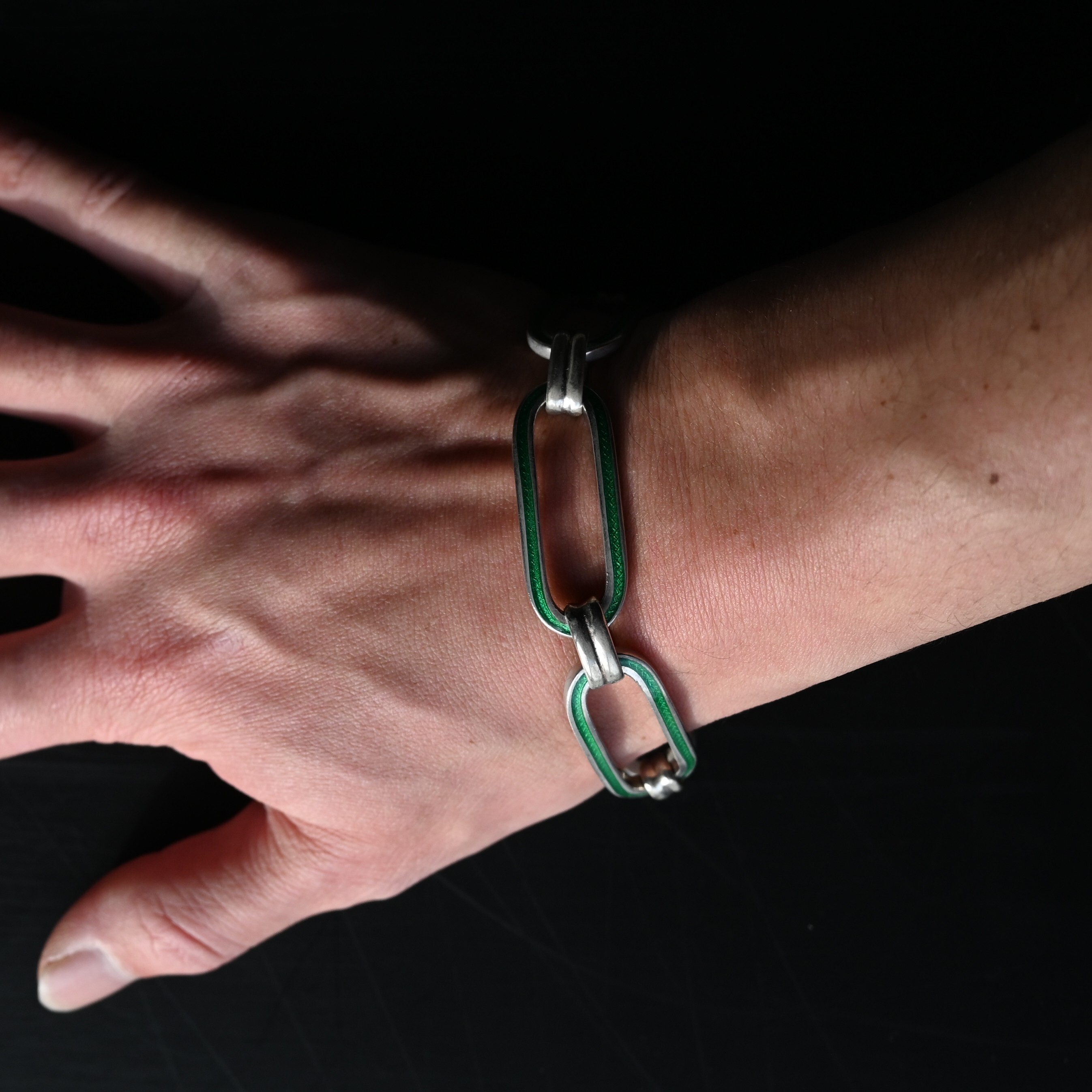 C.O.A.M. Silver Bracelet with Green Enamel Inlay